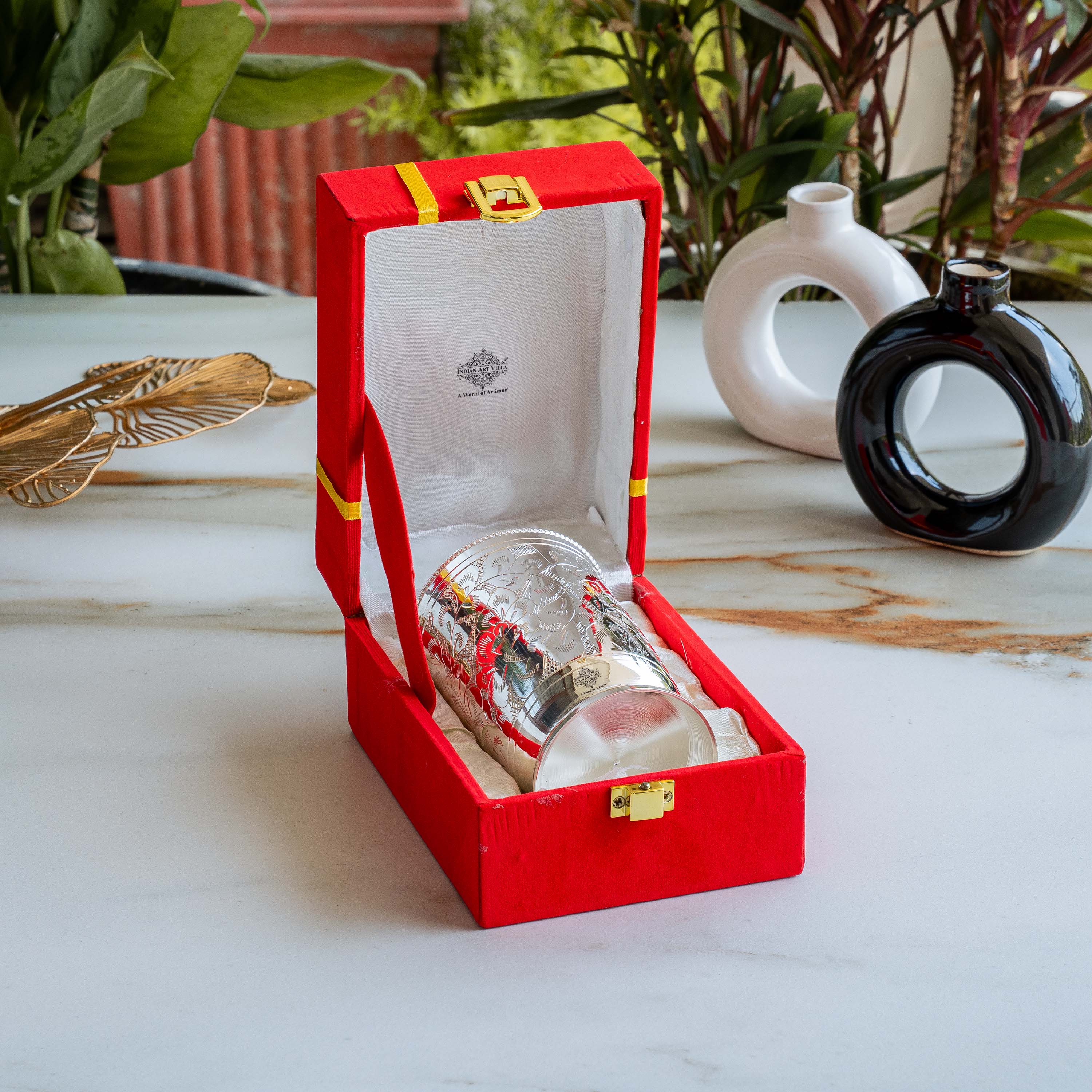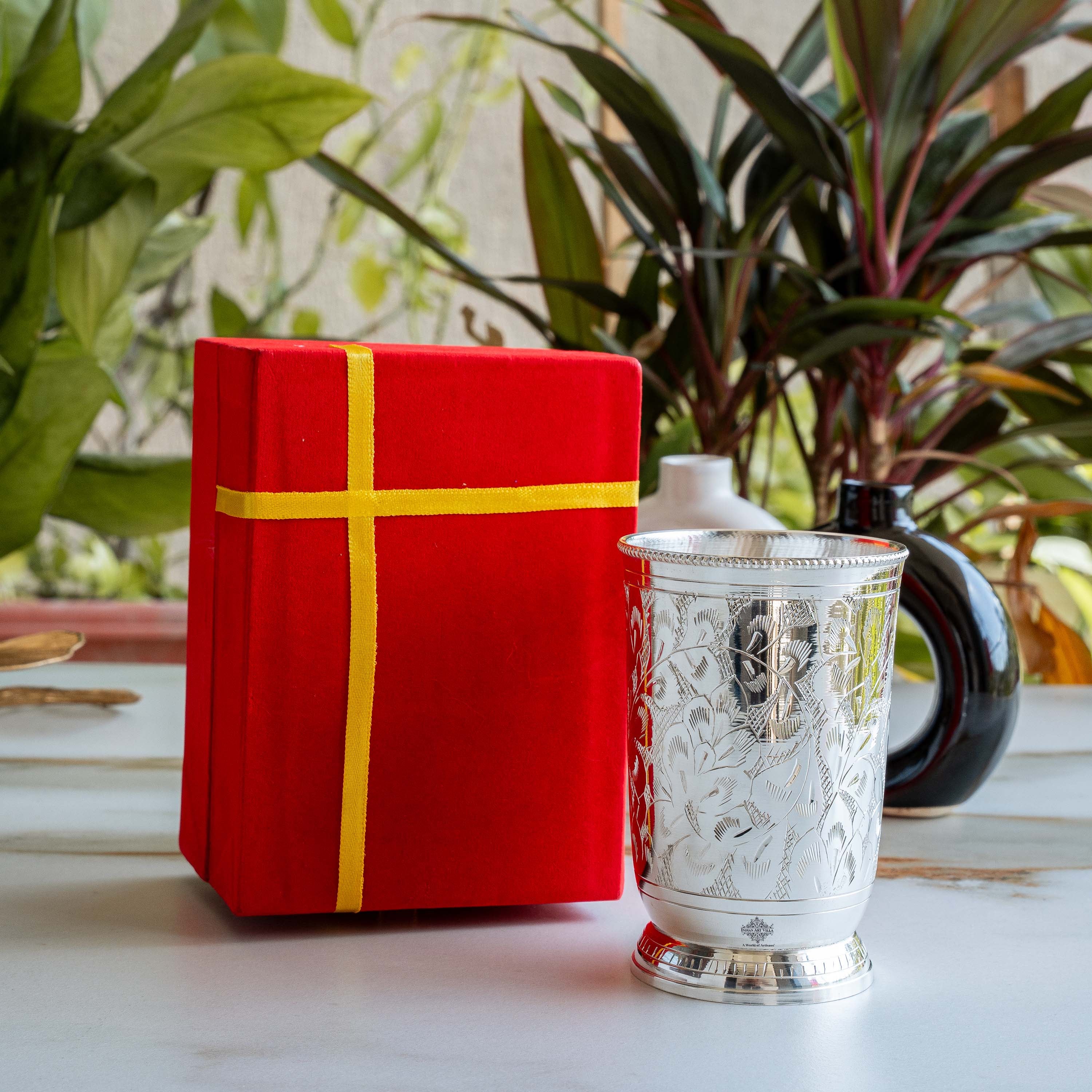 - Indian Art Villa Silver Plated Embossed Designer Glass with Red Box from Indian Art Villa at Great deals & offers and get a Contactless delivery at your doorstep.