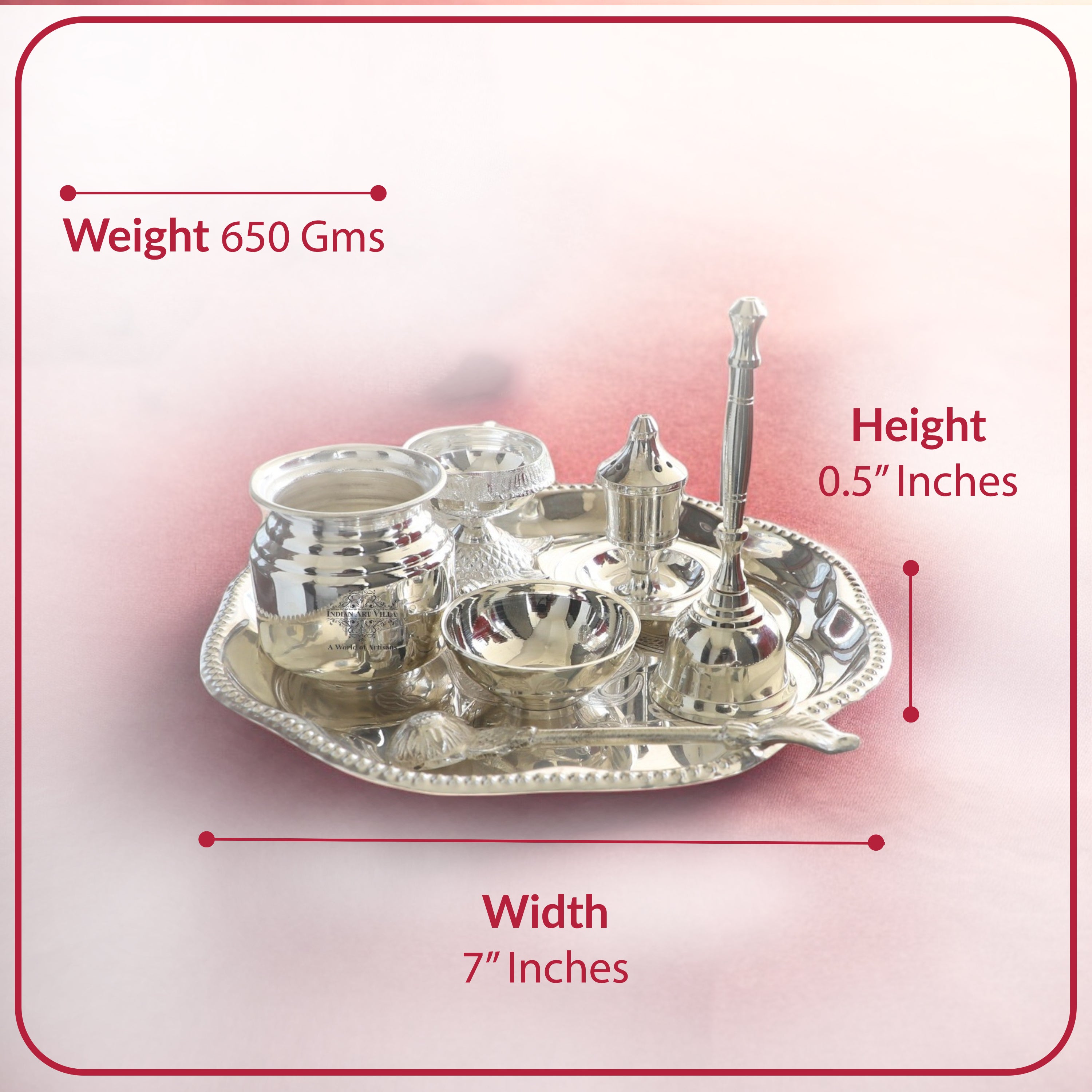 Handmade Decorative Silver Plated Om Design Pooja Thali Aarti Thali Set of 7 pieces with Gift Box Packing - Temple Workship Festivals Occasion Home Decore Gift item