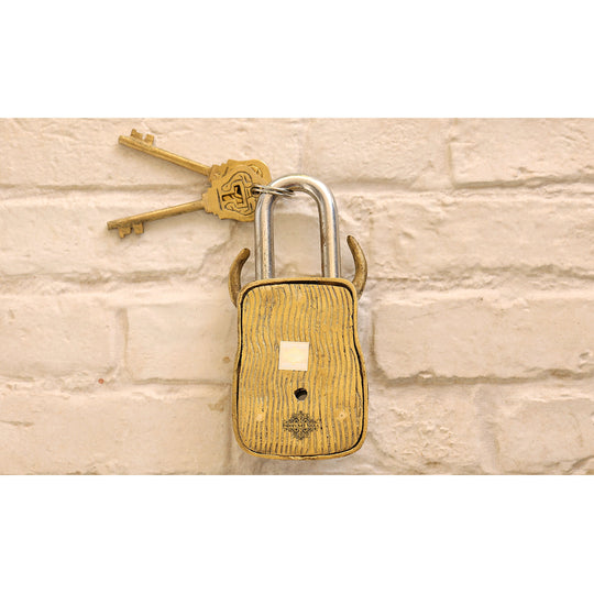 Old Vintage Style Bull Face Shape Brass Security Lock with 2 Keys, Size-2.8x15.24 cm