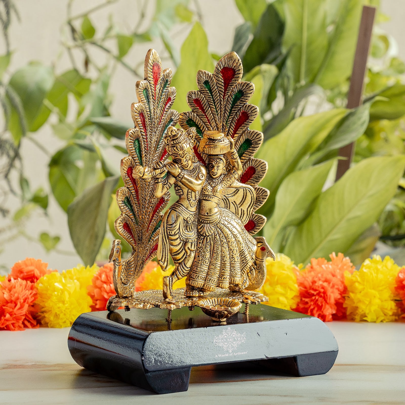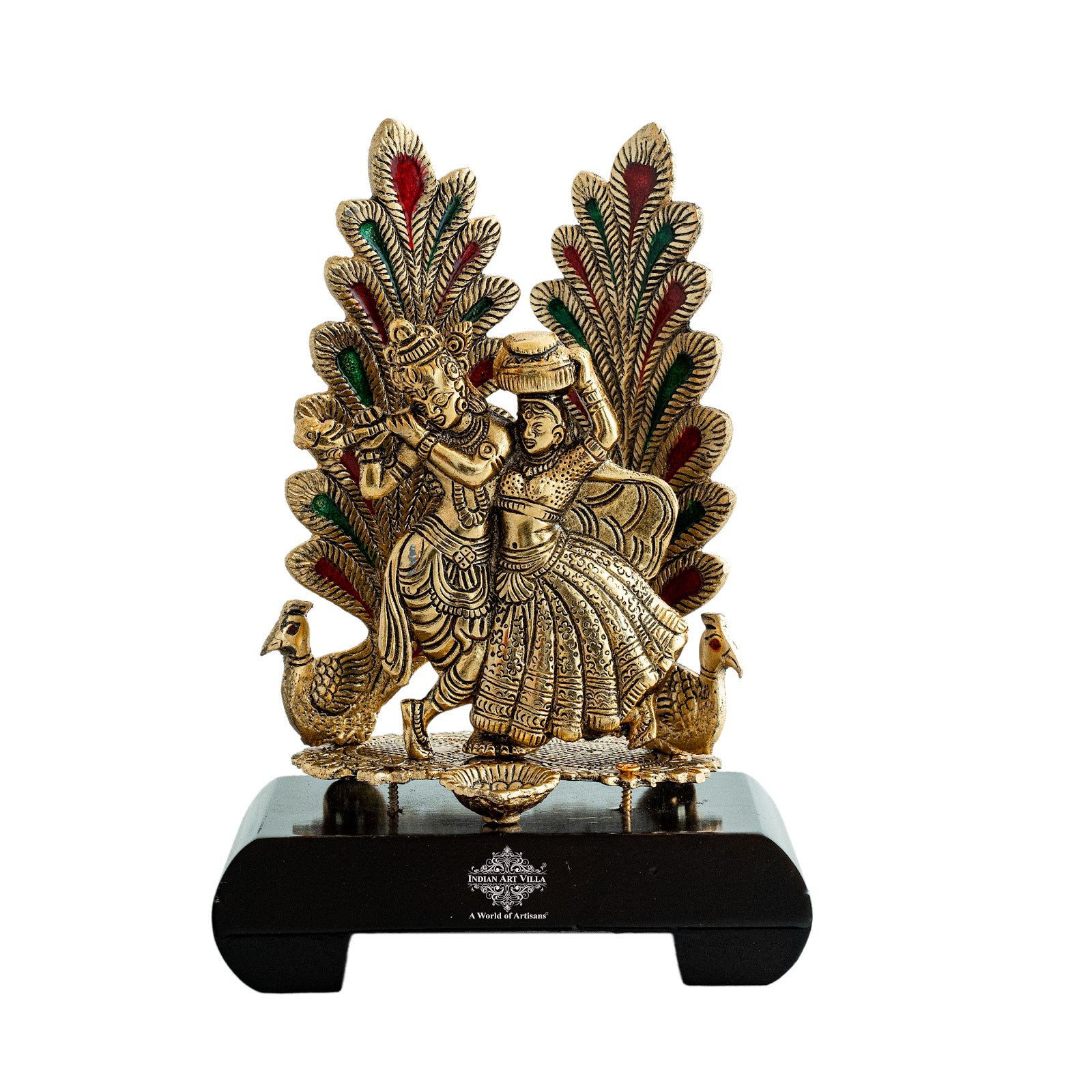 Brass Finish Colorfull Radha Krishna Murti with Wooden Base