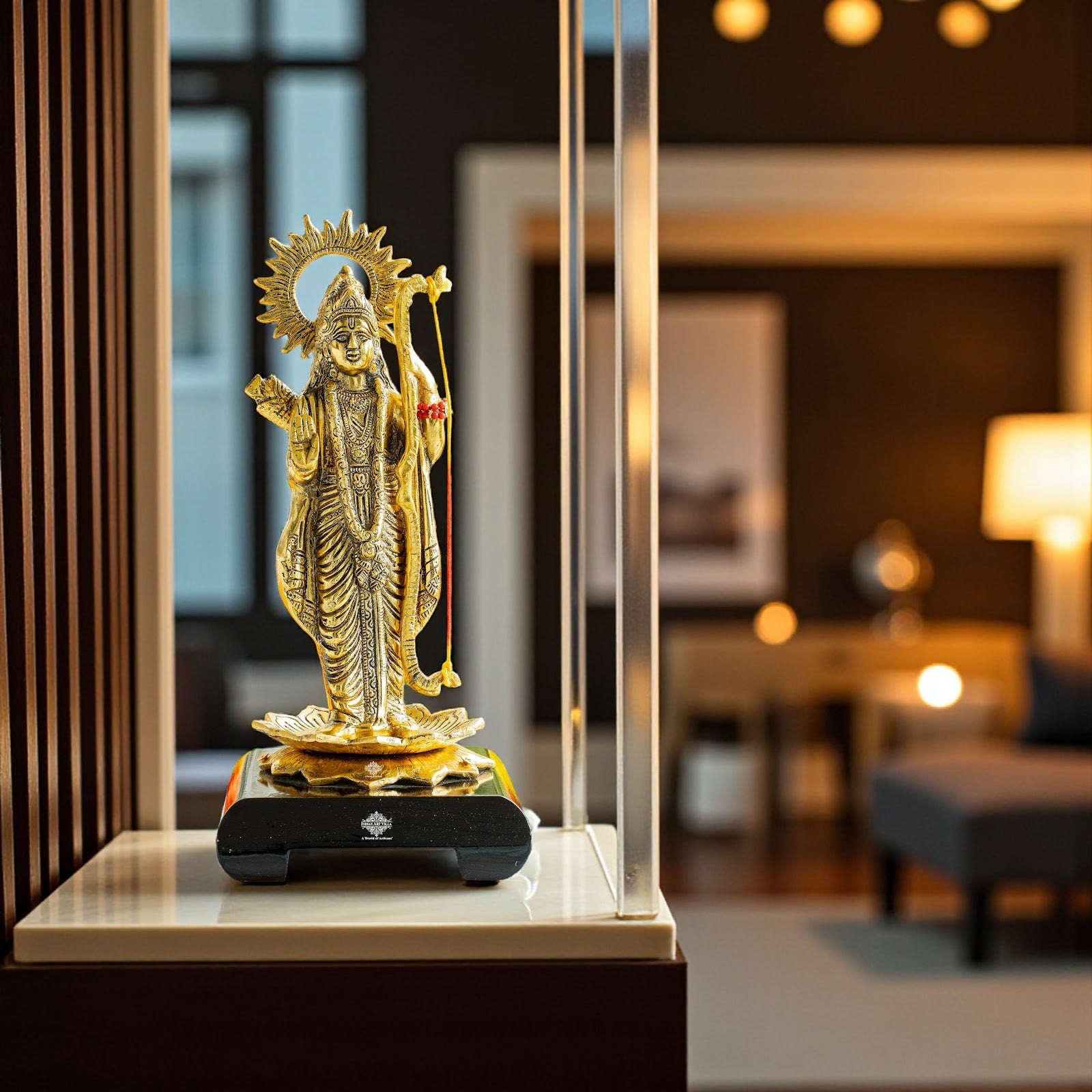 Bring divine blessings and timeless elegance to your home with the Indian Art Villa Aluminium Lord Ram Ji Murti. Expertly crafted from premium-quality aluminium and finished with a radiant brass polish, this statue captures the serene yet powerful presence of Lord Ram Ji.