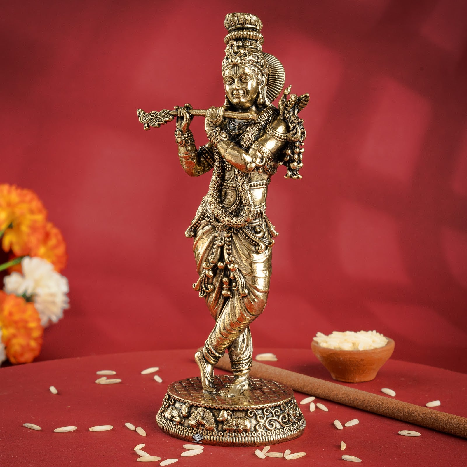 Pure Brass Krishna ji Murti With Tribhanga Pose for Pooja