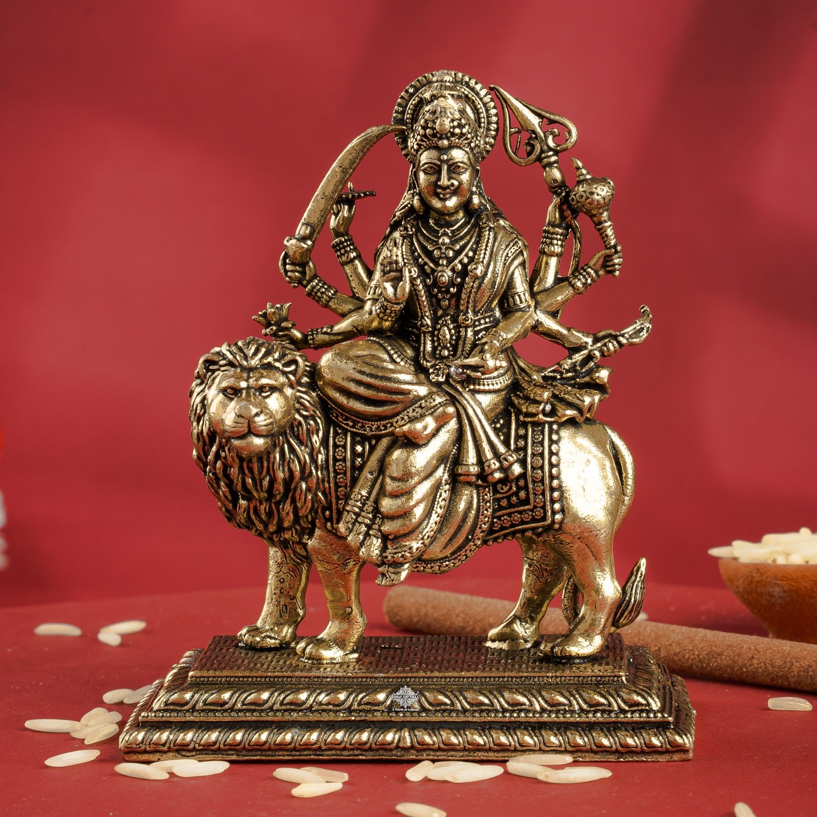 Spiritual Symbolism: Represents shakti (divine feminine energy) and is revered for bringing courage, positivity, and divine protection to the home.