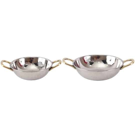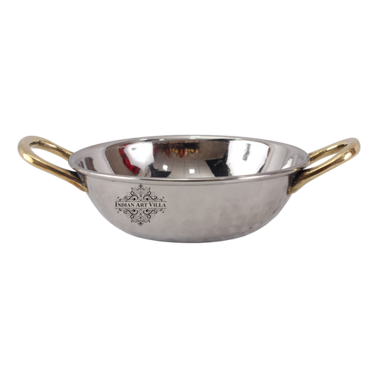 Stainless Steel With Brass Finish Kadhai Kadai Wok Double Layer with Embossed Handle, Serving Dishes
