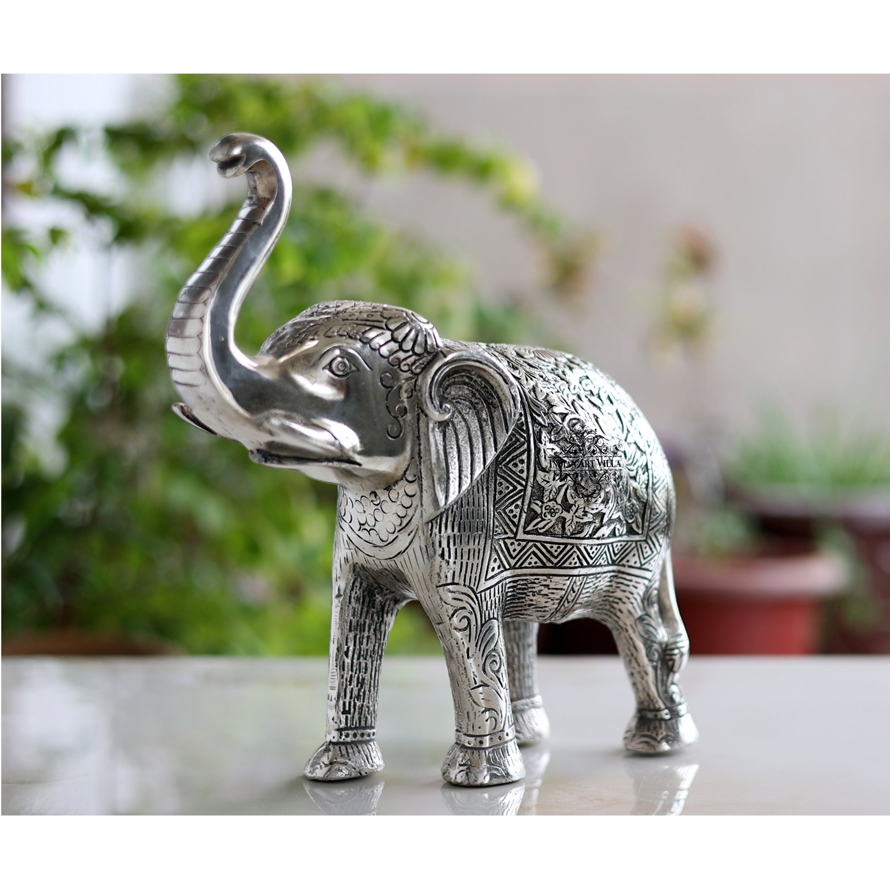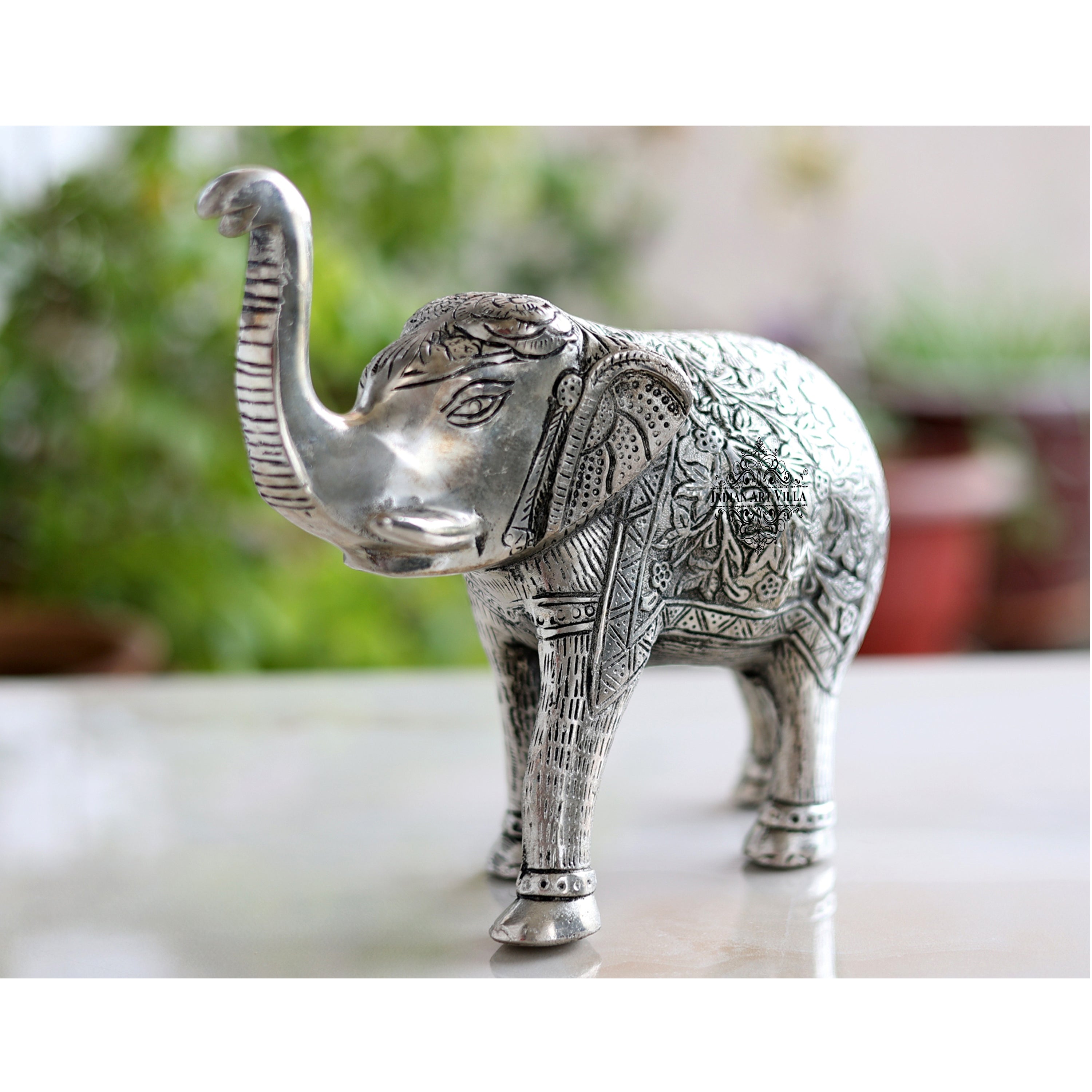 Indian Art Villa Presents Best Quality Aluminium Elephants With Dark Embosed Silver Finish Design. We offer the best affordable prices &amp. We also offer Easy returns & exchanges. T&C Applied. This Beautiful Aluminium figurine looks extremely classy and elegant. The intricate design shows dexterous craftsmanship of Indian Artisan. This Aluminium figurine is perfect for not only your home, but also the homes of your loved ones! It can also serve as a great gifting option for your loved ones, family, and friends. This product is handcrafted and will have slight irregularities that are a natural outcome of the human involvement in the process. Due to the nature of handmade, variations in exact texture, color and size can occur. Indian Art Villa Aluminium items have antique designs. The item is highly durable, elegant, and a wonderful addition to your Home Decor.