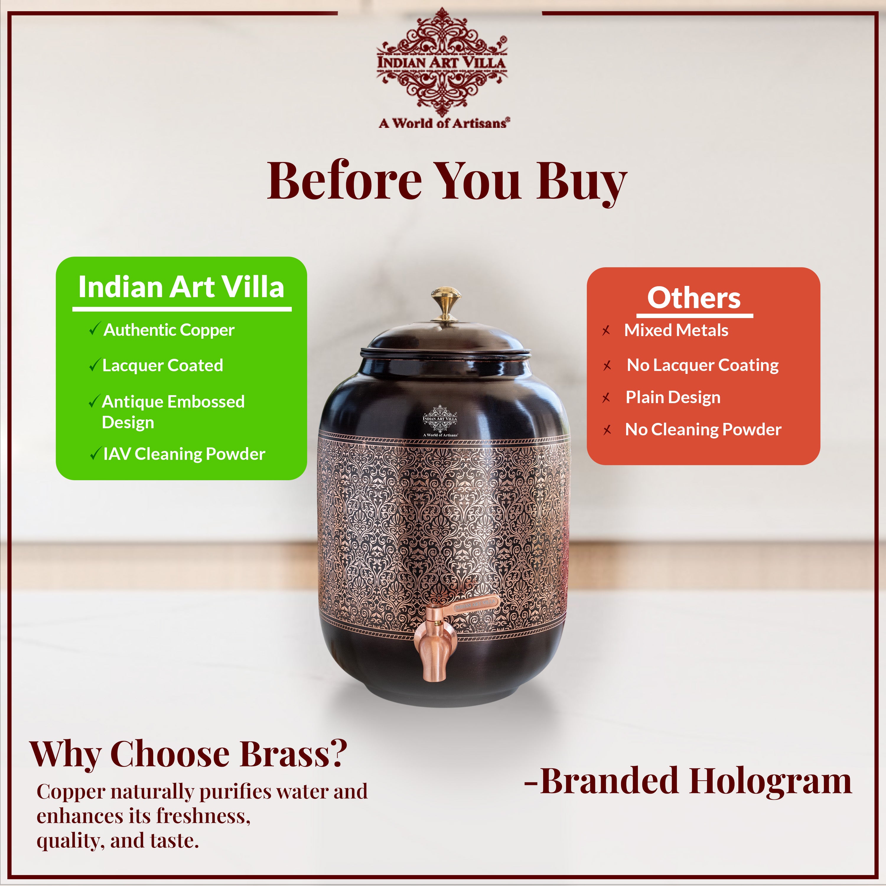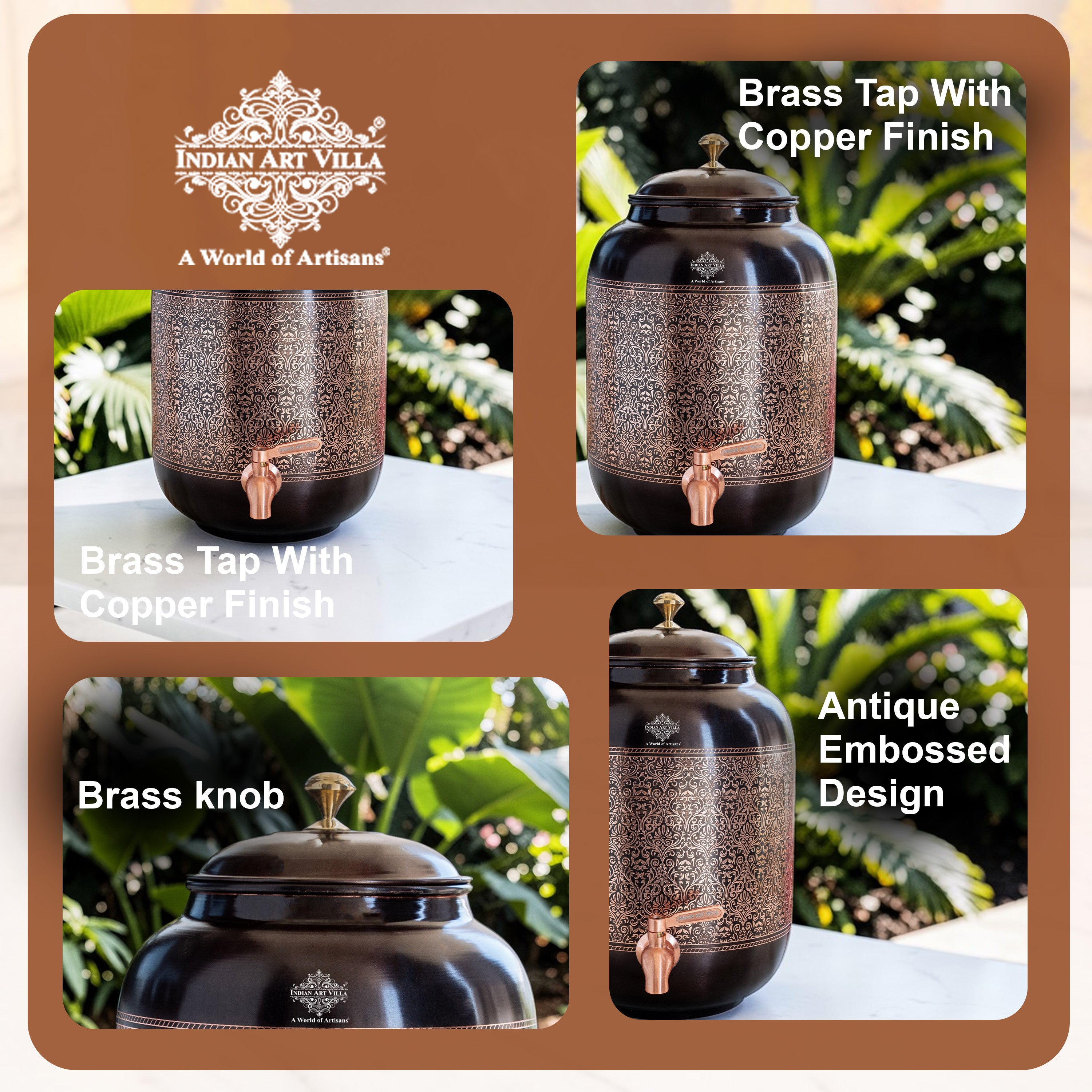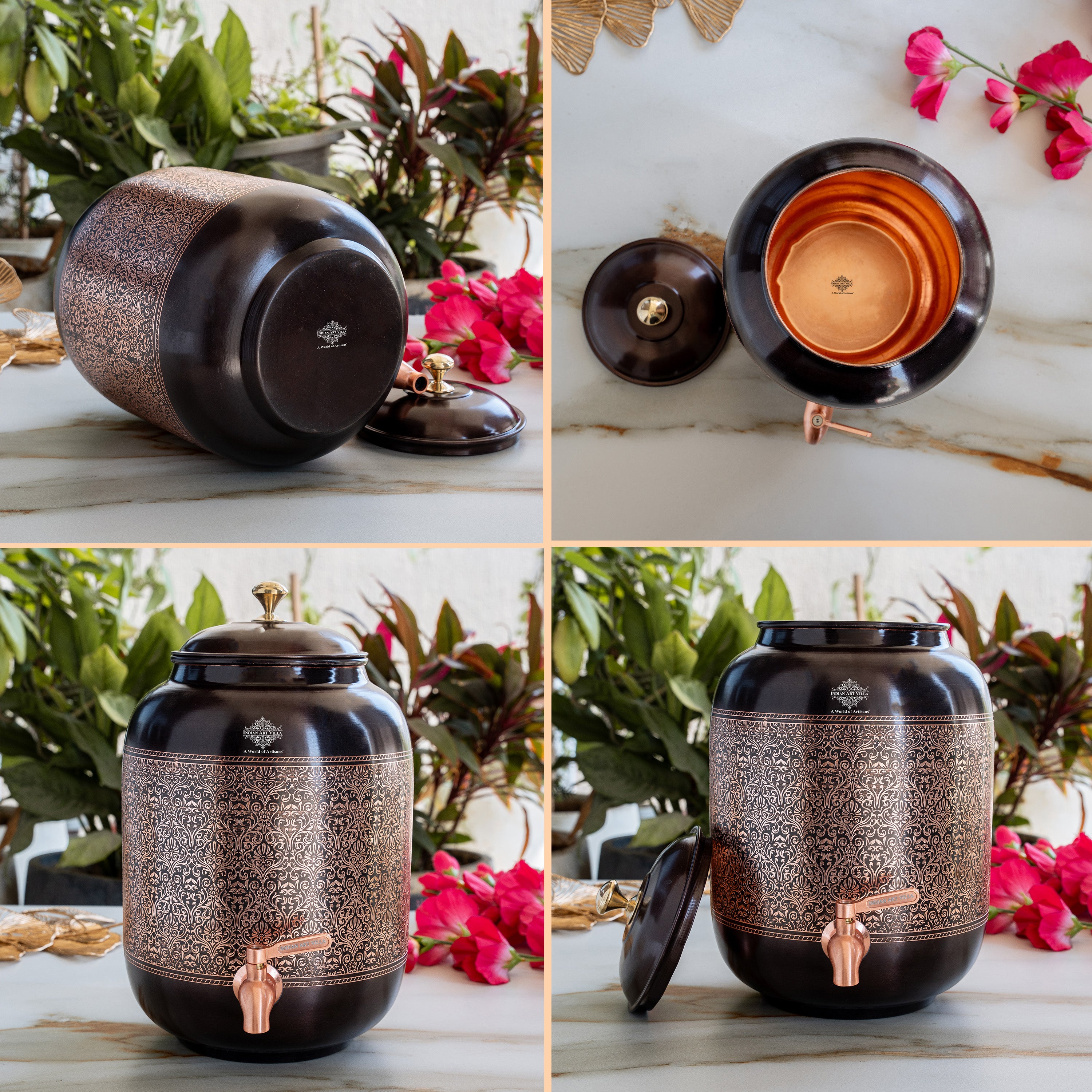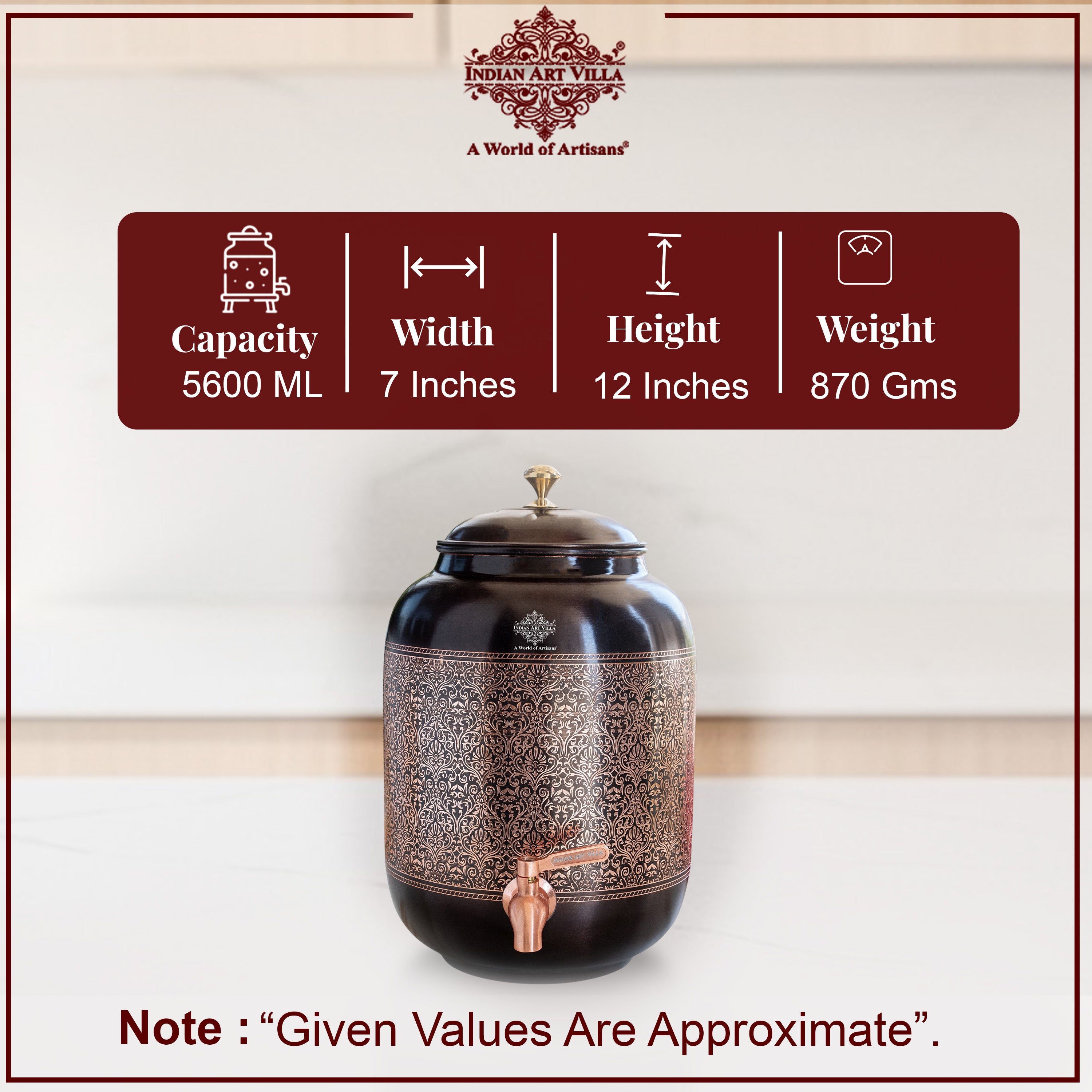 Antique Embossed Finish Copper Water Pot 5.6 Literes