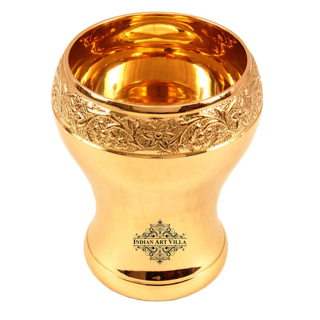 Indian Art Villa Pure Brass Designer Glass, a magnificent piece of craftsmanship that seamlessly blends functionality with aesthetic appeal. This exquisite glass is perfect for serving and drinking water, elevating your dining experience to new heights. Made from high-quality brass, this designer glass showcases intricate detailing and a captivating design that adds an element of elegance to any table setting. The golden hue of the brass radiates warmth, creating a luxurious ambiance. With its sturdy construction, this glass is built to withstand daily use and is easy to clean. Its generous capacity ensures that you can enjoy a refreshing drink without the need for constant refills. Whether you're hosting a formal gathering or simply enjoying a quiet moment at home, the Indian Art Villa Pure Brass Designer Glass is a timeless addition to your drinkware collection. Indulge in the beauty of traditional Indian artistry while savoring your favorite beverages in style.