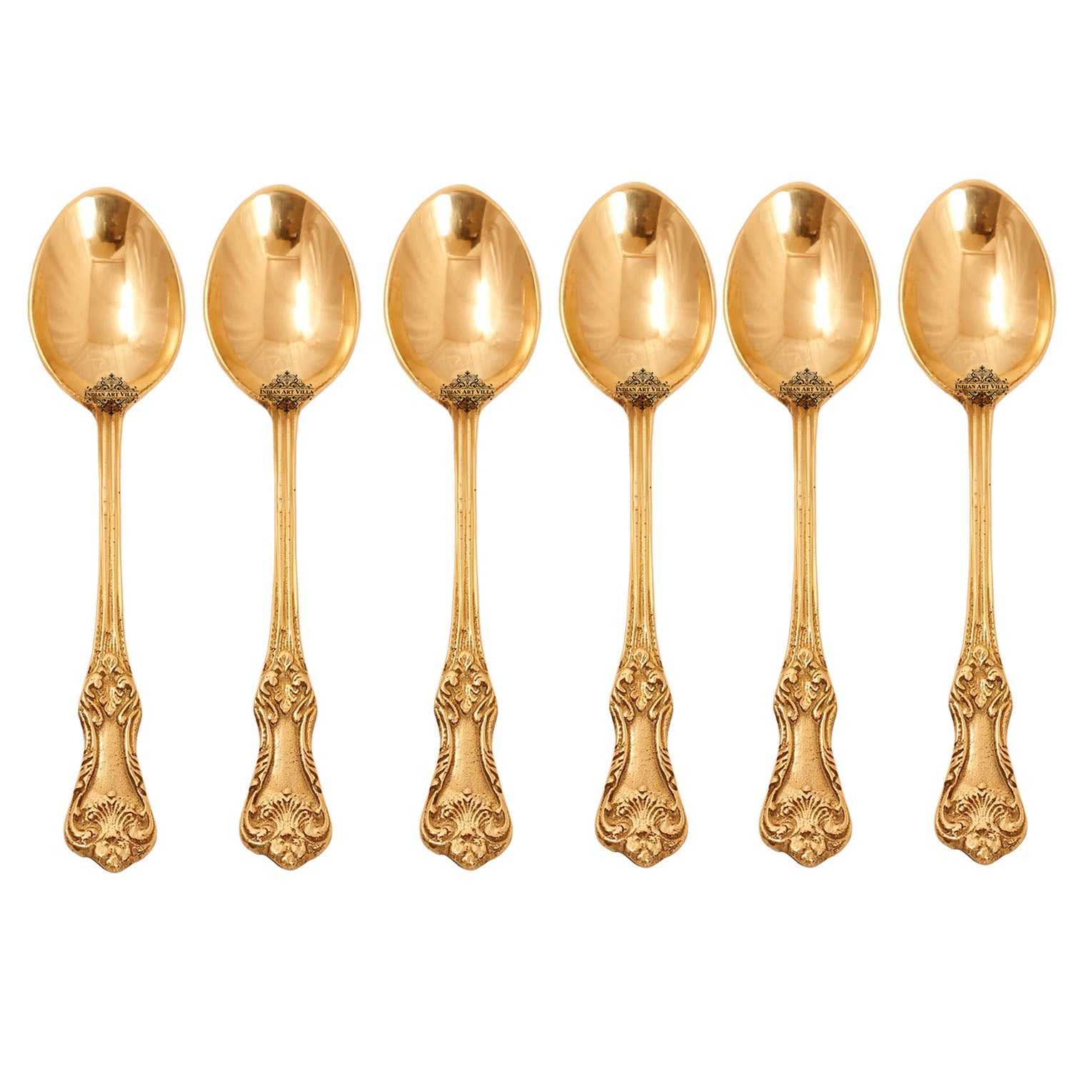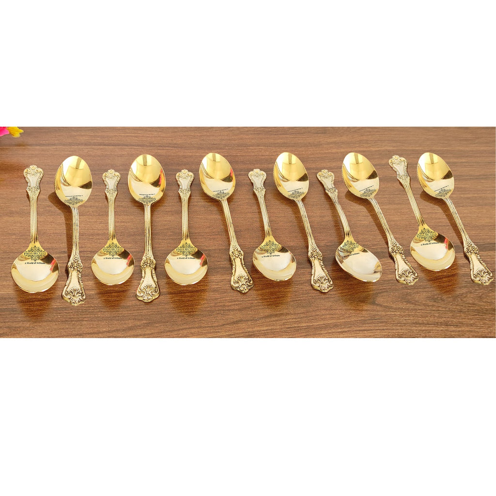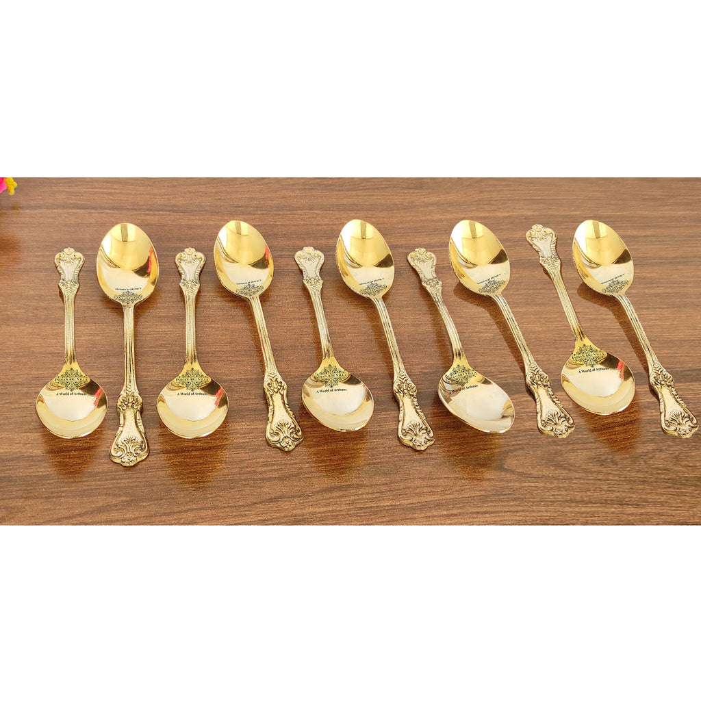 - These Pure Brass Designer Spoon also have Trendy looks for better ergonomics. You can add Royal Vintage Look to your Kitchen & Dining by using these Set as your Drinkware/Serveware Purpose.