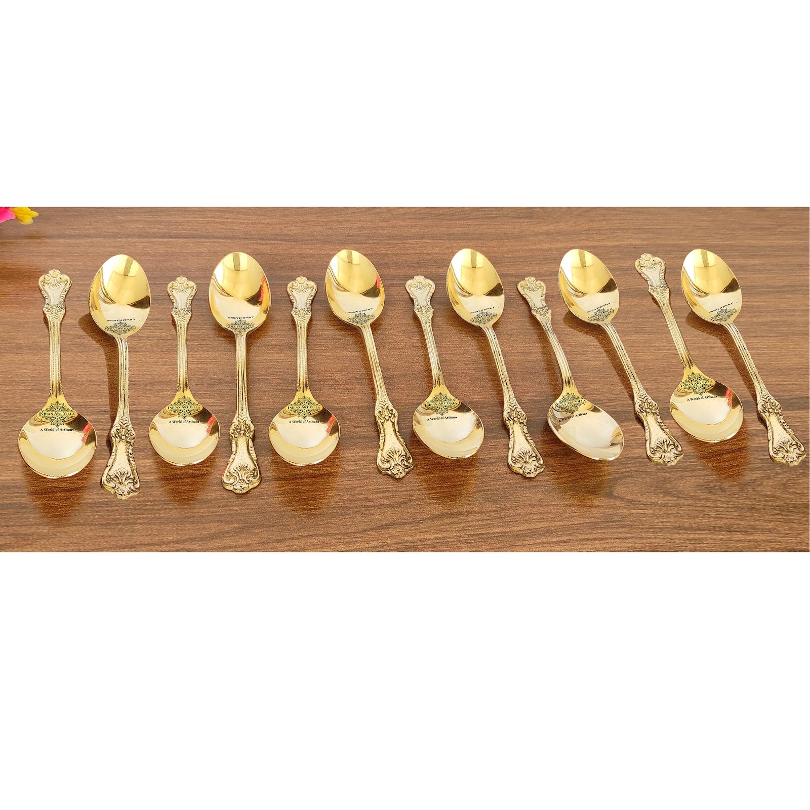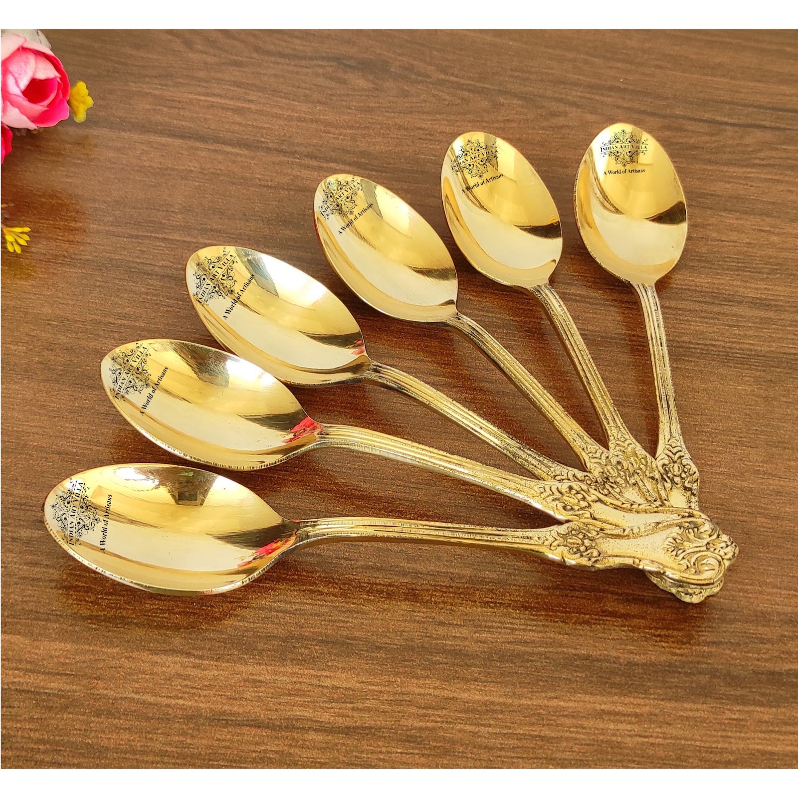 - Indian Art Villa Pure Brass Designer Spoon, it was almost impossible to find one that came in a design other than the plain one. Indian Art Villa Provide You with different designs to choose from, allowing you to pick your favorite design or collect them all for those who want a variety of options.
