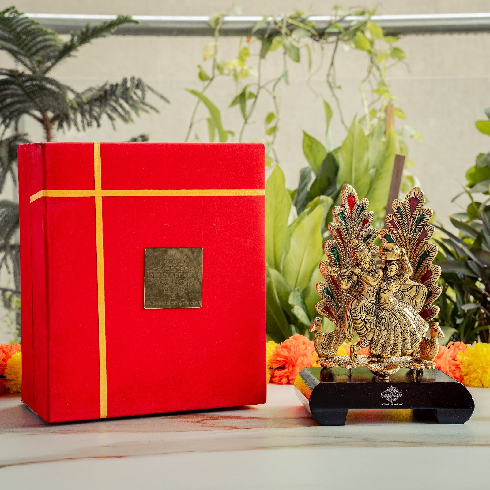 Celebrate the divine essence of love and devotion with this Brass Finish Radha Krishna Murti with Wooden Base (8.4 Inches). Exquisitely handcrafted, this statue captures the eternal bond of Lord Krishna and Radha, symbolizing purity, affection, and spirituality. The detailed craftsmanship and antique brass finish give this idol a timeless charm that blends beautifully with both modern and traditional décor.
