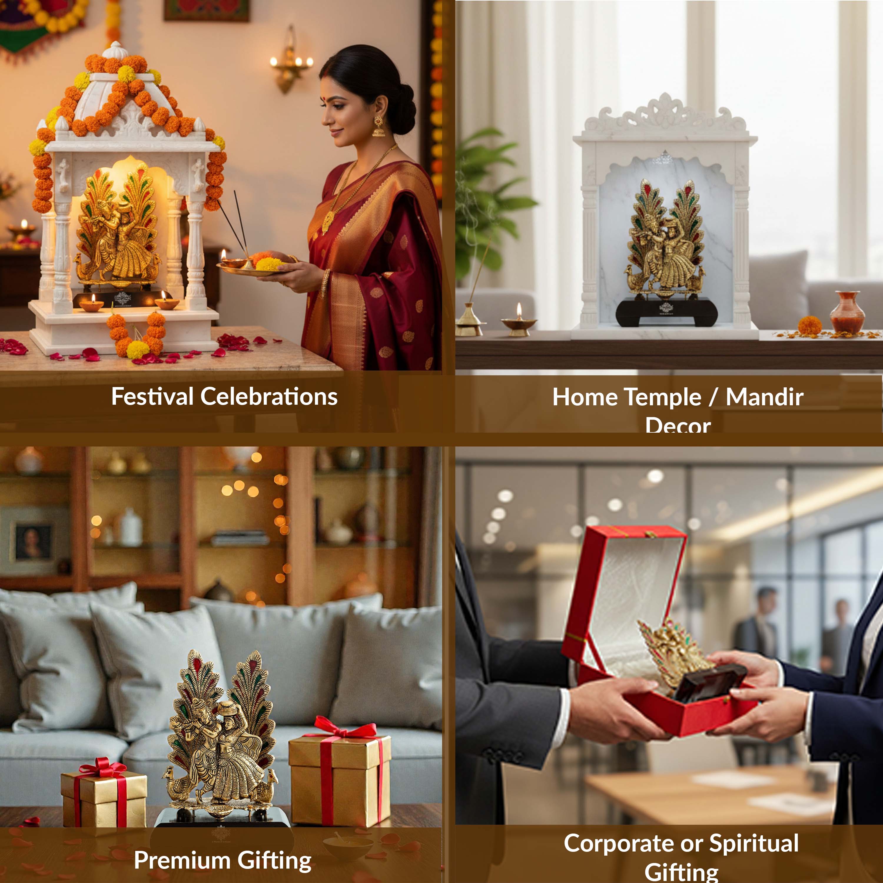Elegant Brass Finish: Beautifully crafted with a premium brass finish with Red & Green Color Shade, giving the idol a radiant and traditional look.