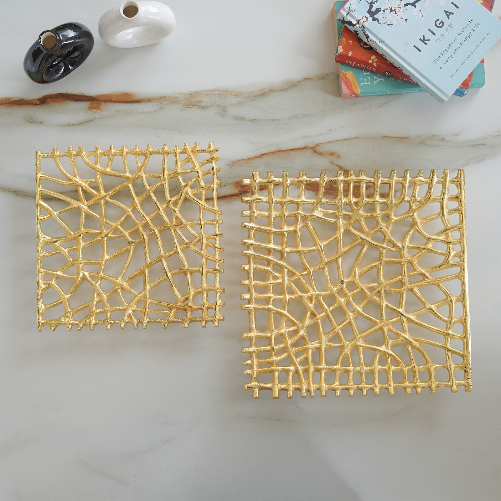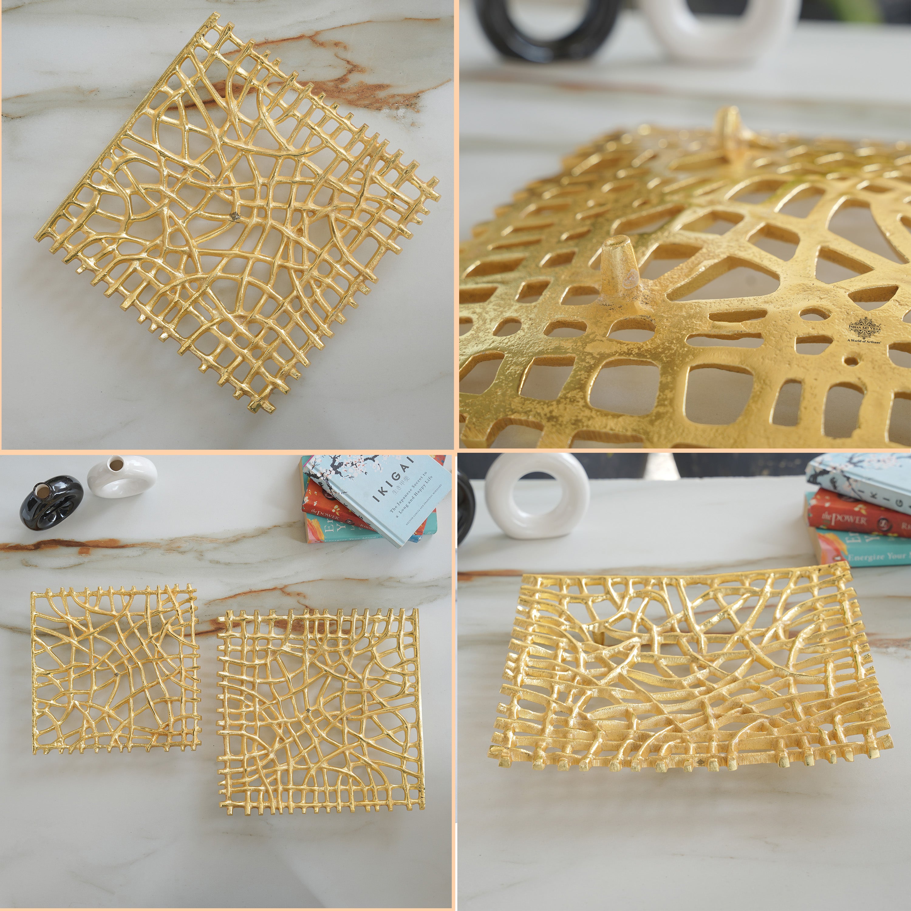 A. Its elegant square design and brass finish create a stylish centerpiece.