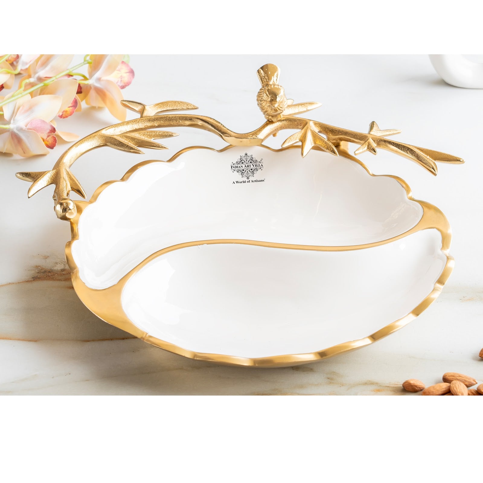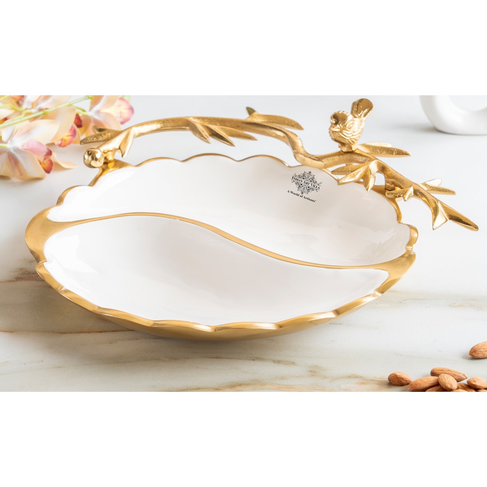 Elegant Design: Features a luxurious white ceramic bowl with intricate golden metalwork accents, embodying timeless beauty.