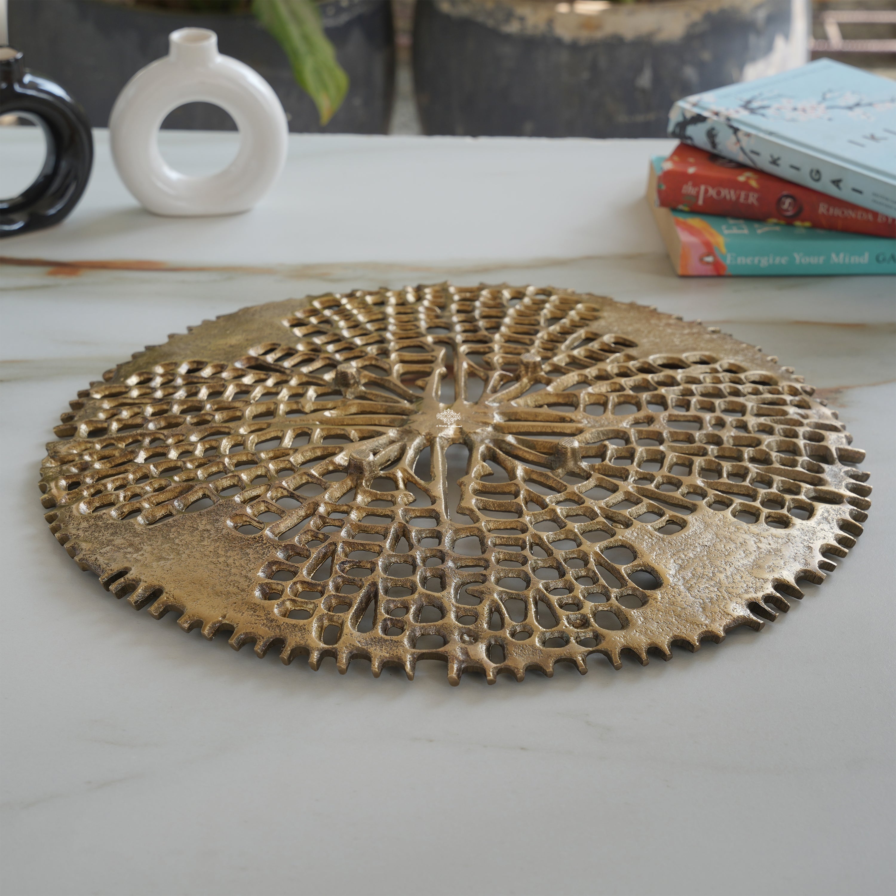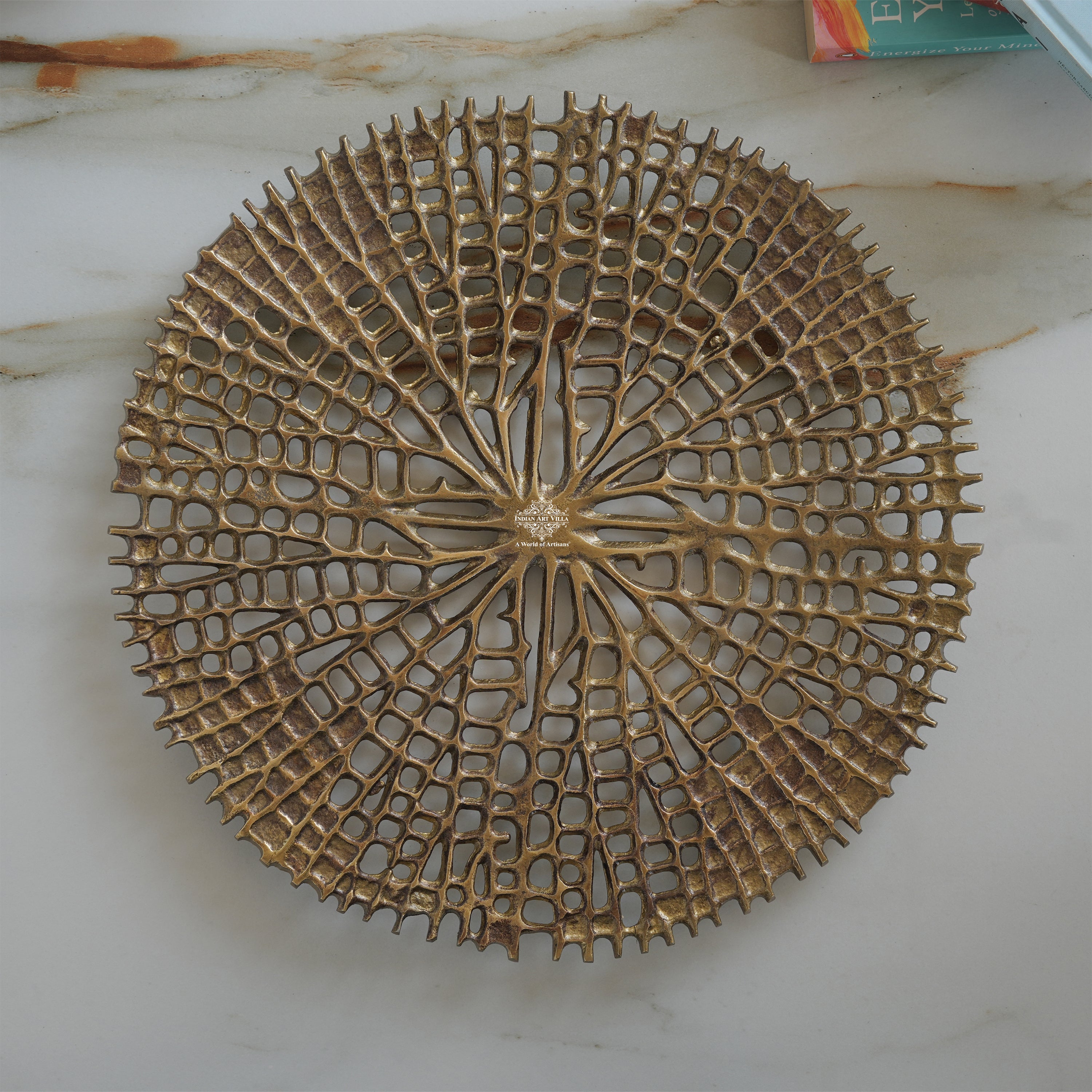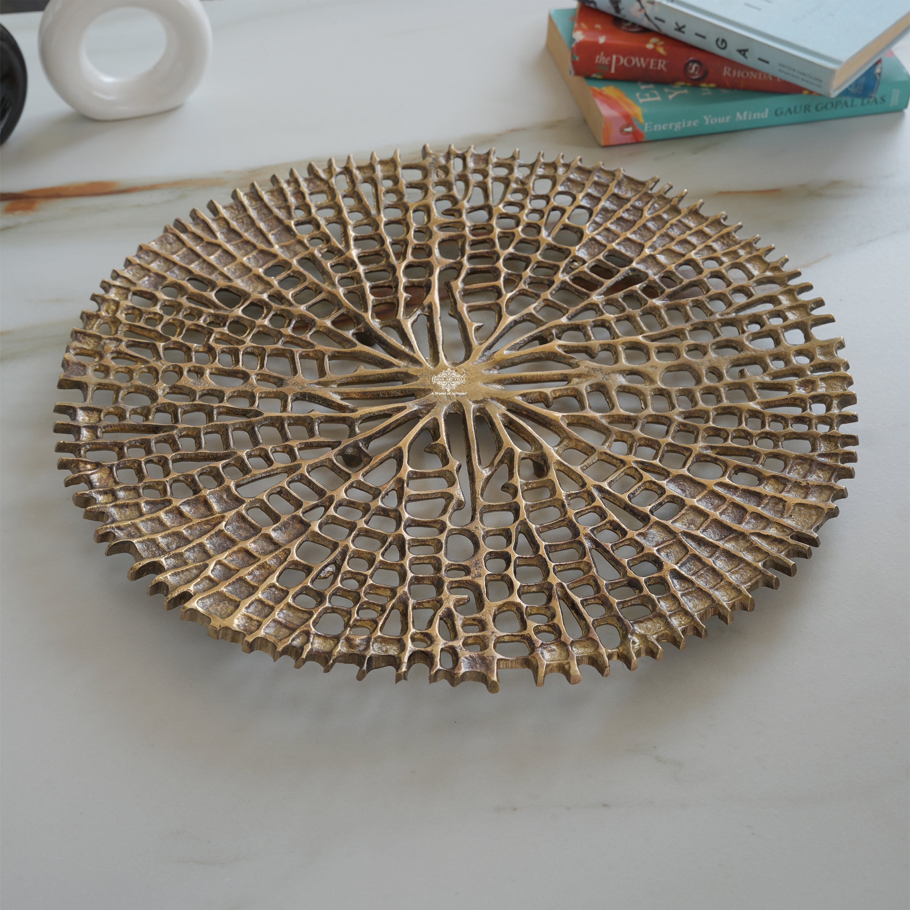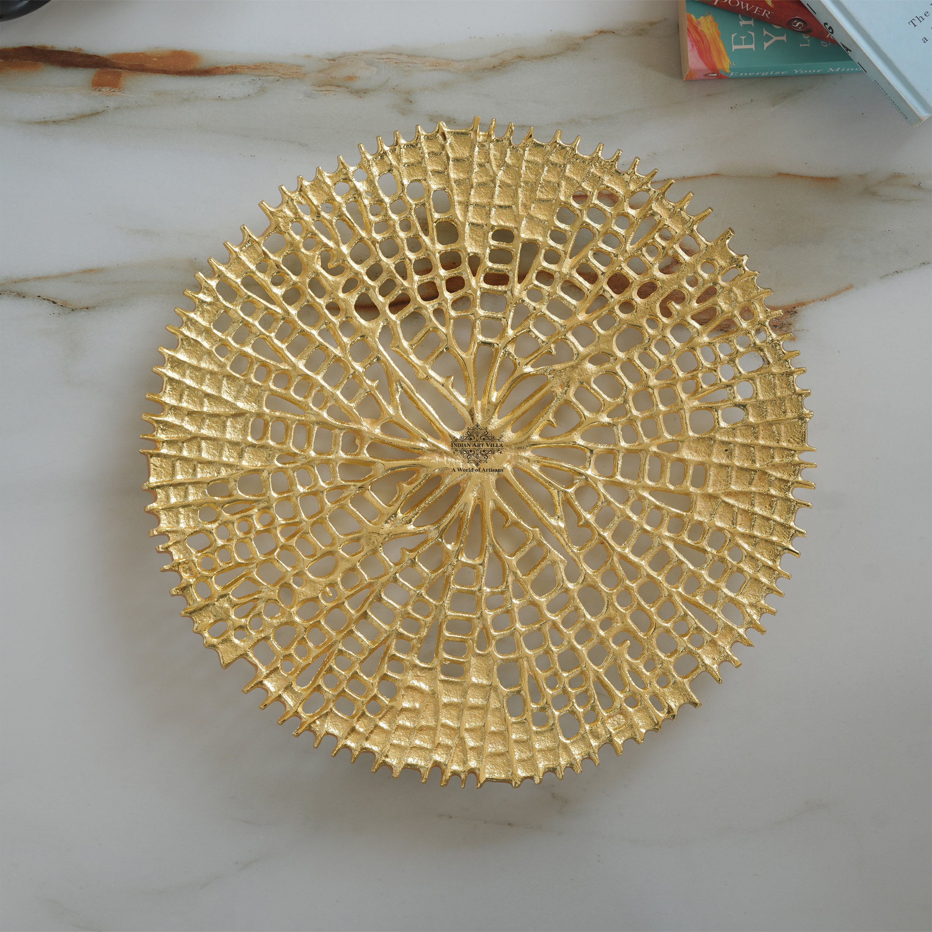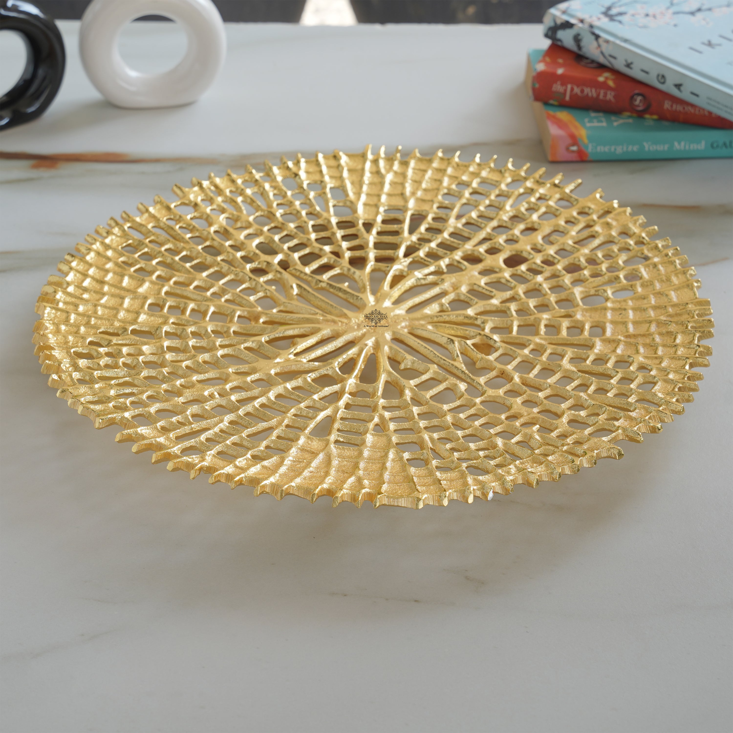 Brass Finish Round Tray 15 Inches
