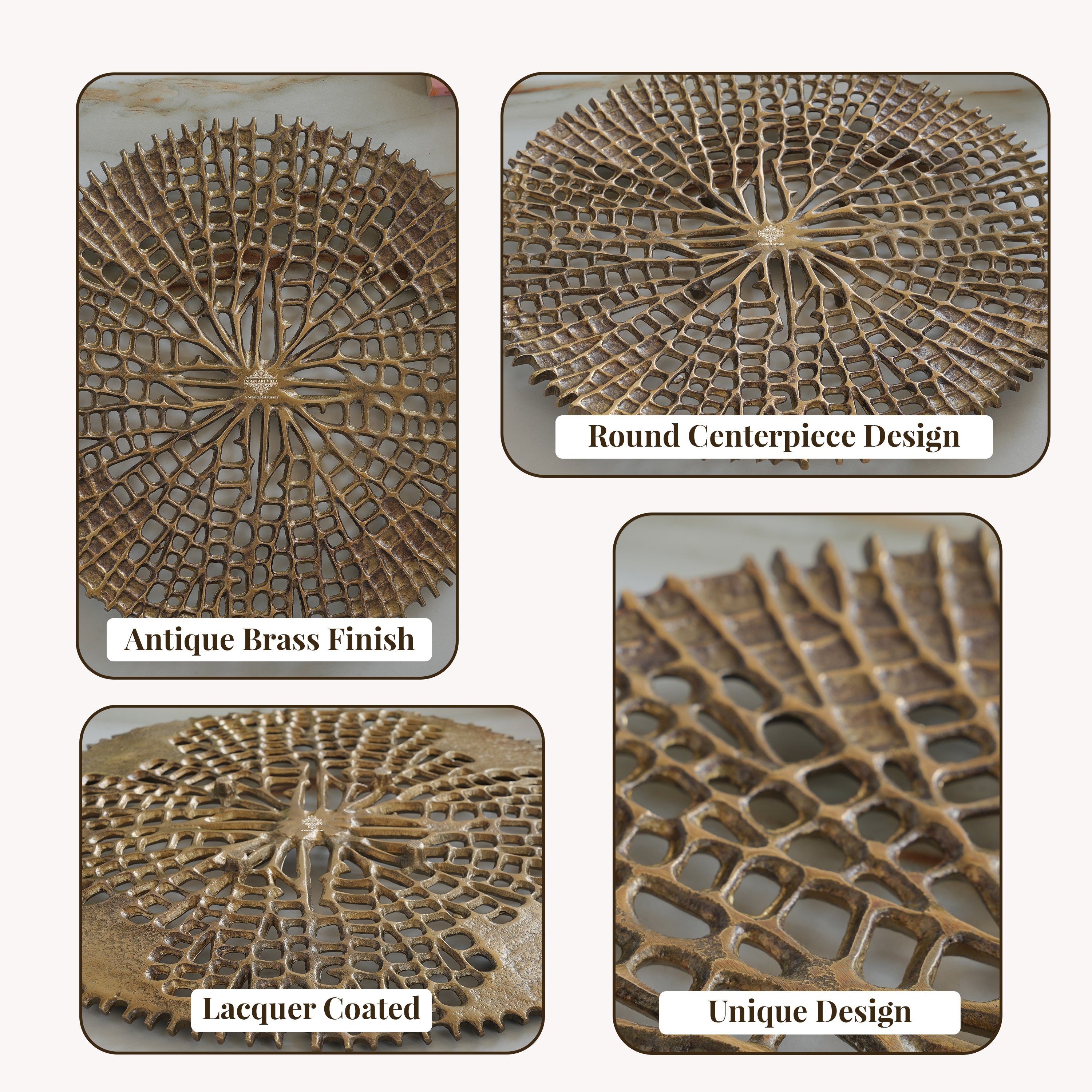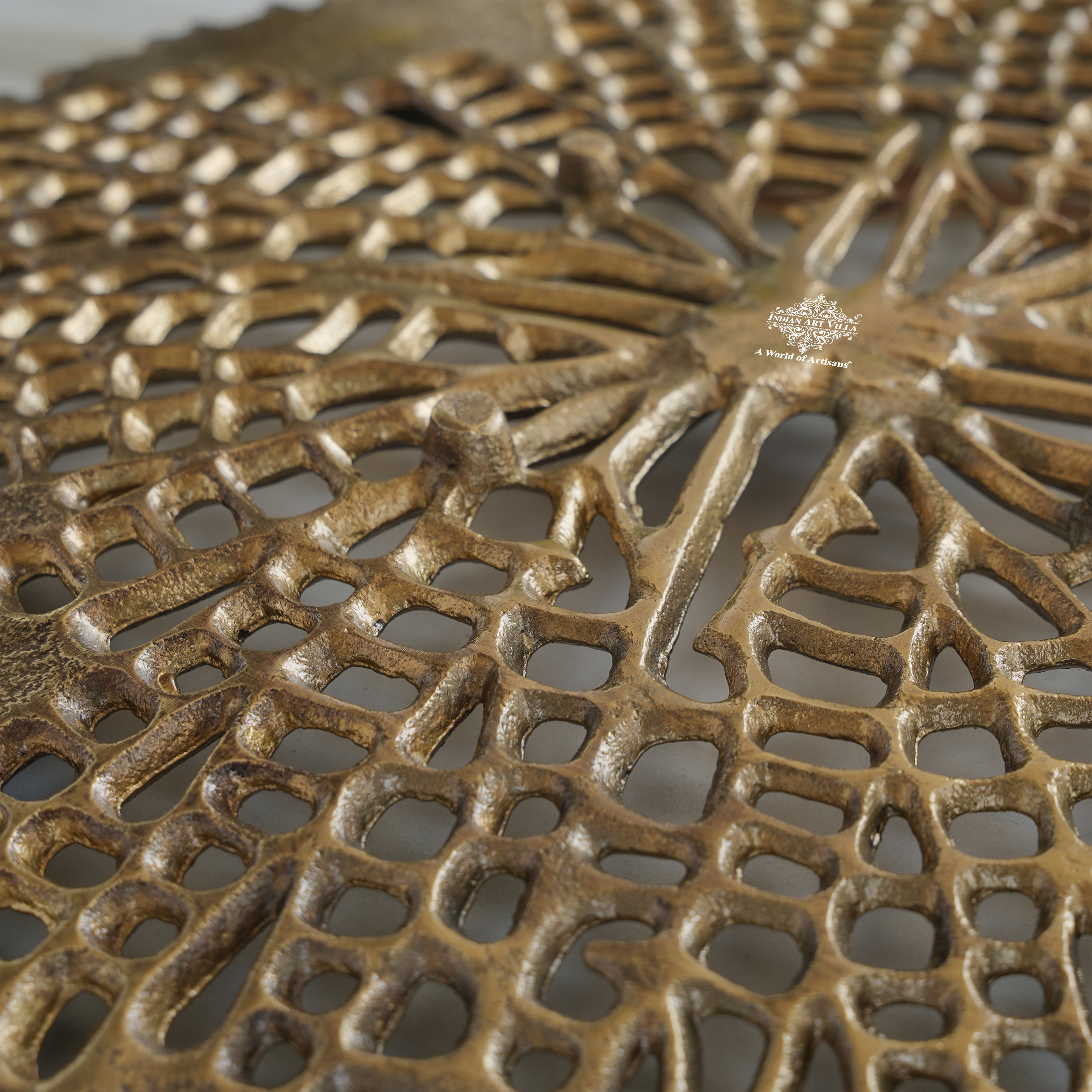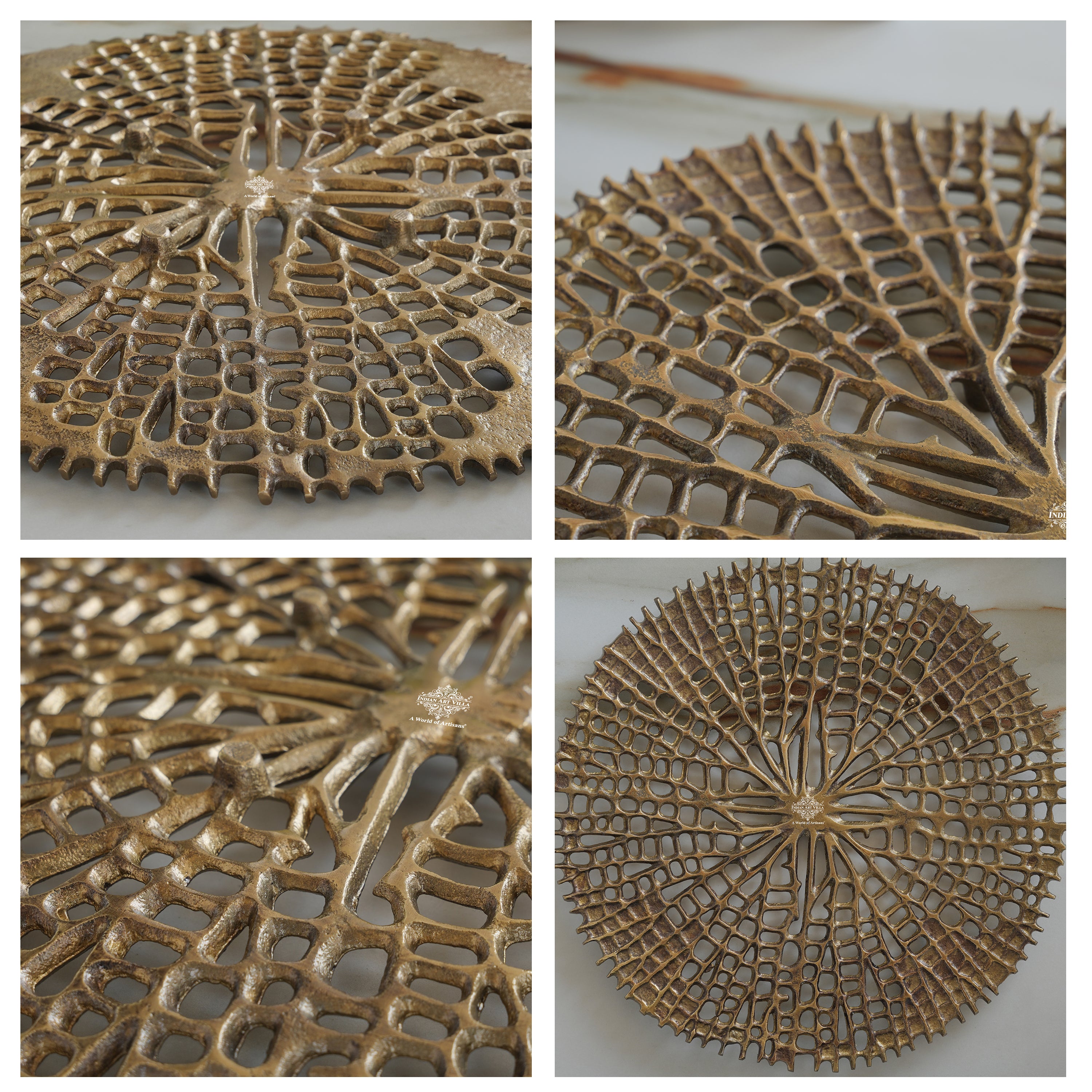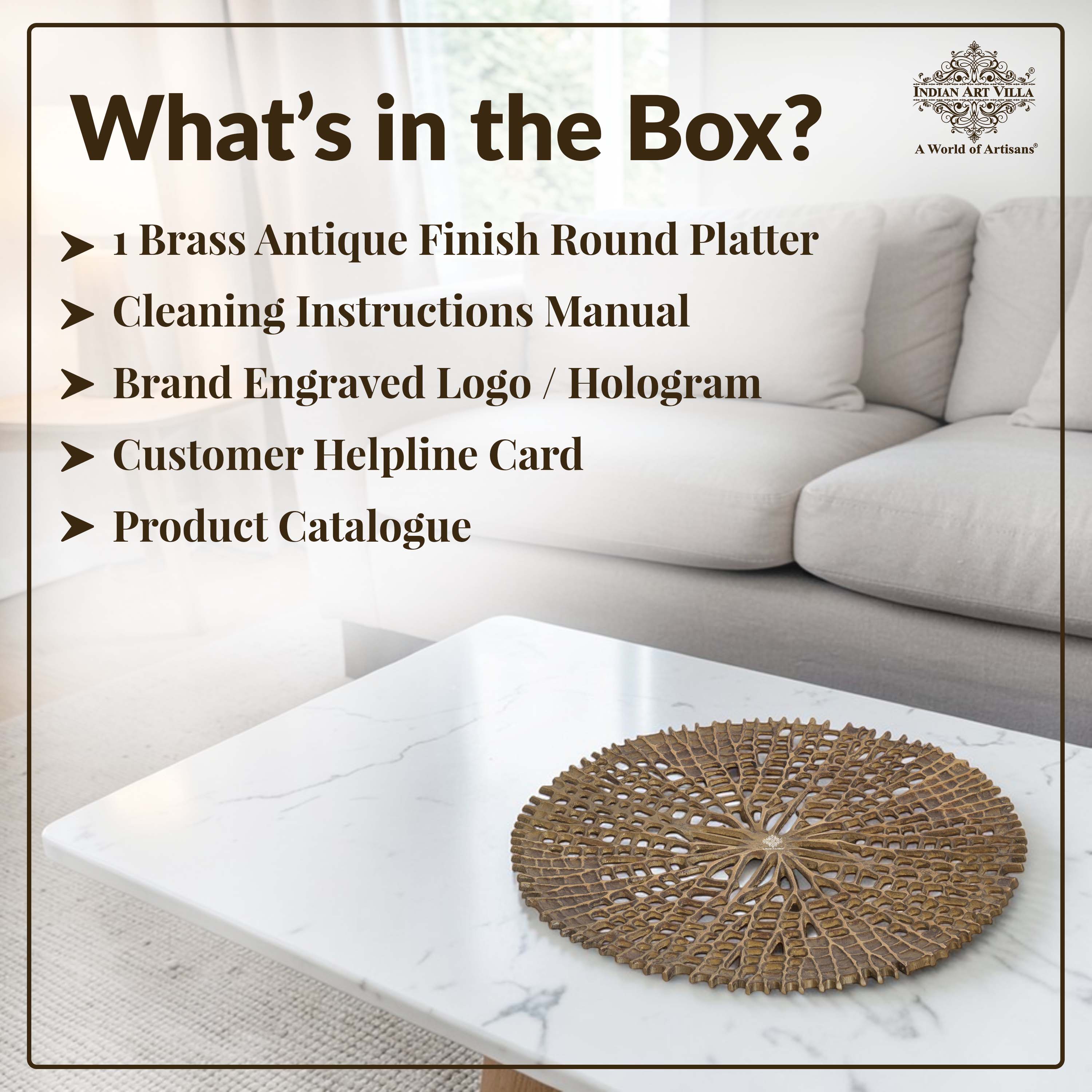 A. The platter is crafted from aluminium with an antique brass finish.