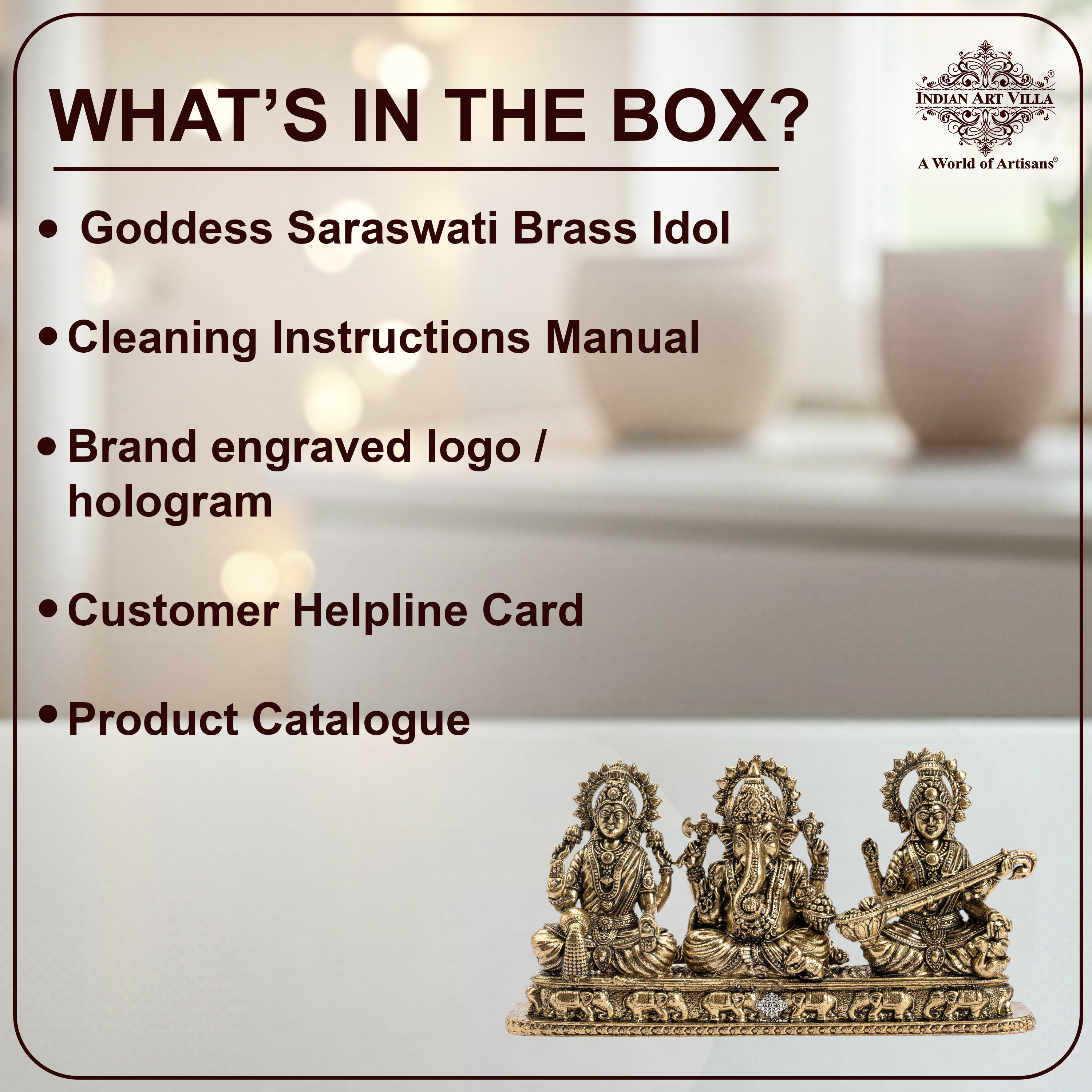 Intricate Laxmi Ji Ganesh Ji & Saraswati Ji Design: Features a detailed brass design, symbolizing prosperity and remover of obstacles.