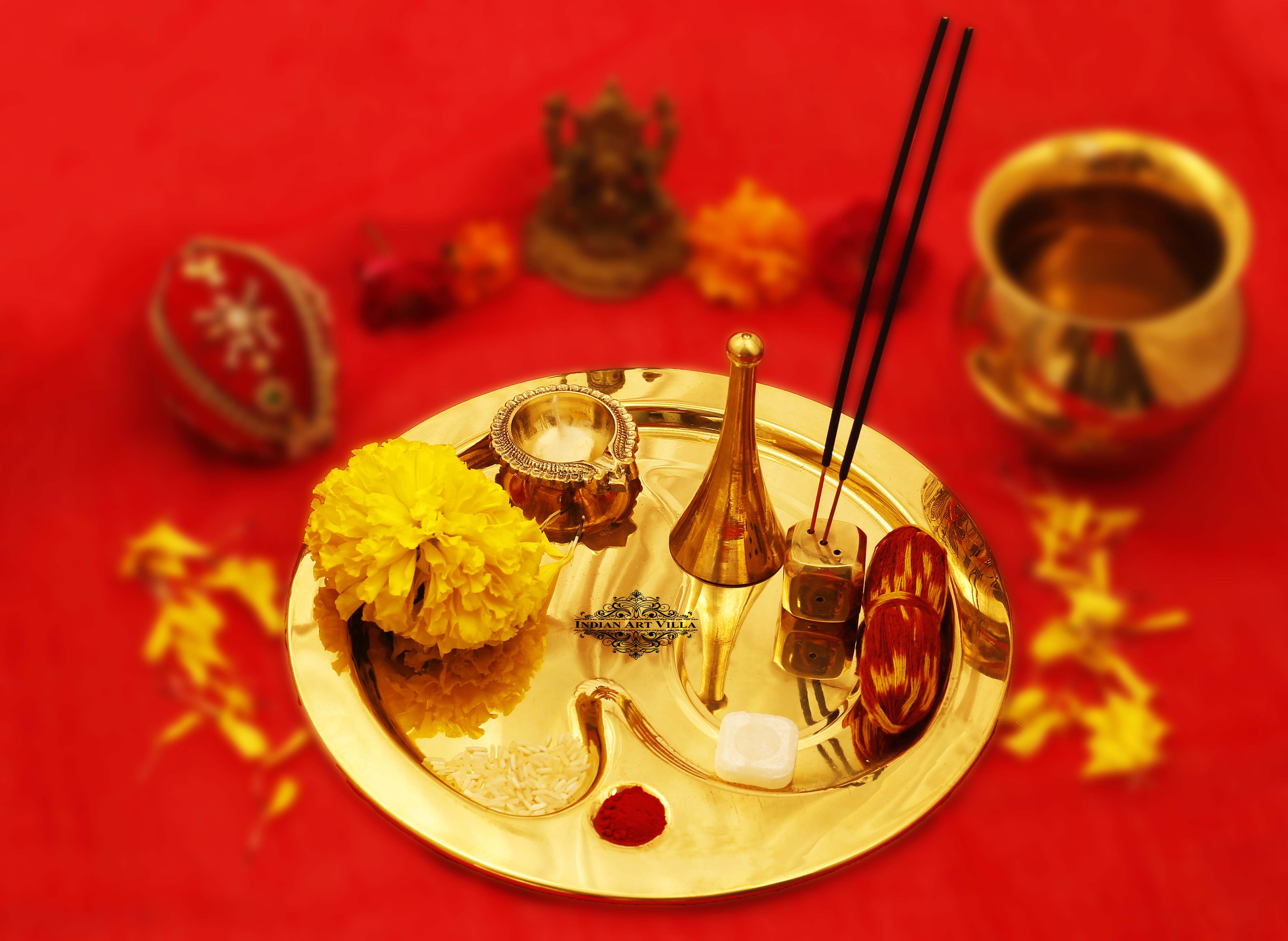 - Order this Pure Brass Om Desine Pooja Thali from Indian Art Villa at Great deals & offers and get a Contactless delivery at your doorstep.