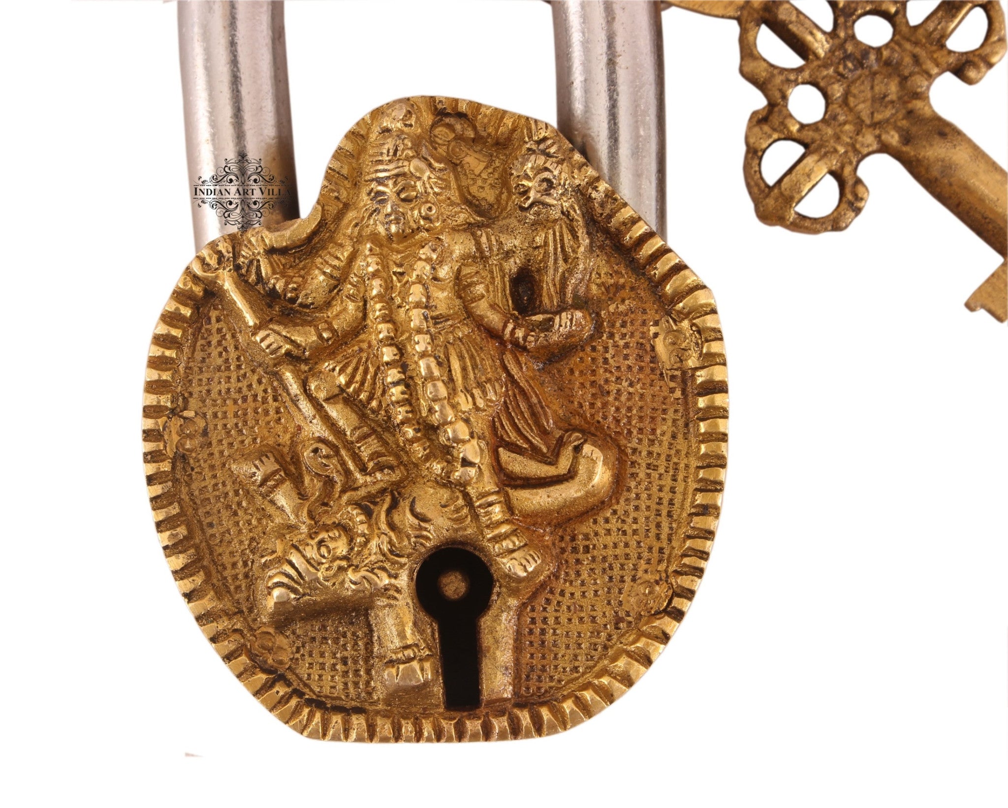 Indian Art Villa Pure Brass Designer Pad Lock, a perfect blend of aesthetics and functionality. This beautifully crafted pad lock adds a touch of elegance and security to your belongings. Made from high-quality brass, it showcases intricate designs and a durable construction. Each pad lock comes with two keys, ensuring convenience and peace of mind. The exquisite detailing on the lock showcases the rich heritage of Indian craftsmanship. Whether you want to secure your personal belongings, cabinets, or lockers, this designer pad lock offers both style and reliability. With its compact size and sturdy build, it is suitable for various applications, including home, office, or travel use. The brass material not only enhances the lock's durability but also adds a touch of sophistication. Enhance the security of your possessions while adding a touch of traditional charm with the Indian Art Villa Pure Brass Designer Pad Lock. Experience the artistry and quality craftsmanship that make this lock a perfect choice for anyone seeking both style and functionality.