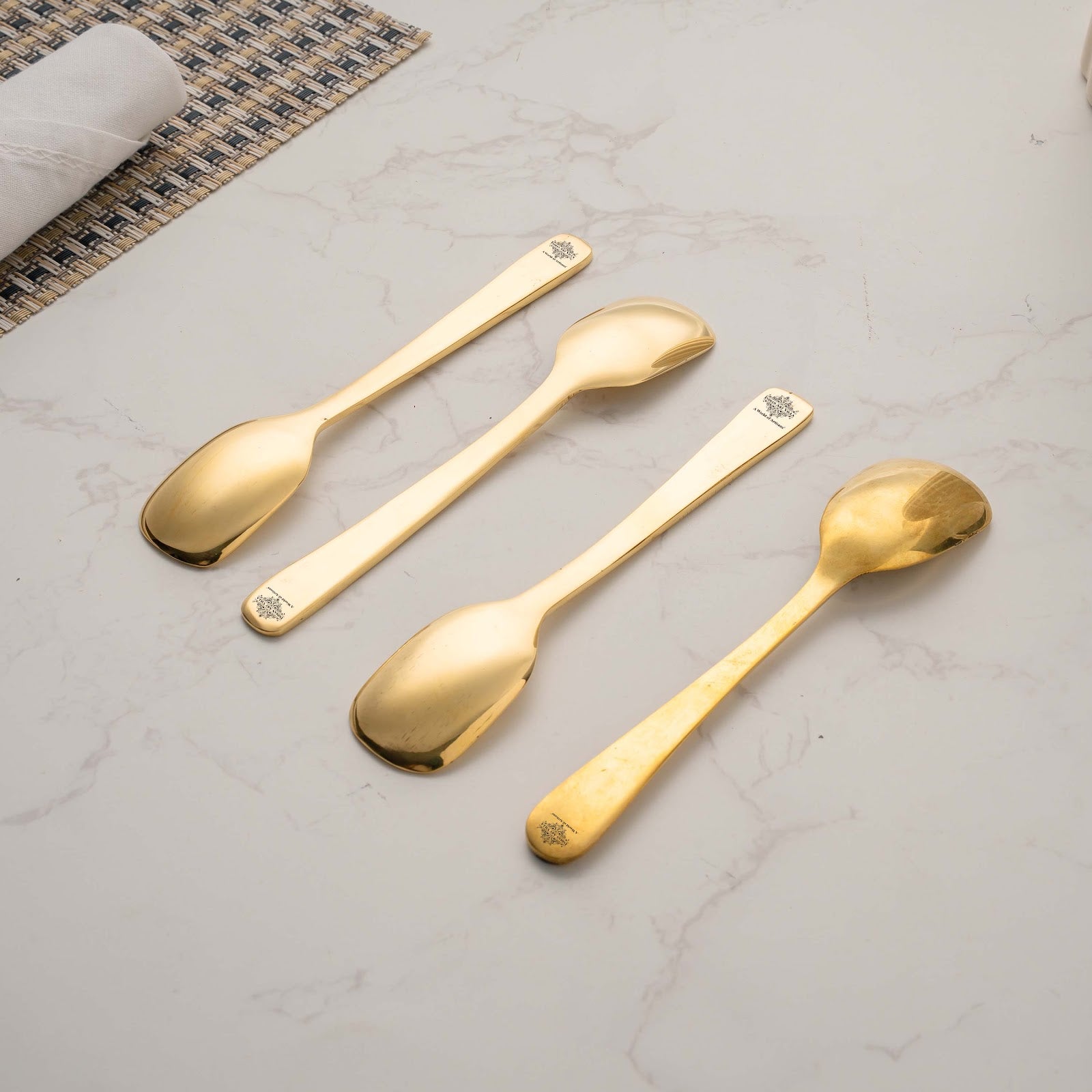 Indian Art Villa Brass Shine Finish Ice-Cream Spoon, measuring 13.97 cm in length, is a delightful fusion of elegance, practicality, and superior craftsmanship. Crafted from premium brass, renowned for its durability and timeless allure, this ice cream spoon embodies the perfect balance of style and functionality. At its essence, this spoon is a masterpiece of design, featuring a sleek and stylish silhouette tailored specifically for serving ice cream. The rounded bowl and comfortable handle allow for effortless scooping and serving, ensuring a delightful experience with every bite. The spoon's ergonomic design and optimal length of 13.97 cm provide a perfect balance of control and comfort during use, making it a pleasure to indulge in your favorite frozen treats. The spoon's radiant shine finish adds a touch of sophistication to any dessert presentation, enhancing the visual appeal of your culinary creations. Its versatile design makes it suitable for a variety of desserts, including gelato, sorbet, puddings, yogurts, and fruit salads, making it a versatile addition to your tableware collection.