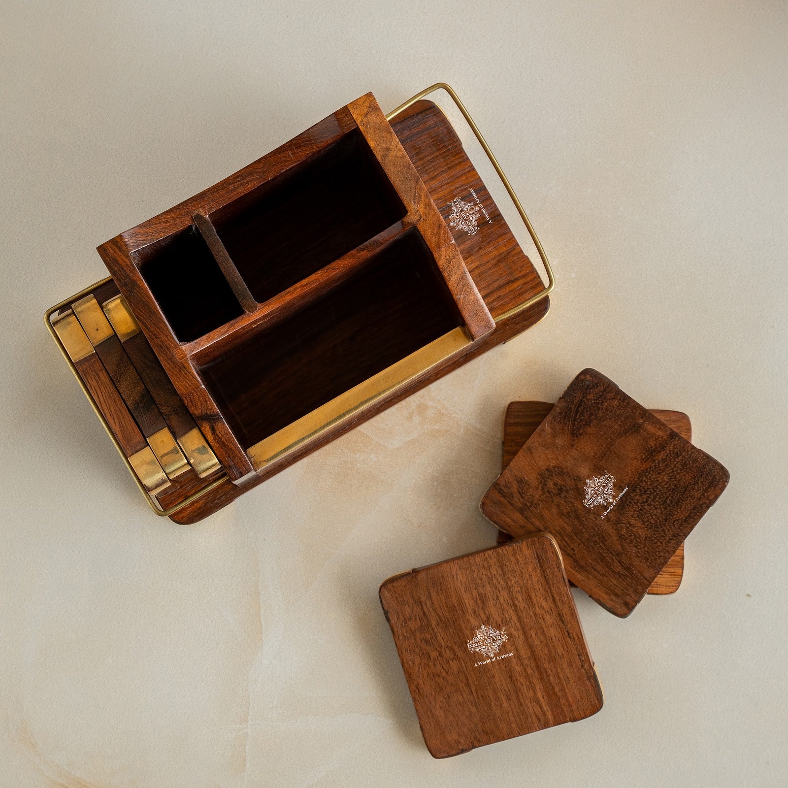 Premium Wooden & Brass Construction - Crafted from high-quality solid wood with elegant brass accents, this coaster set offers durability with a luxurious finish.