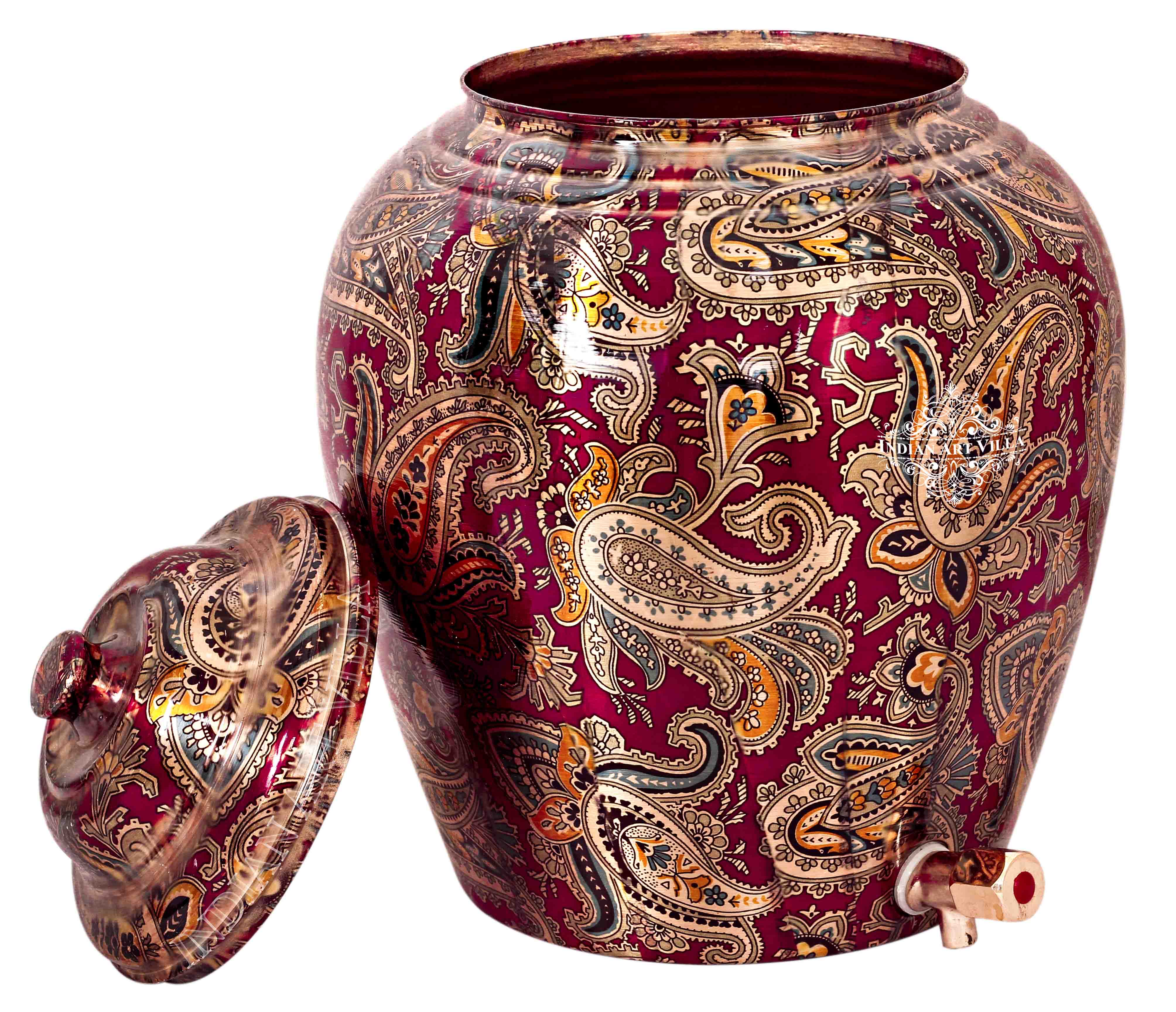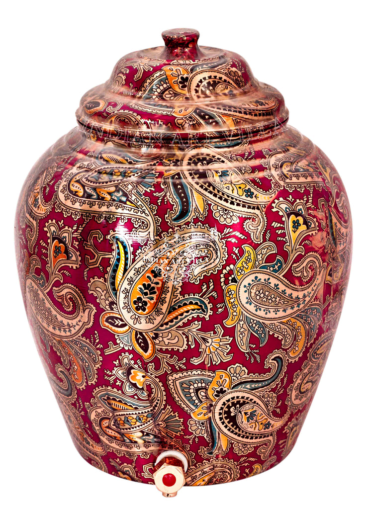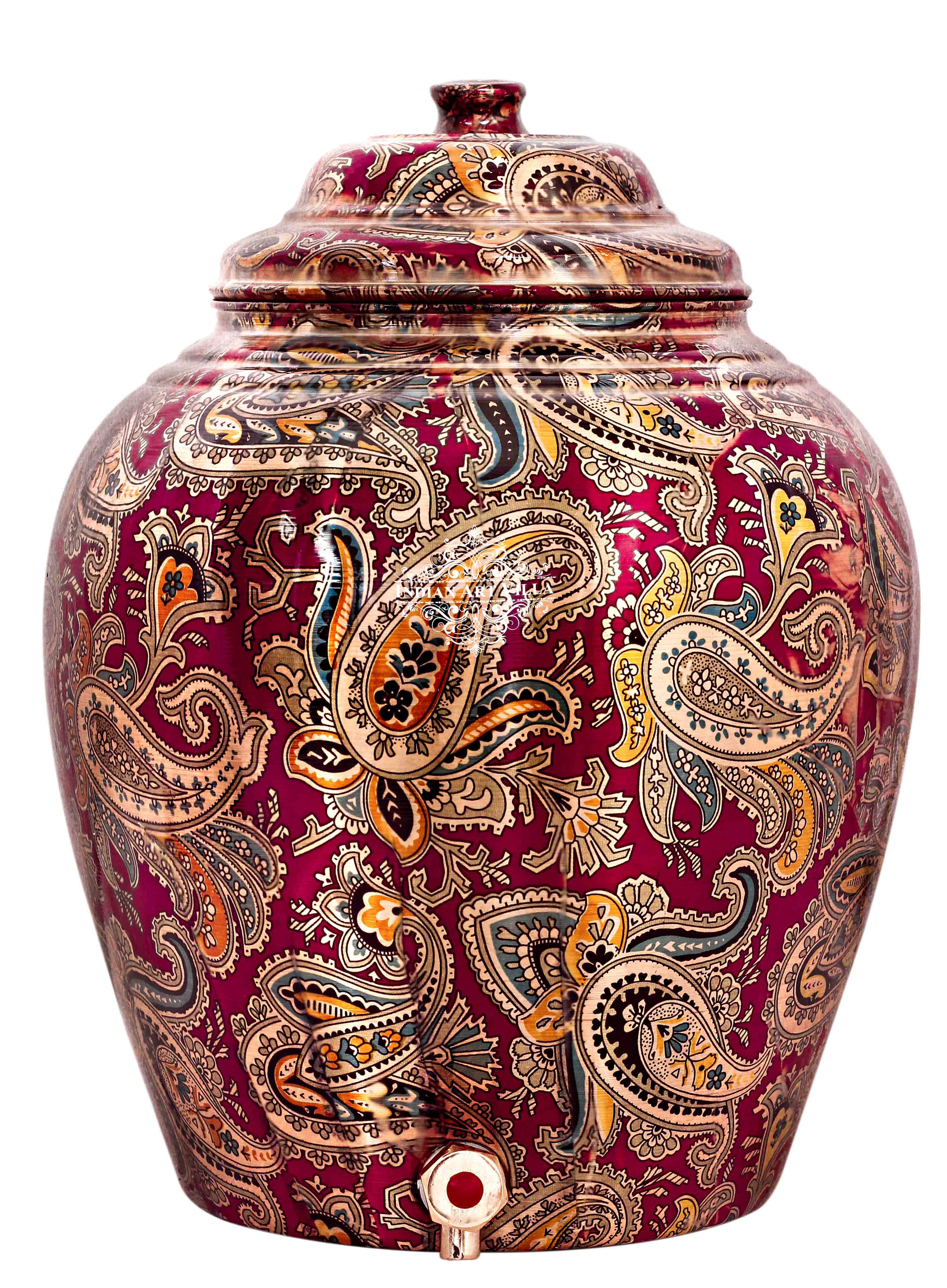 - Indian Art Villa Pure Copper Designer Maroon Water Pot, it was almost impossible to find one that came in a design other than the plain one. Indian Art Villa Provide You with different designs to choose from, allowing you to pick your favorite design or collect them all for those who want a variety of options.