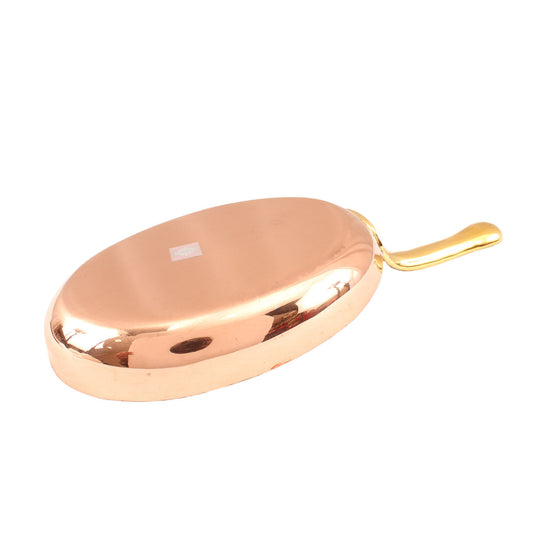 INDIAN ART VILLA Copper Plain Oval Pan Inside Tin Lining with Brass Handle, a culinary masterpiece that seamlessly combines tradition with functionality. This elegant Serveware is designed to elevate your experience while adding a touch of timeless beauty to your kitchen. Crafted from high-quality copper, this oval pan stands out with its distinctive shape and plain exterior, reflecting a classic design that transcends trends. The copper construction not only lends a sophisticated aesthetic but also ensures excellent heat conductivity, allowing for precise temperature control during cooking. The brass handle is a standout feature, not just for its sturdy construction but also for its heat-resistant properties. This ergonomic handle provides a comfortable grip, allowing you to maneuver the pan with ease while cooking. Bring a touch of timeless elegance to your culinary endeavors with the INDIAN ART VILLA Copper Plain Oval Pan Inside Tin Lining with Brass Handle – where tradition meets modernity in the heart of your kitchen.