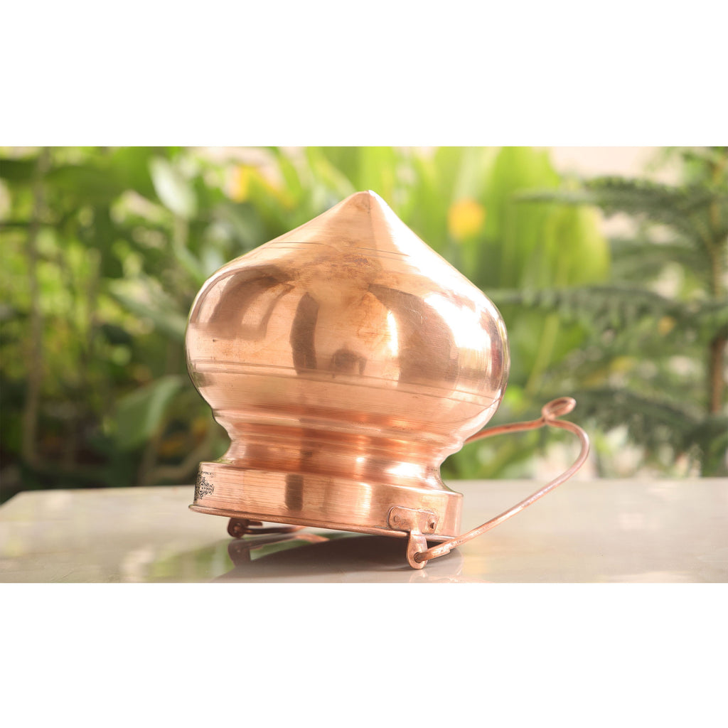 The new Shiv Jal Dhara container by made with the finest quality copper depicts the gleam of sanctity. Adding a touch of antiquity, this masterpiece draws an aura of divinity in temples and pooja rooms. It is a conduit of devotion that depicts sanctity. The container with an opening at the base, is made with pure copper that attracts positive energy and purity. With a refined touch, this Jal Dhara container is a work of art shaped with utmost reverence and dedication. Its beauty etched in elegance shows the devotion of artisans. It's an antique treasure made with a contemporary touch to embrace the whisper of every deity.