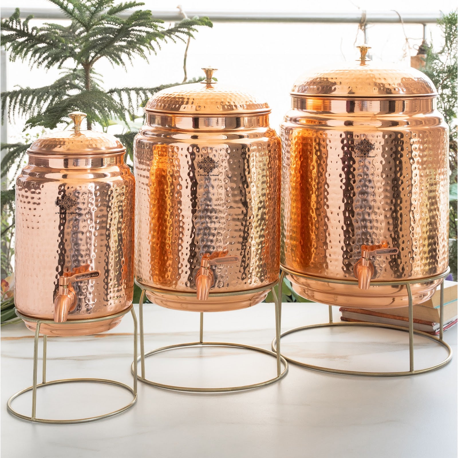 - INDIAN ART VILLA Pure Copper Hammered Design Water Pot With Stand, it was almost impossible to find one that came in a design other than the plain one. Indian Art Villa Provide You with different designs to choose from, allowing you to pick your favorite design or collect them all for those who want a variety of options.