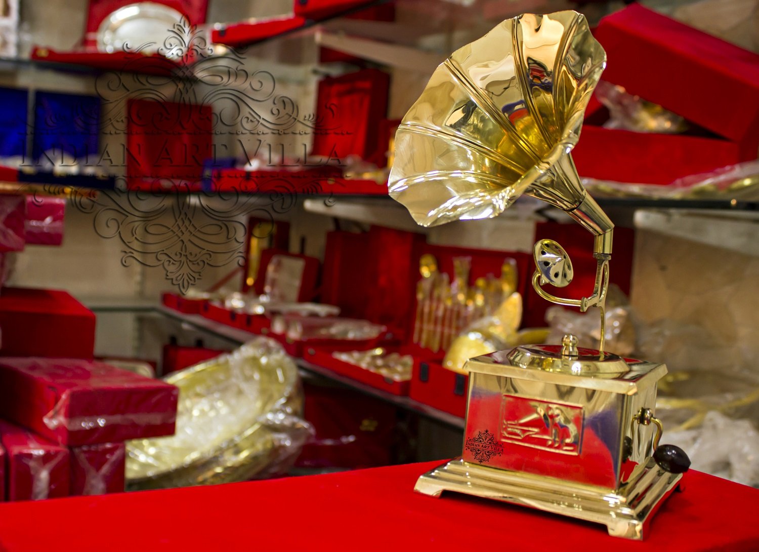 Indian Art Villa Pure Handmade Brass Dummy Square Gramophone Phonograph, a stunning showpiece and decorative gift item for your home or office. Crafted with meticulous care, this brass dummy gramophone is a tribute to the vintage era, adding a touch of nostalgia and elegance to any space. The intricate detailing and craftsmanship make it a true work of art. The square design gives it a unique and eye-catching appeal, making it a conversation starter among guests and visitors. Display it on your shelves, desk, or mantelpiece, and let its beauty enhance the aesthetics of your surroundings. Not just a decorative piece, this gramophone phonograph also serves as a reminder of the bygone era of music. Though it doesn't play actual records, its presence evokes a sense of timeless charm and sophistication. Whether you're a collector of antique memorabilia or simply appreciate exquisite craftsmanship, this Indian Art Villa Pure Handmade Brass Dummy Square Gramophone Phonograph is a must-have addition to your decor. Embrace the charm of yesteryears with this captivating showpiece.