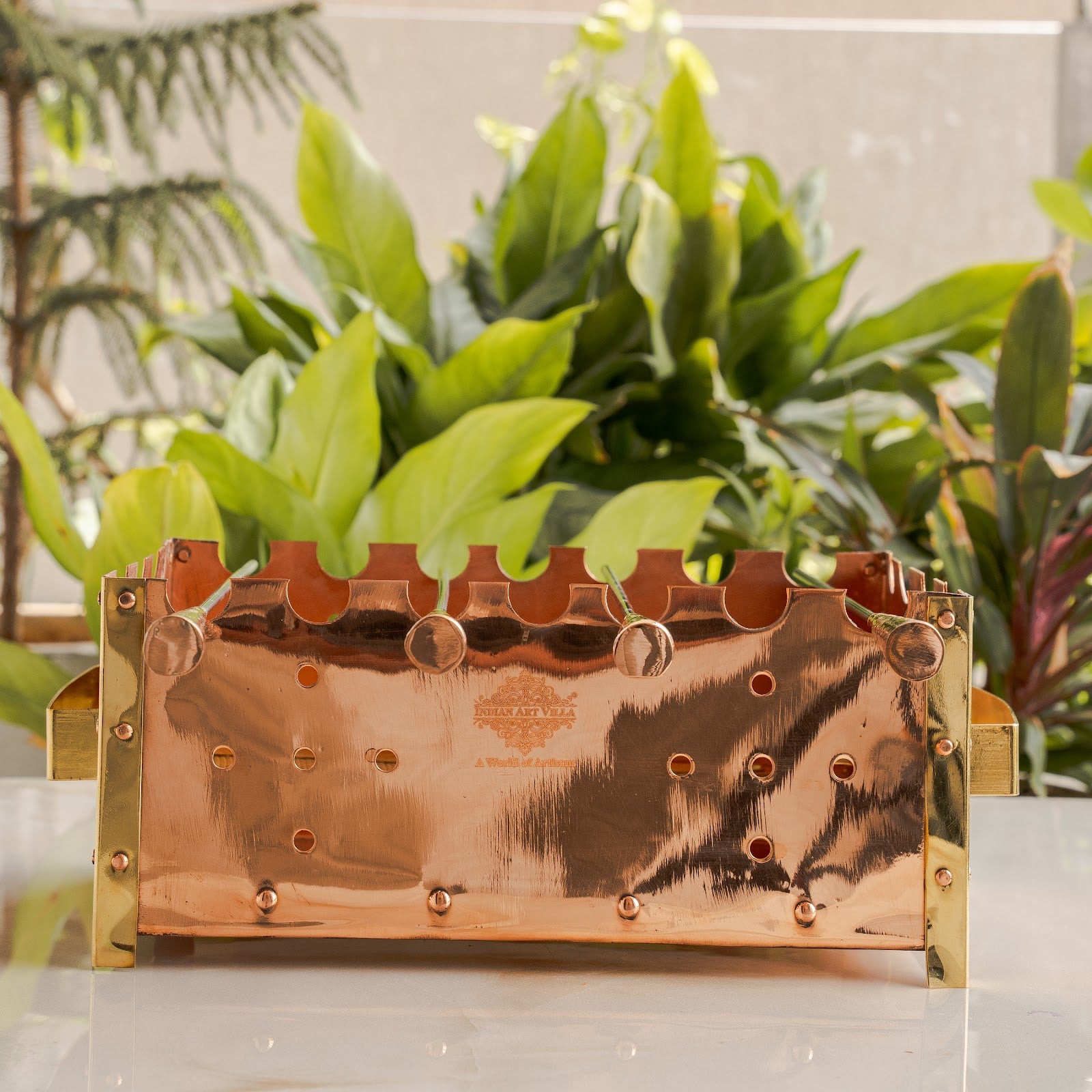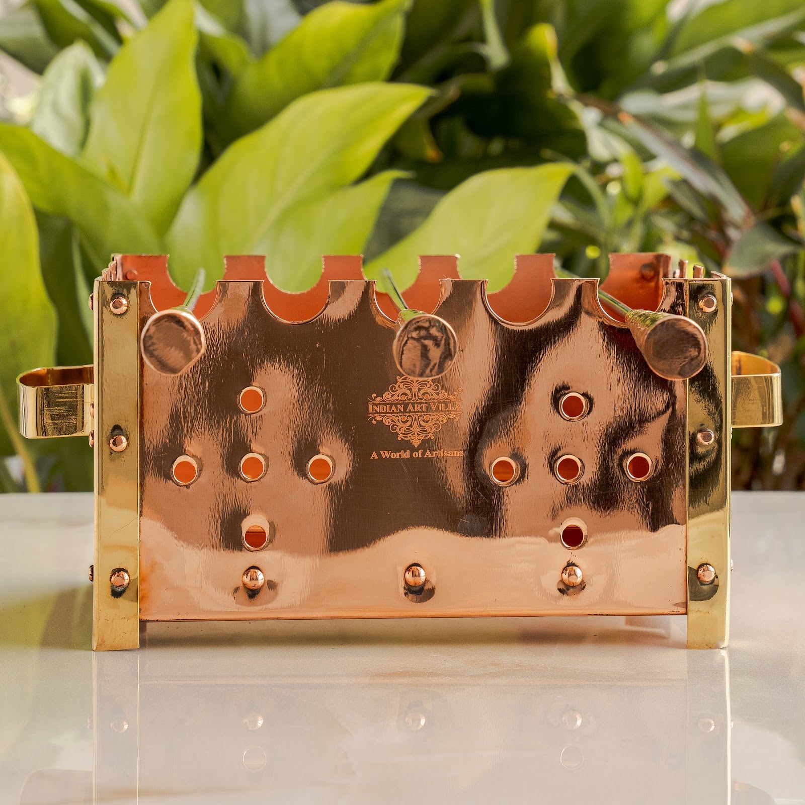 Indian Art Villa Copper Barbecue with 4 Skewers, a perfect companion for outdoor grilling and creating mouthwatering culinary delights. Crafted with precision and expertise, this barbecue set brings together functionality and elegance in one package. Made from high-quality copper, this barbecue offers excellent heat conductivity and even distribution, ensuring your food is cooked to perfection every time. The beautiful copper finish adds a touch of sophistication to your outdoor gatherings and makes a statement on any tabletop. The set includes 4 skewers, allowing you to grill multiple items simultaneously and cater to the preferences of your guests. The skewers are sturdy and long enough to hold generous portions of meat, vegetables, or seafood.