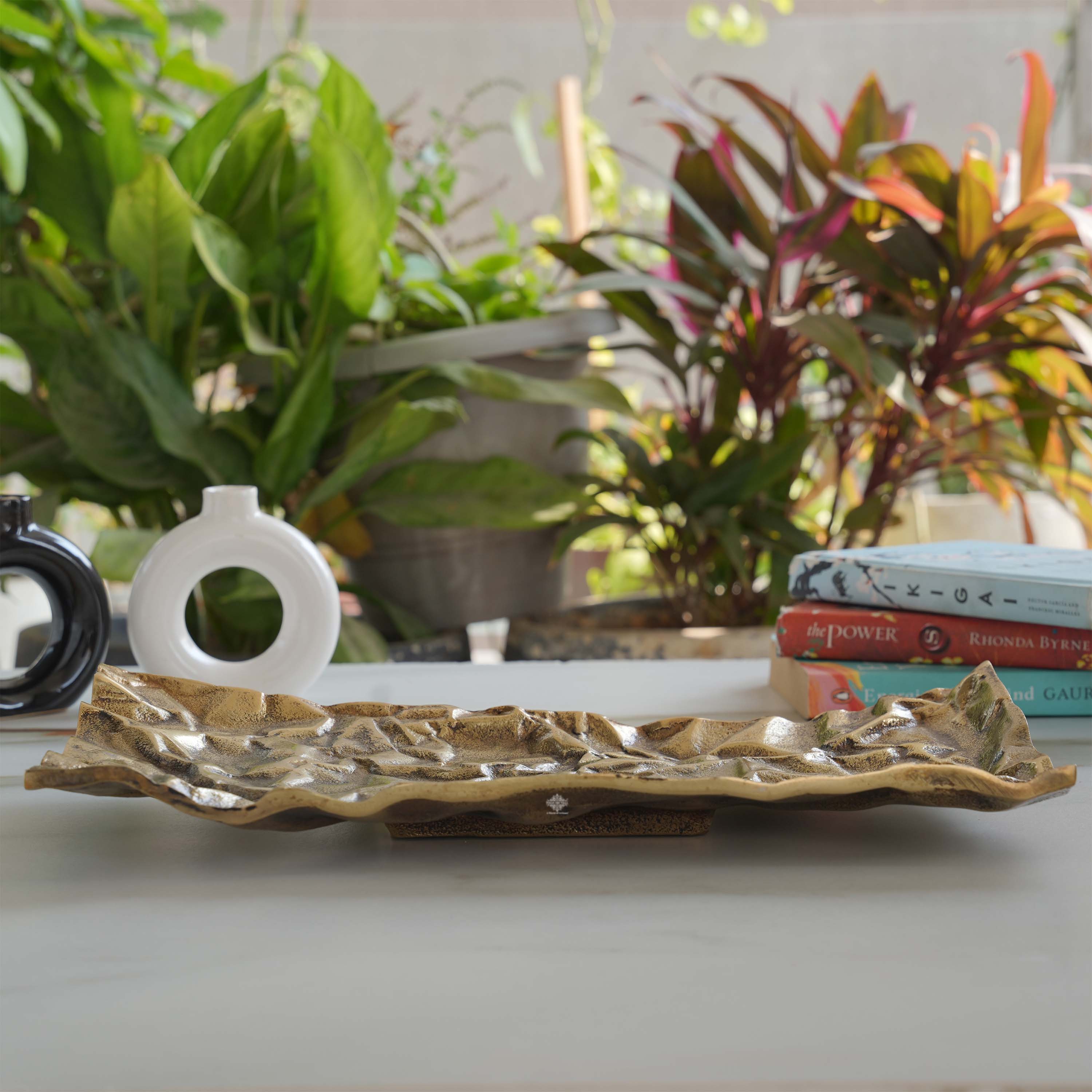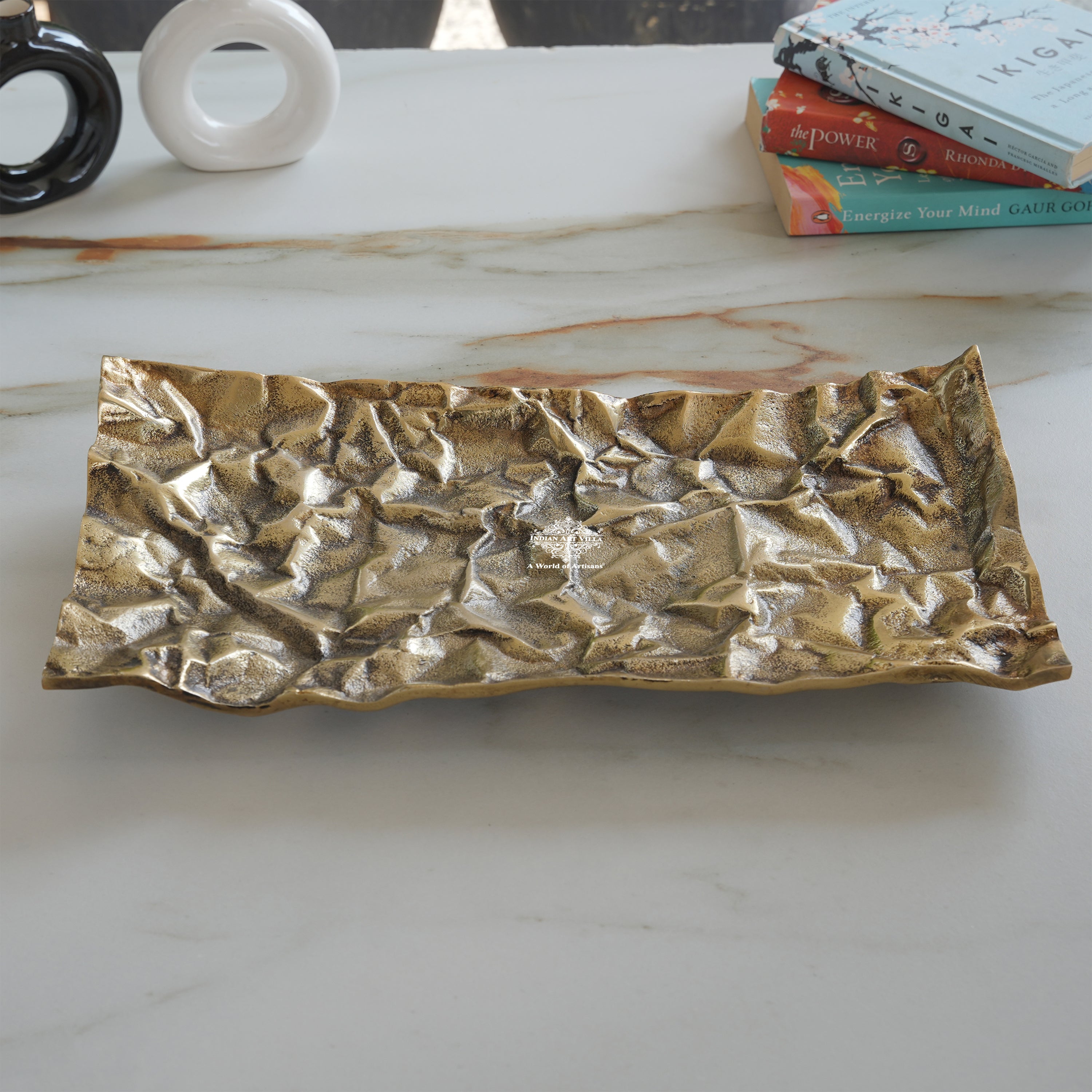 Brass Finish Antique Rough Finish Tray 14.3 Inches
