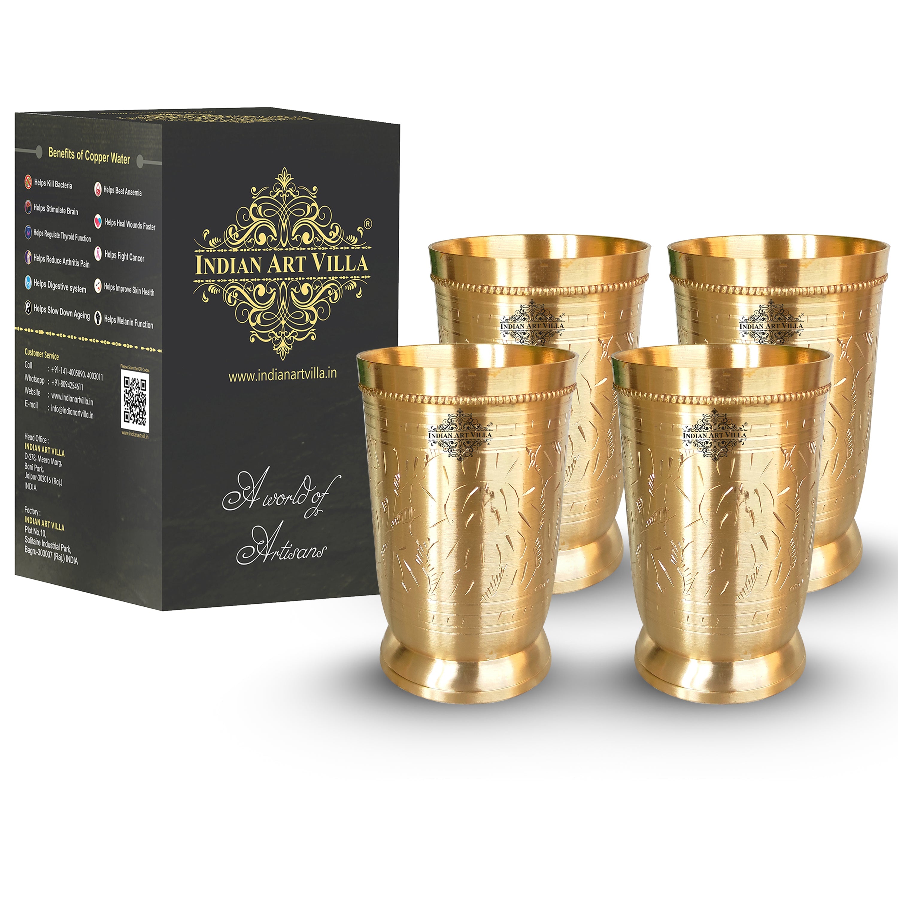- IndianArtVilla Brass Glass Cup Tumbler With Etched Mughlai Matt Design, it was almost impossible to find one that came in a design other than the plain one. Indian Art Villa Provide You with different designs to choose from, allowing you to pick your favorite design or collect them all for those who want a variety of options.