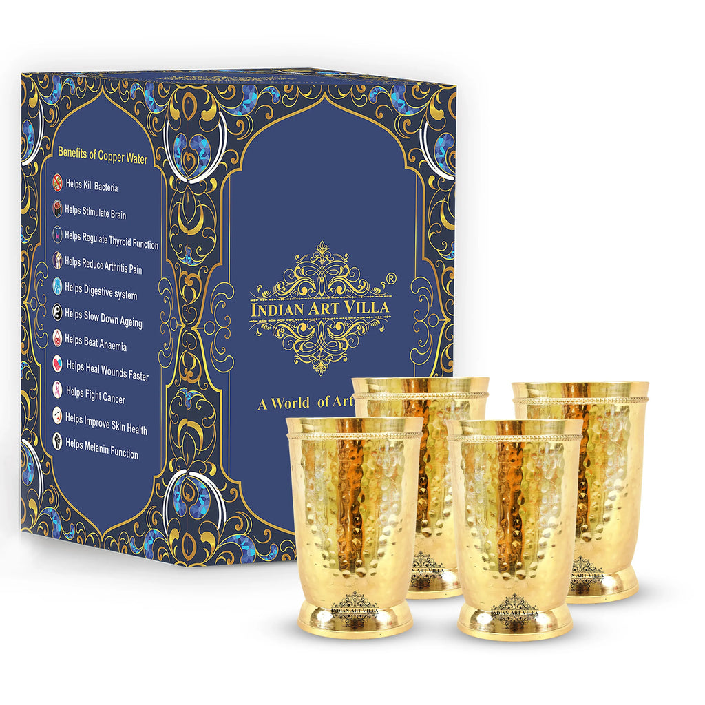 Indian Art Villa Presents Best Quality Pure Brass Handmade Mughlai Matt Design Glass Cup Tumbler. We offer the best affordable prices & Free Shipping PAN India. This Beautiful Pure Brass Handmade Mughlai Matt Design Glass Cup Tumbler can be used as a home decor item or they can also be gifted to your near and dear ones. Also, Make your home more lively and cheerful with this brilliant decor piece. If you’re looking for the finest quality brass glasses, you have come to the right place! We, at Indian Art Villa, have around a decade-long experience in terms of manufacturing copper & brass products and have our own unique collection of copper & brass glasses to shop from. brass glasses are also becoming an integral part of modern-day kitchens. Only this time, the trend is not limited to India. Yes, copper glasses have caught attention in many countries around the world now that everybody is fully aware of their health benefits and the recent boom in the global market has made it easier for everyone to shop their desired brass glass set online in just a few clicks. IndianArtVilla Brass items have antique designs. The item is highly durable, elegant, and a wonderful addition to your Home Decor.