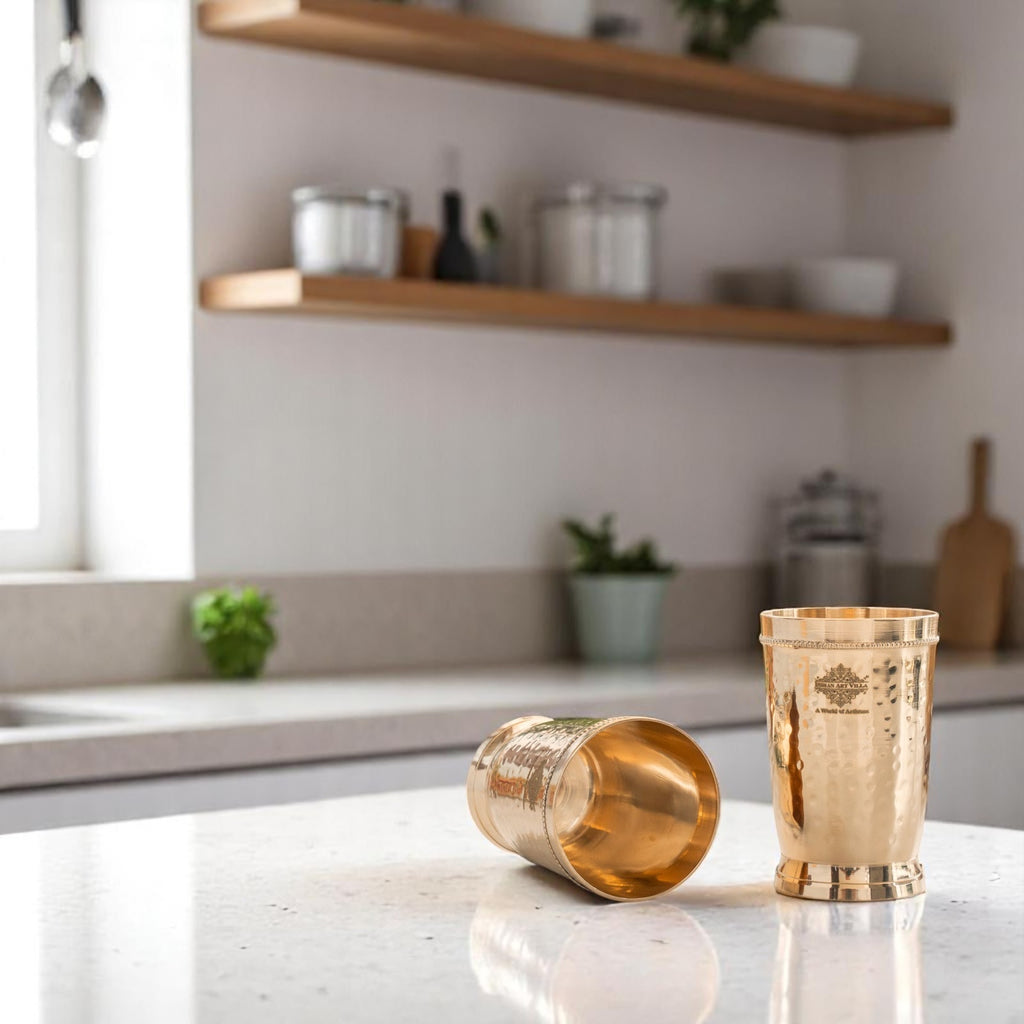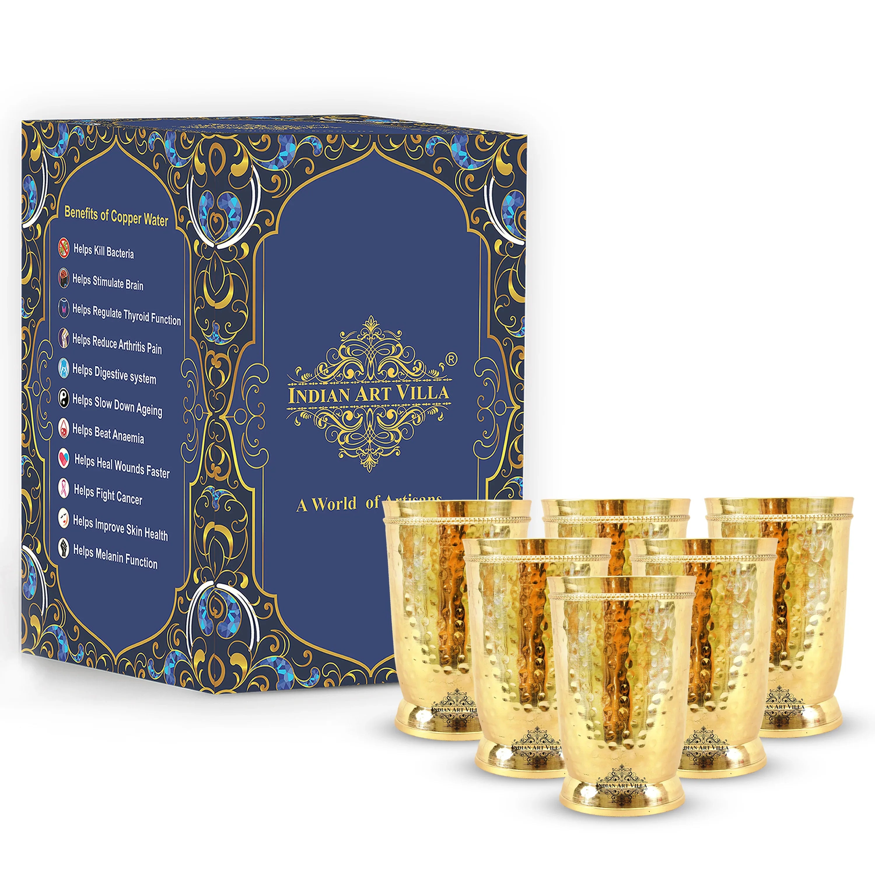 - These Pure Brass Handmade Mughlai Matt Design Glass Cup Tumblers also have Trendy looks for better ergonomics. You can add Royal Vintage Look to your Kitchen & Dining by using these Set for your Dinnerware/Serveware Purpose.