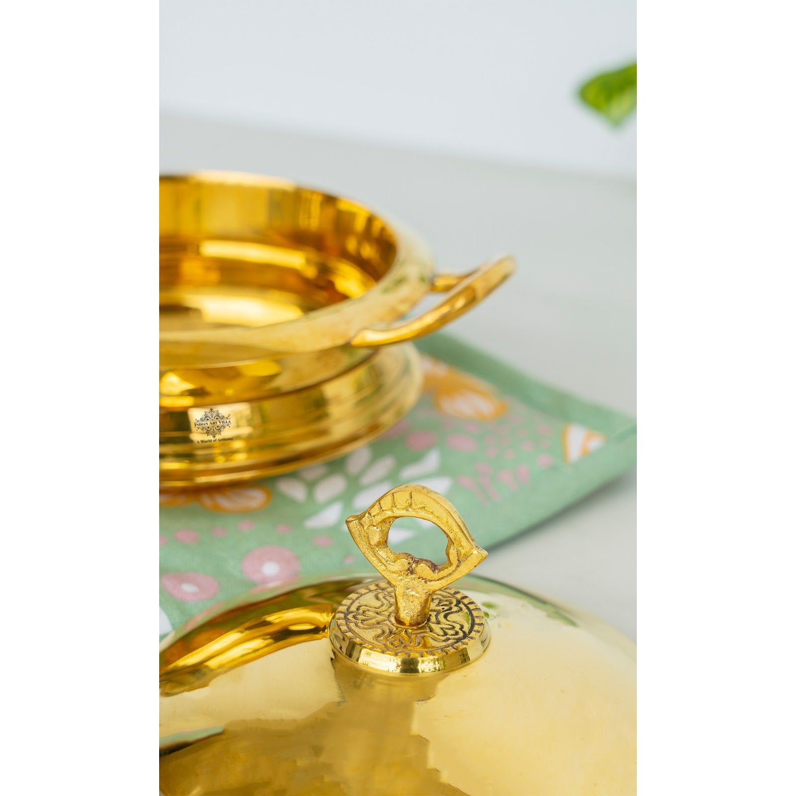 Indian Art Villa Presents Best Quality Pure Brass Designer Kadai. We offer the best affordable prices & Free Shipping PAN India. This Beautiful Pure Brass Embossed Designer Kadai can be used as a home decor item or they can also be gifted to your near and dear ones. Also, Make your home more lively and cheerful with this brilliant decor piece. If you’re looking for the finest quality Brass Kadai , you have come to the right place! We, at Indian Art Villa, have around a decade long experience in terms of manufacturing Brass products, and have our own unique collection of Brass Kadai to shop from. Brass Kadai are also becoming an integral part of modern day kitchens. When talking about Tableware set, it is something which has the power to make or break the beauty of dining table. Relish Indian cuisine in Indian style! This is a set of centerpiece serve-ware for Indian food. Serve Indian dishes to your friends and family in this unique and ethnic-looking centerpiece serveware. With this serving utensil set your Indian style dining experience goes several notches up. Serving dinner in this Serveware Set would be an unforgettable experience. Indian Art Villa Brass items have antique designs. The item is highly durable, elegant, and a wonderful addition to your Home Décor.