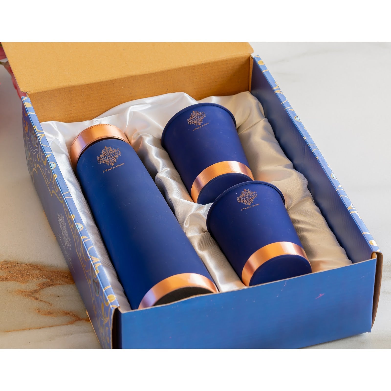 - Order this Pure Copper Drinkware Gift Set of Copper Bedroom Bottle Copper Glass from Indian Art Villa at Great deals offers and get a Contactless delivery at your doorstep. Our Products comes with INDIAN ART VILLA Care instruction Booklet Sample Cleaning Powder , so our customer cum family faces no problem while using the product.