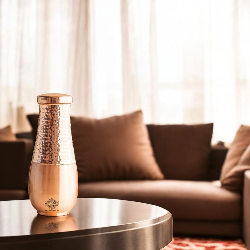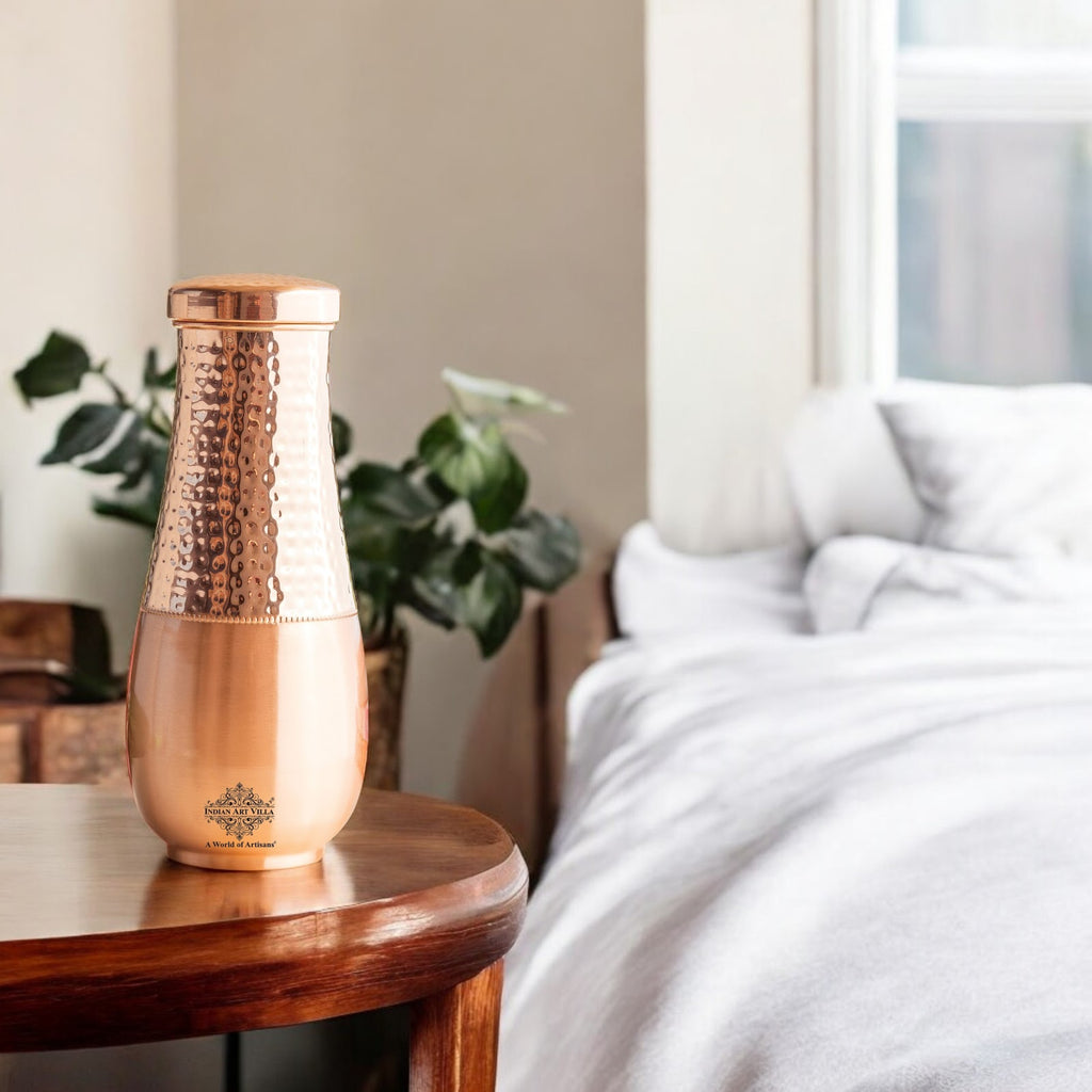 Elegant Half-Hammered Design: Features a smooth upper body with a beautifully hammered bottom section, giving the bottle a stylish handcrafted look perfect for bedside use and home décor.