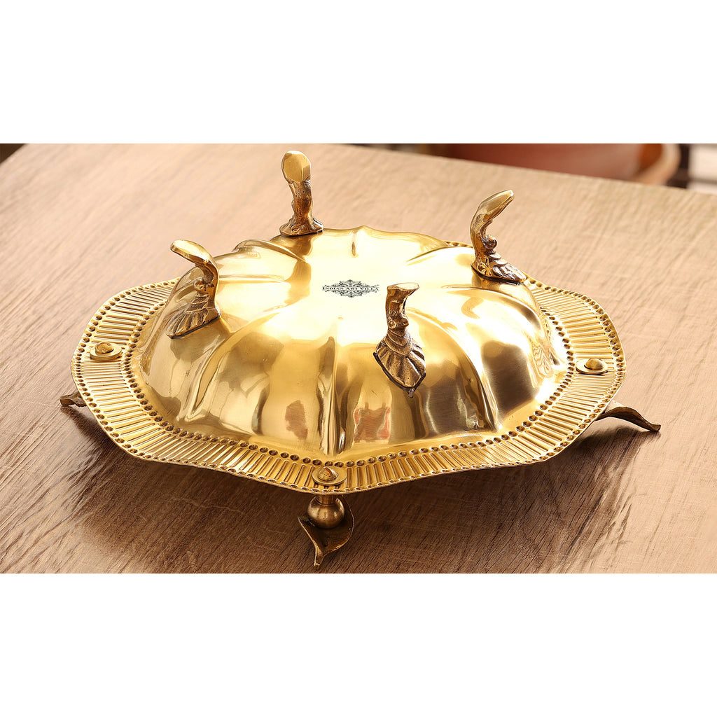 - The tray is made of high-quality brass, ensuring durability and longevity. Brass is known for its strength and resistance to corrosion, making it an ideal material for serving trays.