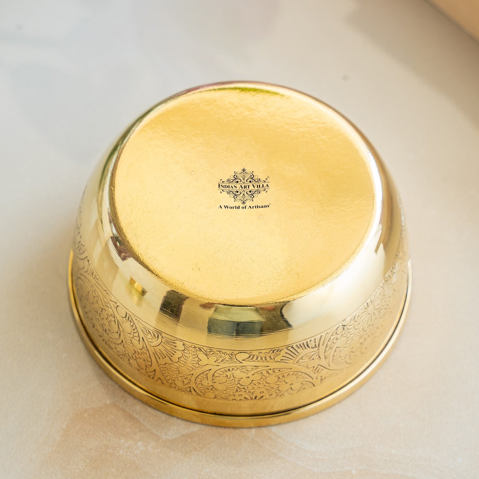 Indian Art Villa Presents Best Quality Pure Brass Embossed Design Flat Bottom Bowl. We offer the best affordable prices & Free Shipping PAN India. This Beautiful Pure Brass Embossed Design Flat Bottom Bowl can be used as a home decor item or it can also be gifted to your near and dear ones. Also, Make your home more lively and cheerful with this brilliant decor piece. If you’re looking for the finest quality brass Product, you have come to the right place! We, at Indian Art Villa, have around a decade-long experience in terms of manufacturing copper & brass products and have our own unique collection of copper & brass Products to shop from. Brass Bowl is also becoming an integral part of modern-day kitchens. When talking about dinner sets, it is something that has the power to make or break the beauty of the dining table.This not only helps in boosting up your immune system but also has the power to beat hypertension. As zinc is present in Brass, it helps Purify the blood. Brass is a material that has been used and cherished by our ancestors and it possesses some miraculous health benefits which have been proved scientifically as well. Indian Art Villa Brass items have antique designs. The item is highly durable, elegant, and a wonderful addition to your Home Decor.