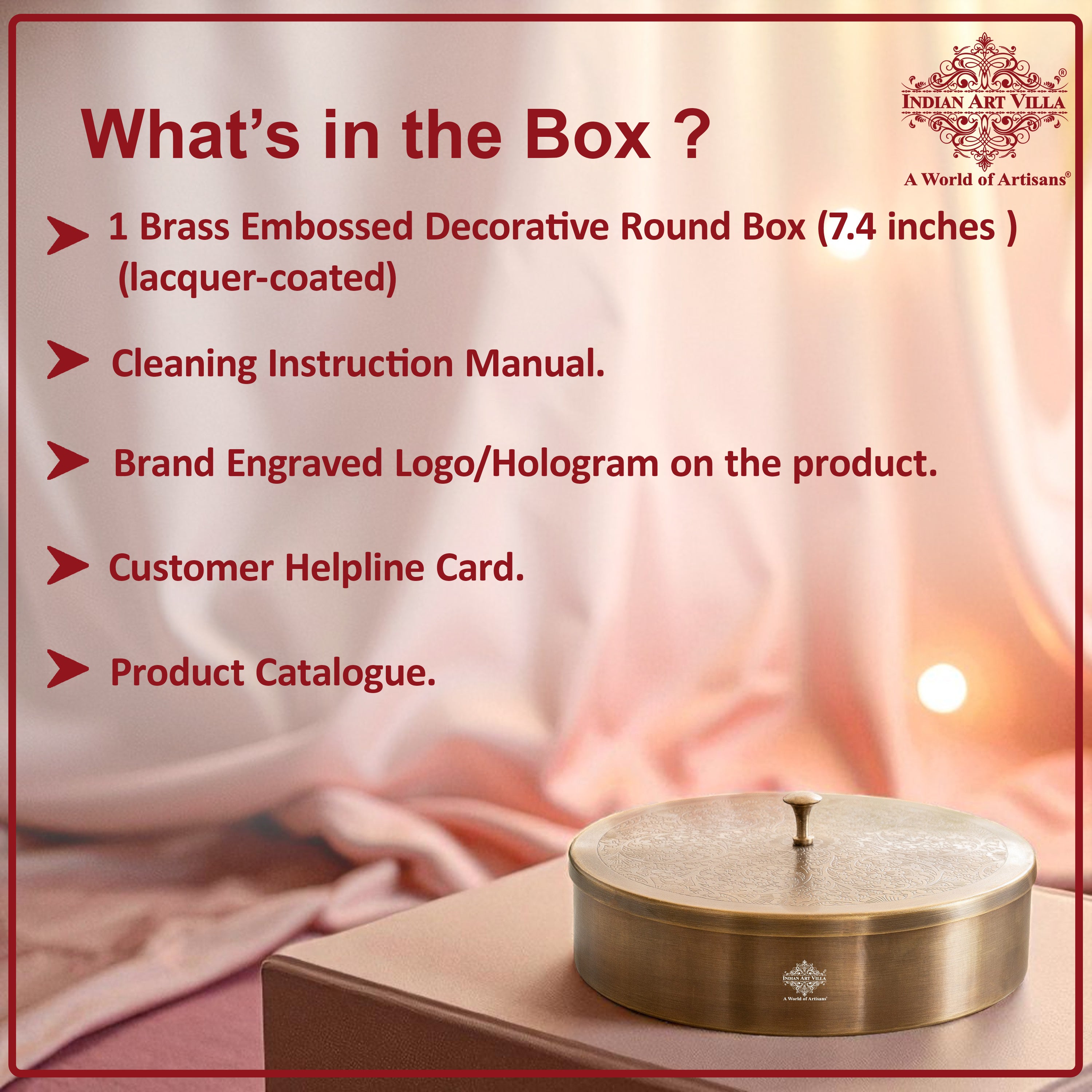 Bring home the elegance of traditional Indian artistry with Indian Art Villa’s Pure Brass Embossed Decorative Box. Crafted with precision and passion, this box reflects the timeless heritage of Indian metalwork. The embossed floral patterns on the lid and antique brass finish make it a perfect blend of beauty and utility.