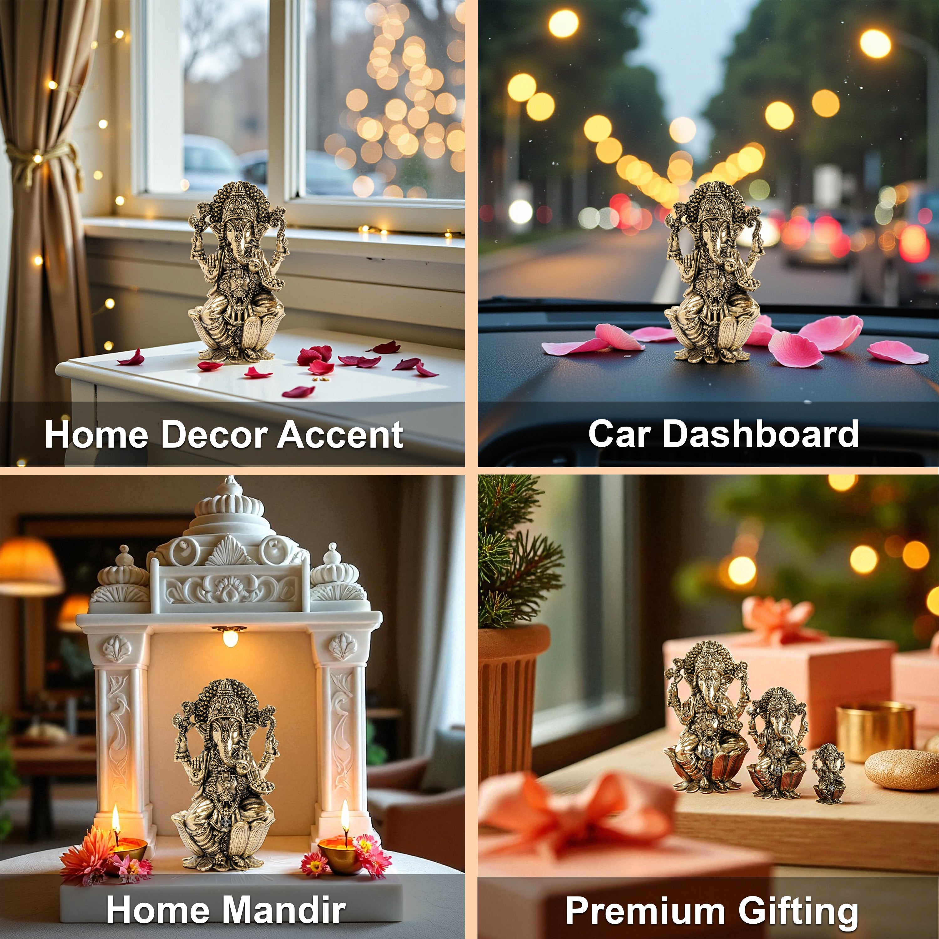 This compact murti is ideal for pooja rituals, temple use, and various spiritual practices. It brings divine blessings, positive energy, and spiritual protection to your home or sacred space. The detailed craftsmanship of Lord Ganesh seated on a lotus not only makes it a spiritual tool but also a stunning decorative piece, perfect for enhancing any altar or shrine.