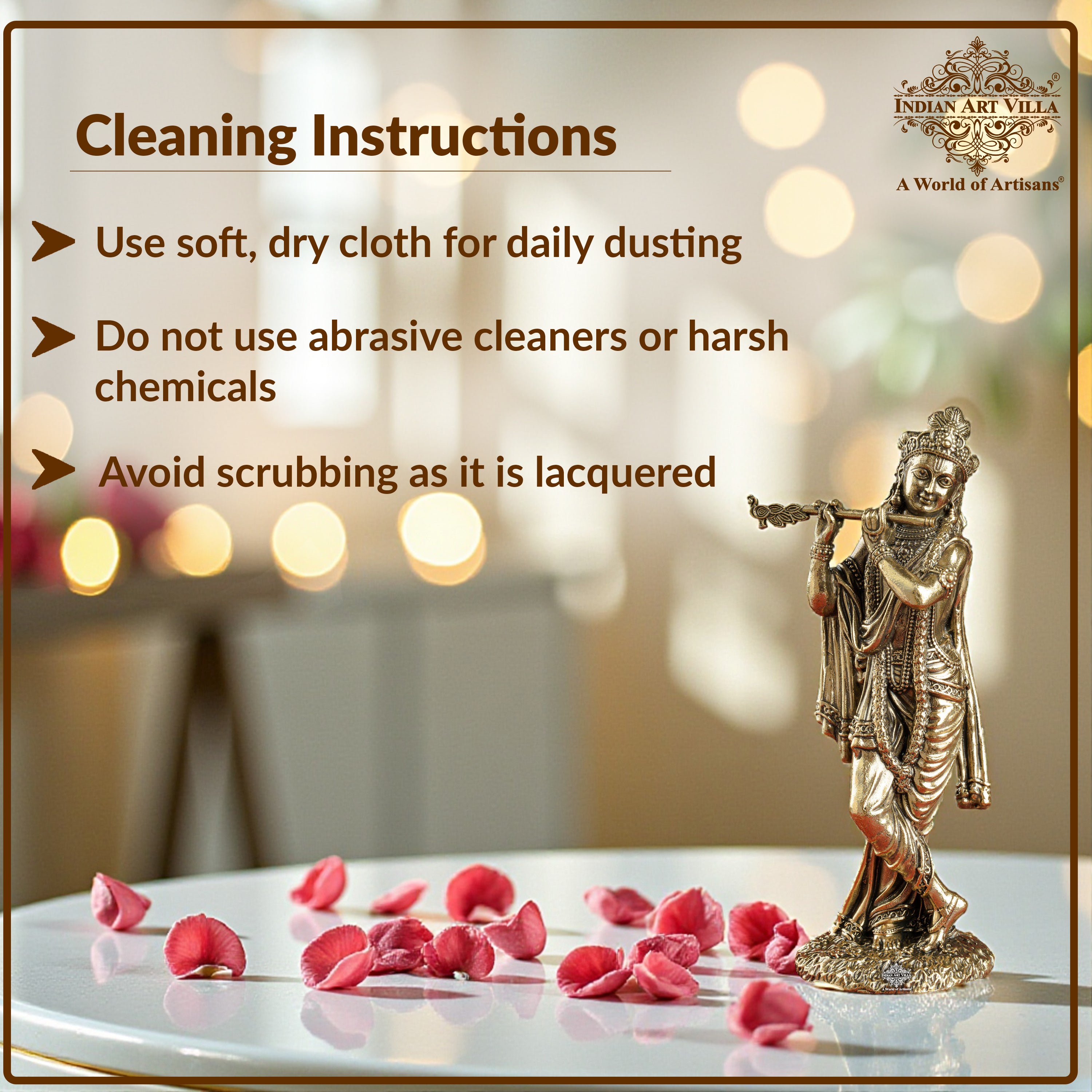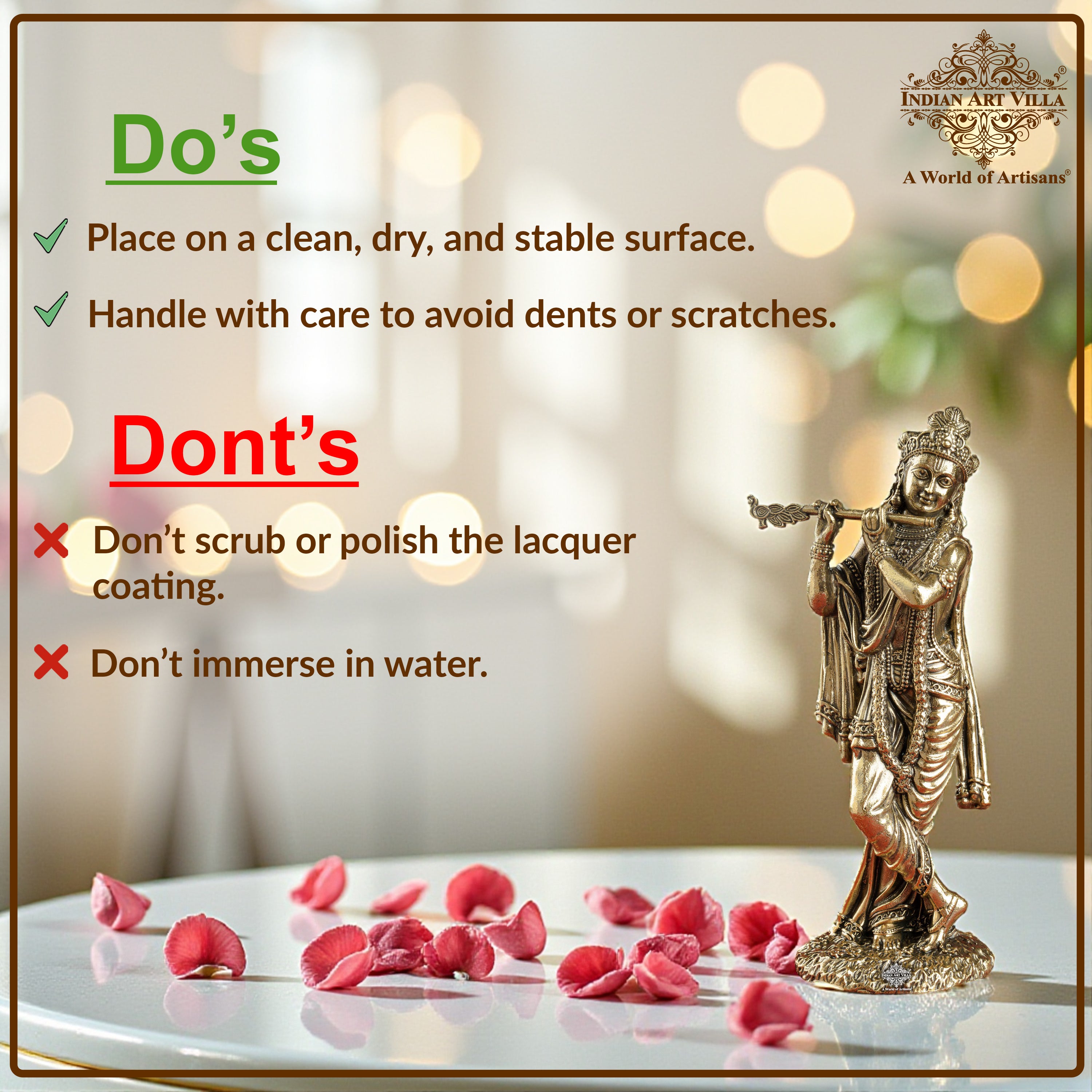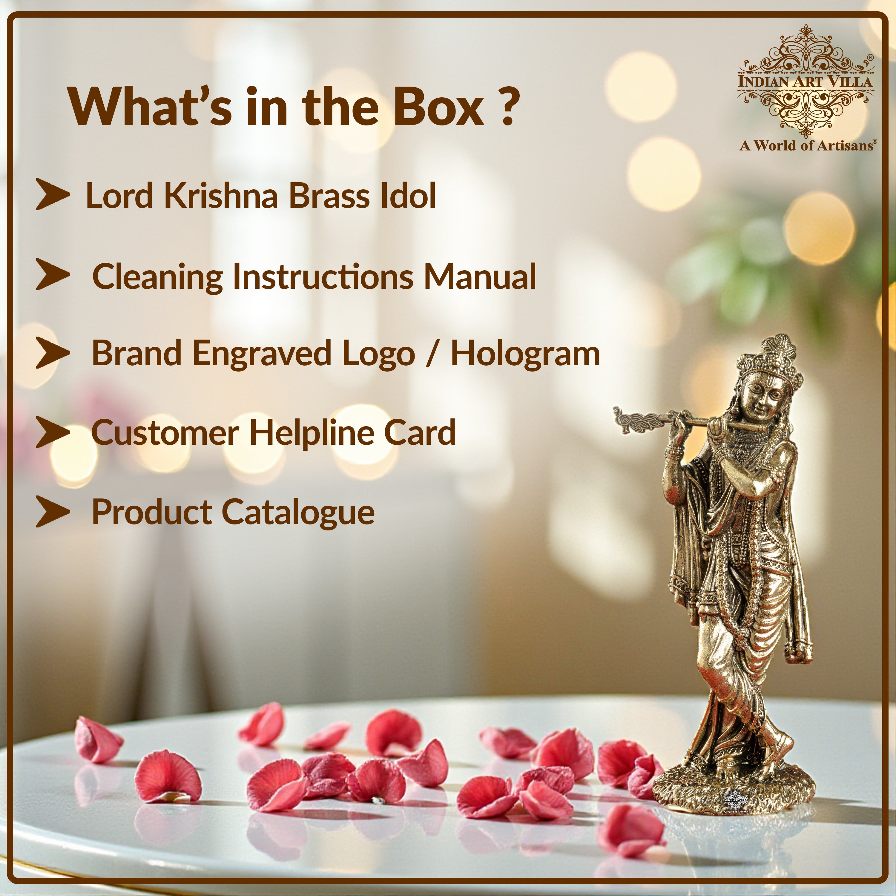 Celebrate spiritual elegance with the Indian Art Villa’s Lord Krishna Brass Idol 12cm & 15cm a beautifully handcrafted idol of Lord Krishna playing the flute. Crafted from premium brass and finished with a protective lacquer coating, this antique-finish murti radiates divine energy while retaining its shine for years. Whether placed in a mandir, office desk, or home altar, it serves as a sacred symbol of devotion, peace, and tradition. Perfect for pooja rituals, gifting, and enhancing spiritual aesthetics.