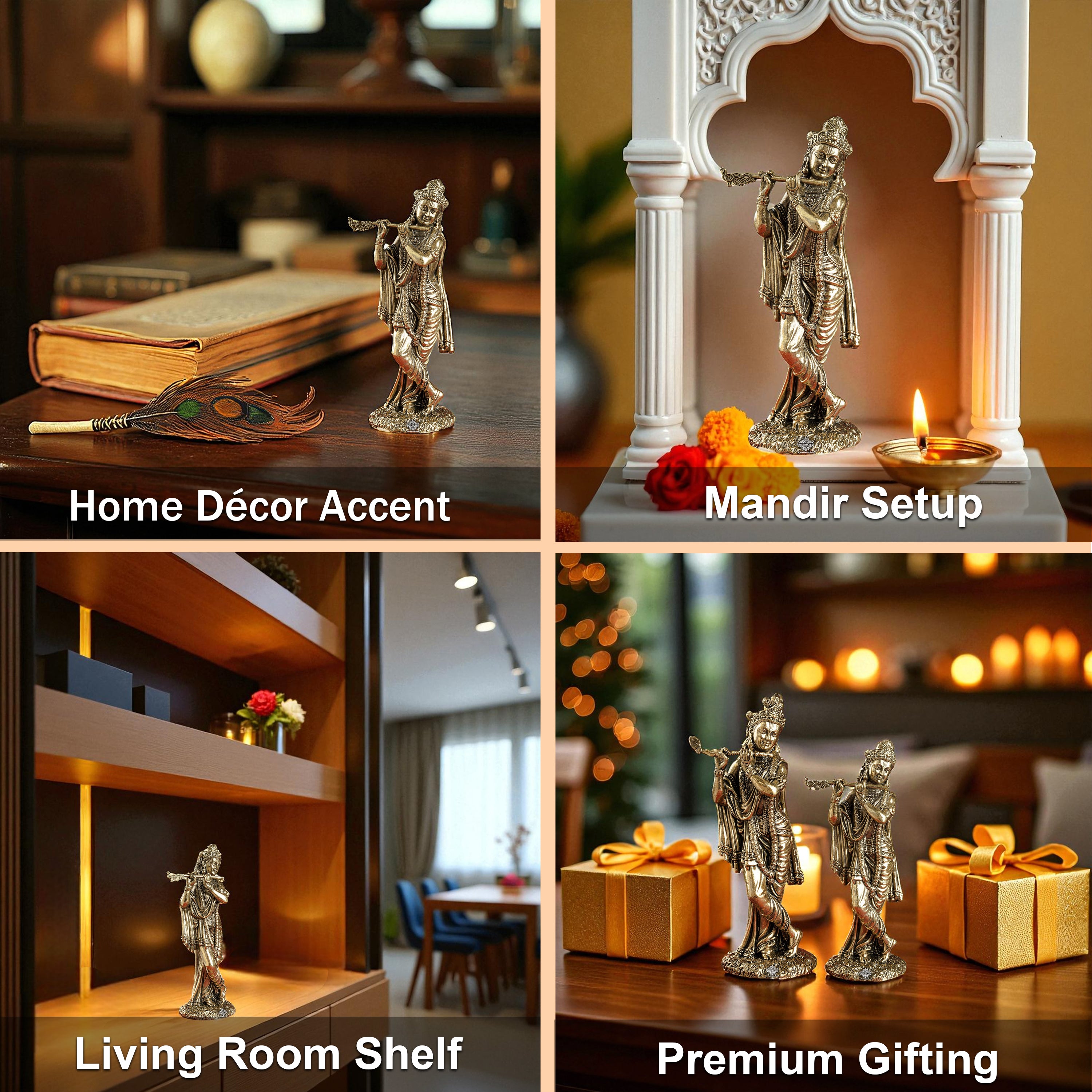 With its fine detailing, flowing ornaments, and antique brass finish, this idol is a blend of devotion and art. Placing this murti in your pooja room, living room, or meditation corner adds not just beauty but also a sacred aura of peace and positivity. It also makes for a timeless gift for loved ones, carrying blessings of joy, harmony, and devotion.