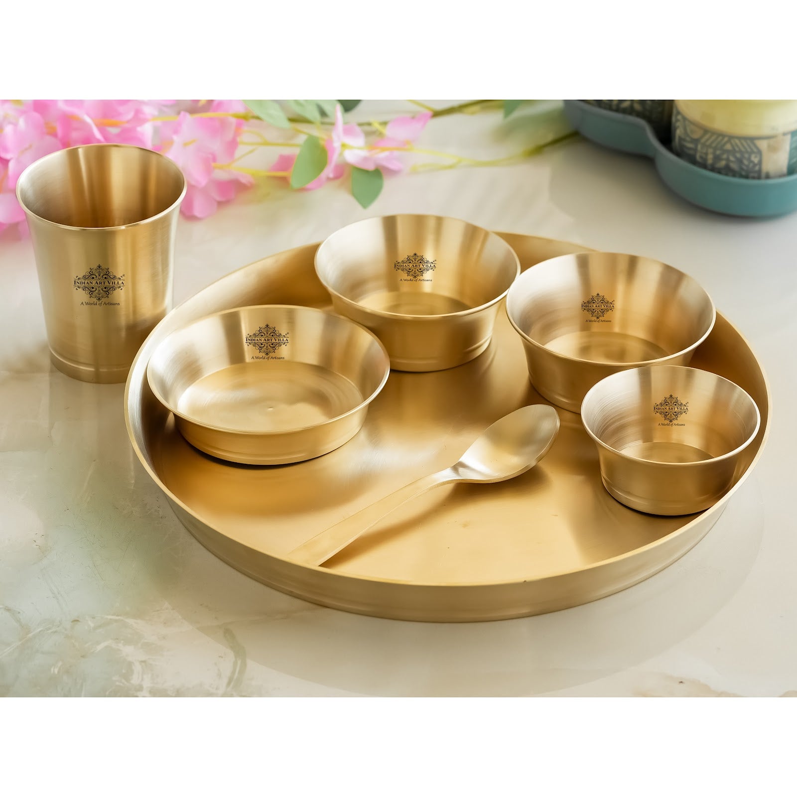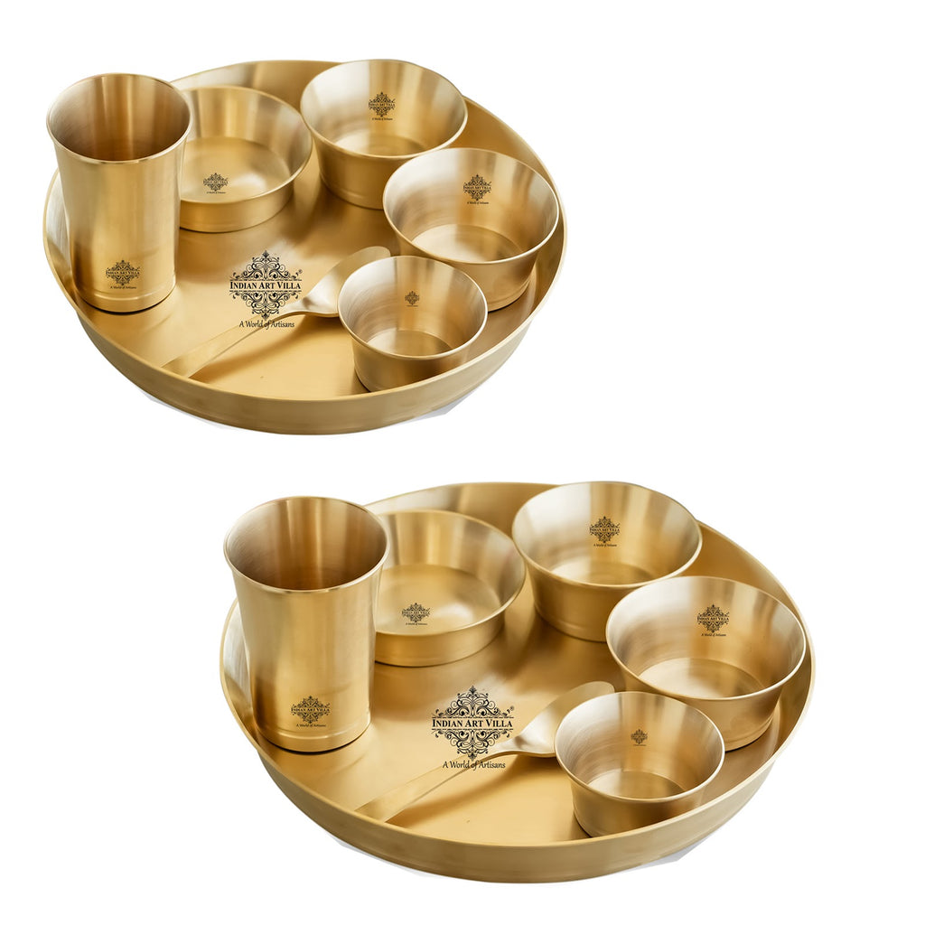 - Order this Pure Brass Dinner Matt Finish Design Set of 7 Piece from Indian Art Villa at Great deals & offers and get a Contactless delivery at your doorstep.