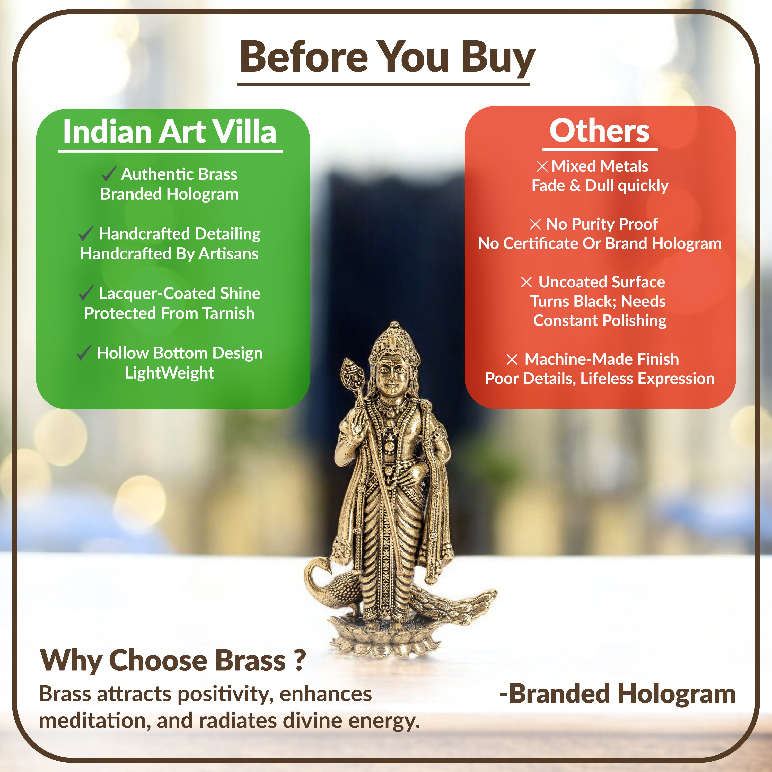 Authentic Brass Craftsmanship: Made from high-quality solid brass, ensuring durability, spiritual purity, and lasting shine.