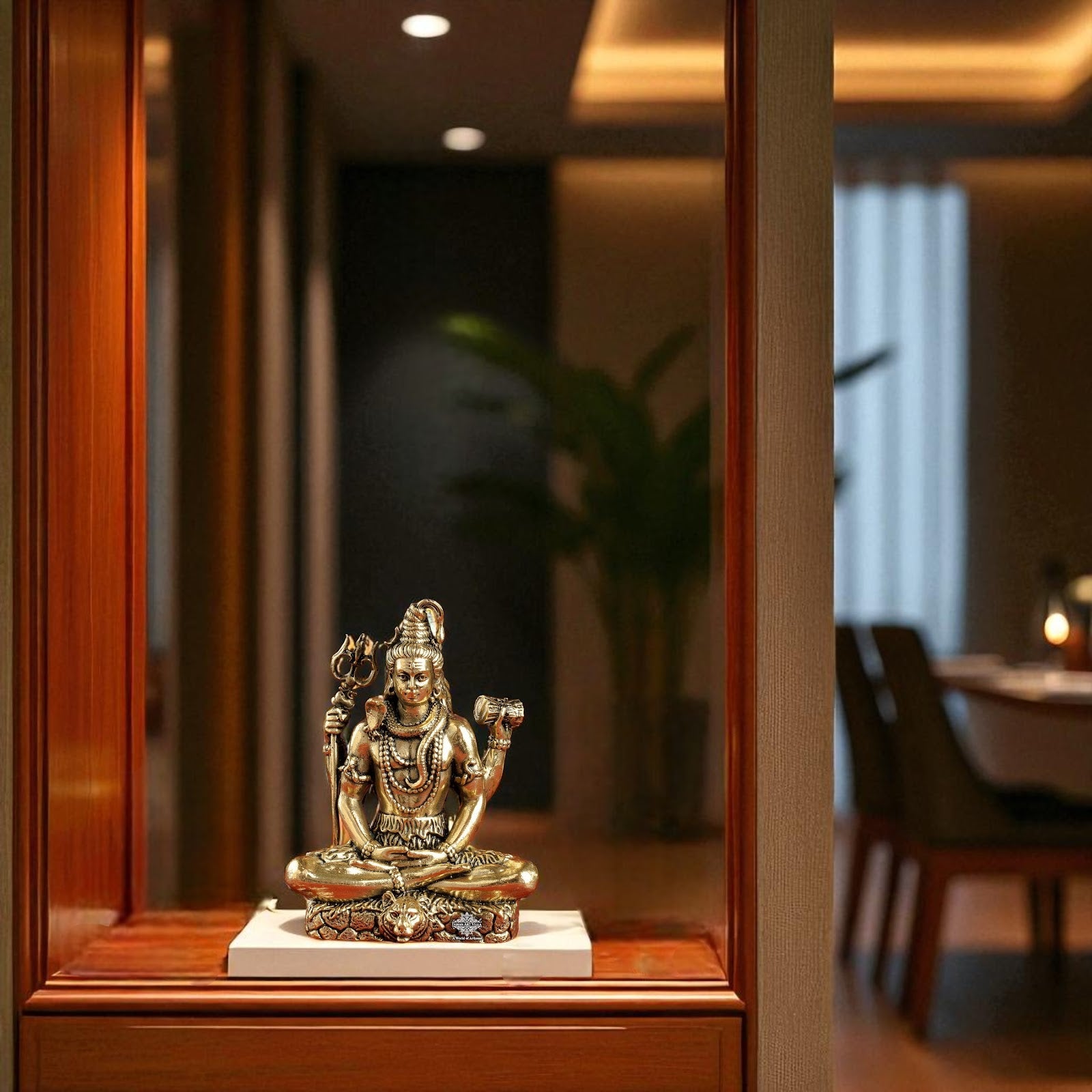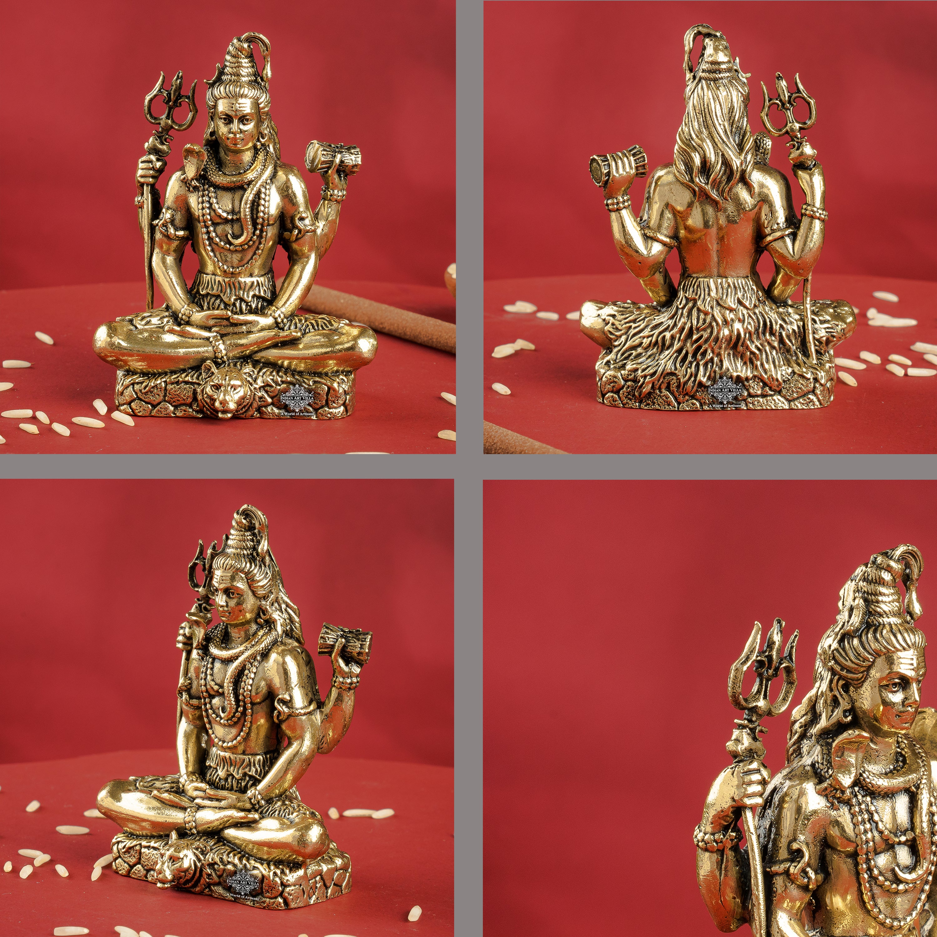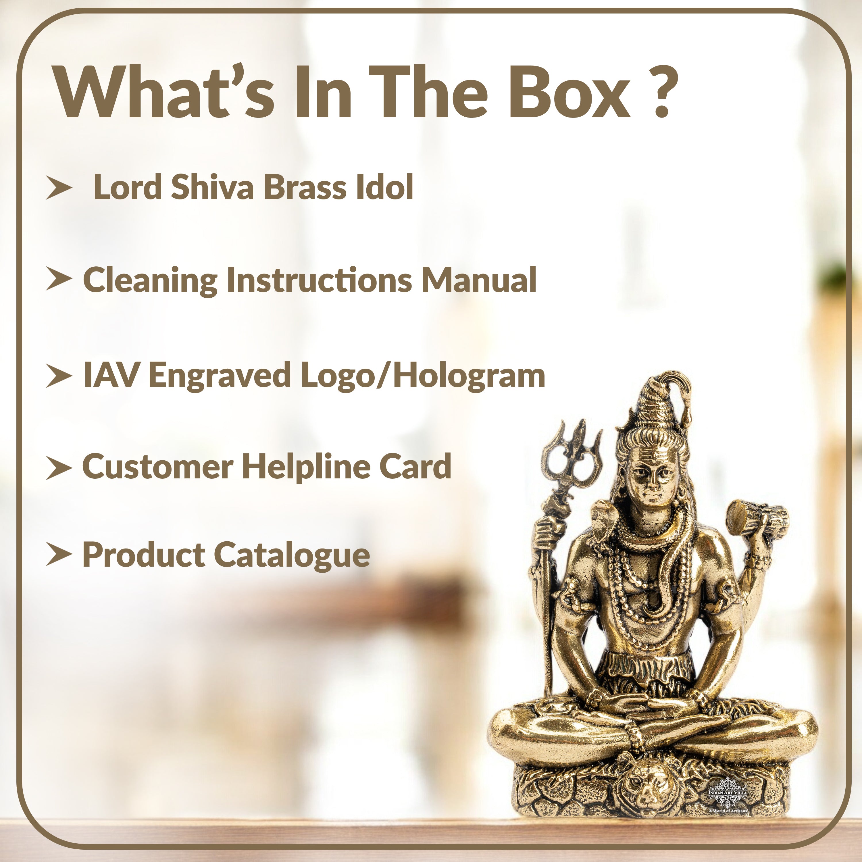 Invite serenity, strength, and spiritual energy into your home with the Indian Art Villa Brass Shiv Ji Murti. In this idol, Lord Shiva sits in deep meditation, reminding us to rise above material distractions and seek inner peace. His Trishul symbolizes control over the cosmic forces, the Damaru carries the eternal sound of creation, and the serpent around his neck reminds us of life’s cycles and fearlessness.