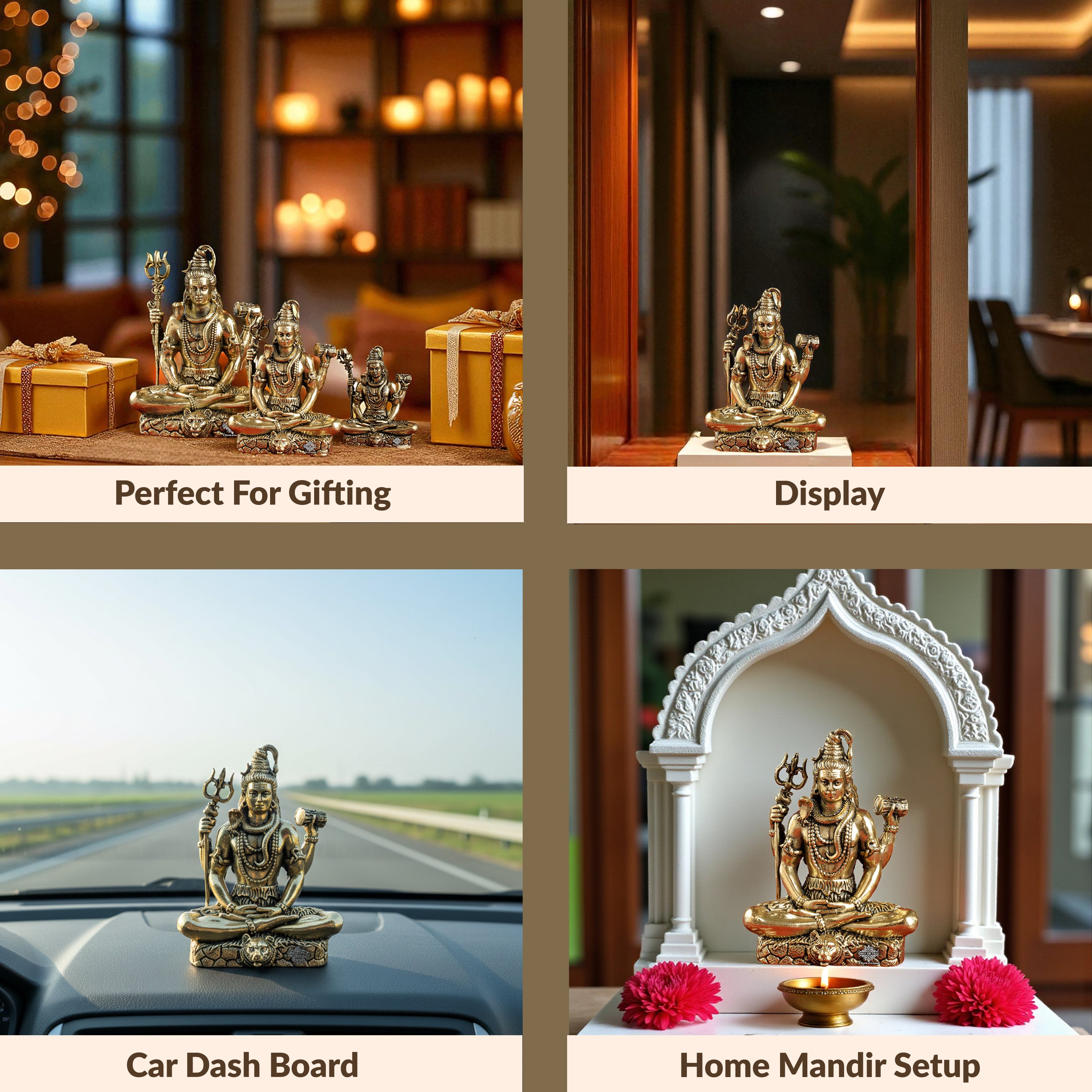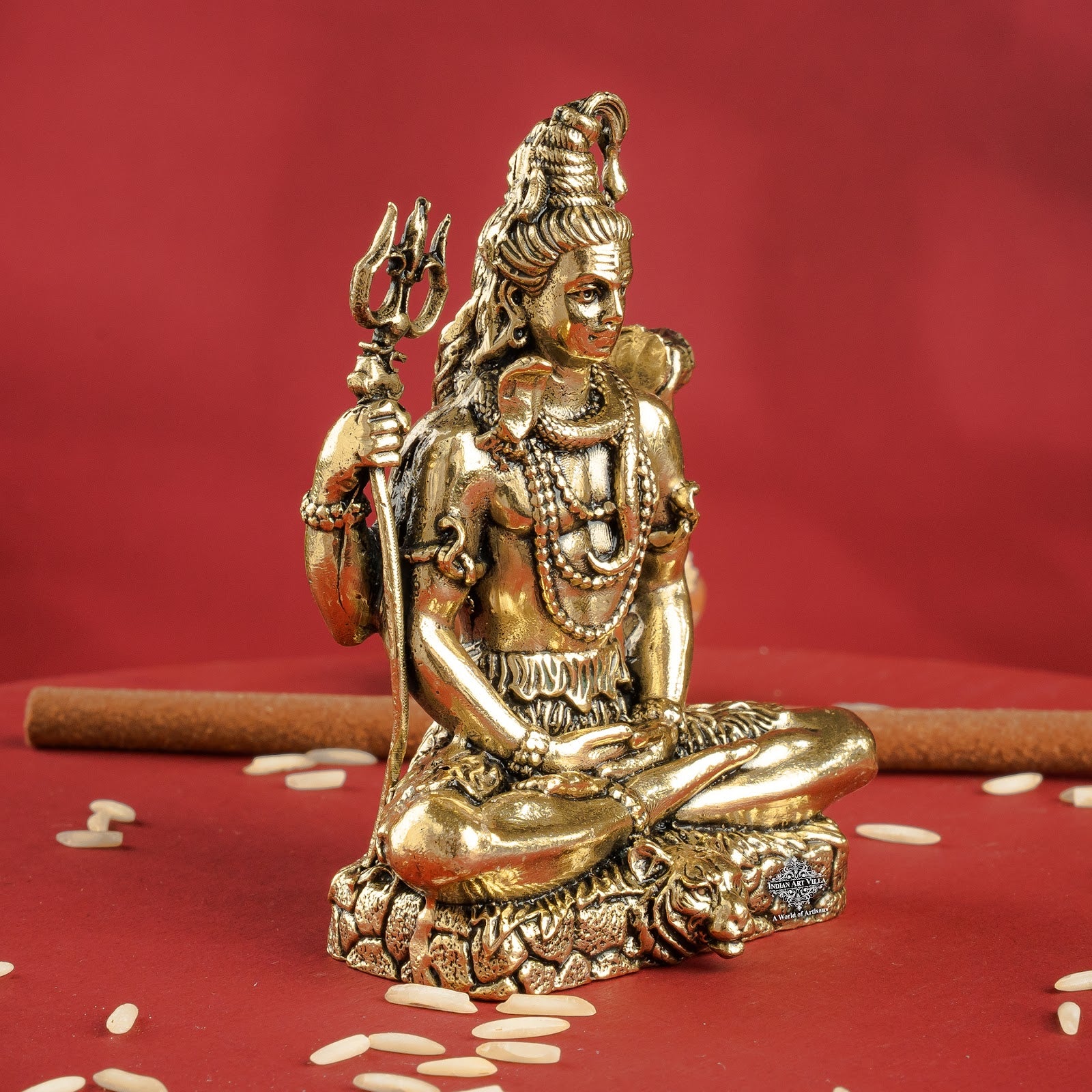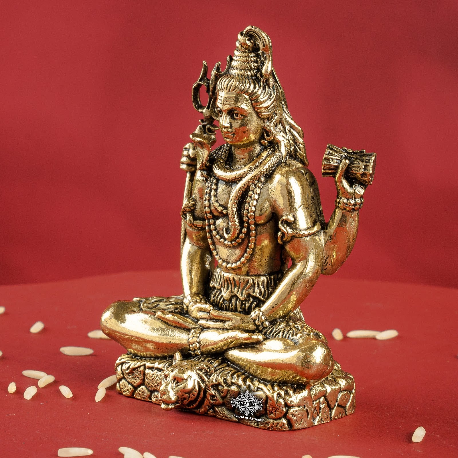 Invite serenity, strength, and spiritual energy into your home with the Indian Art Villa Brass Shiv Ji Murti. In this idol, Lord Shiva sits in deep meditation, reminding us to rise above material distractions and seek inner peace. His Trishul symbolizes control over the cosmic forces, the Damaru carries the eternal sound of creation, and the serpent around his neck reminds us of life’s cycles and fearlessness.