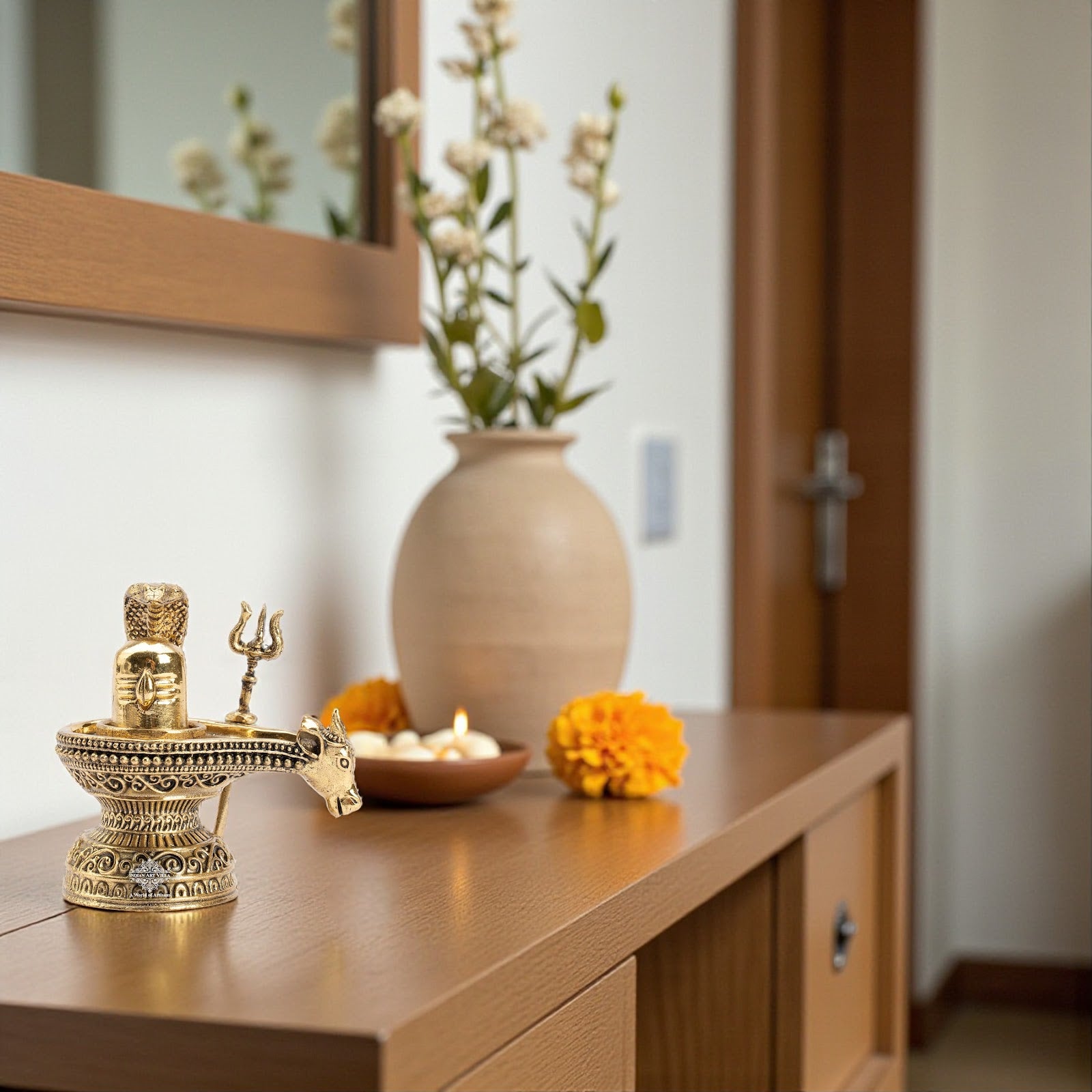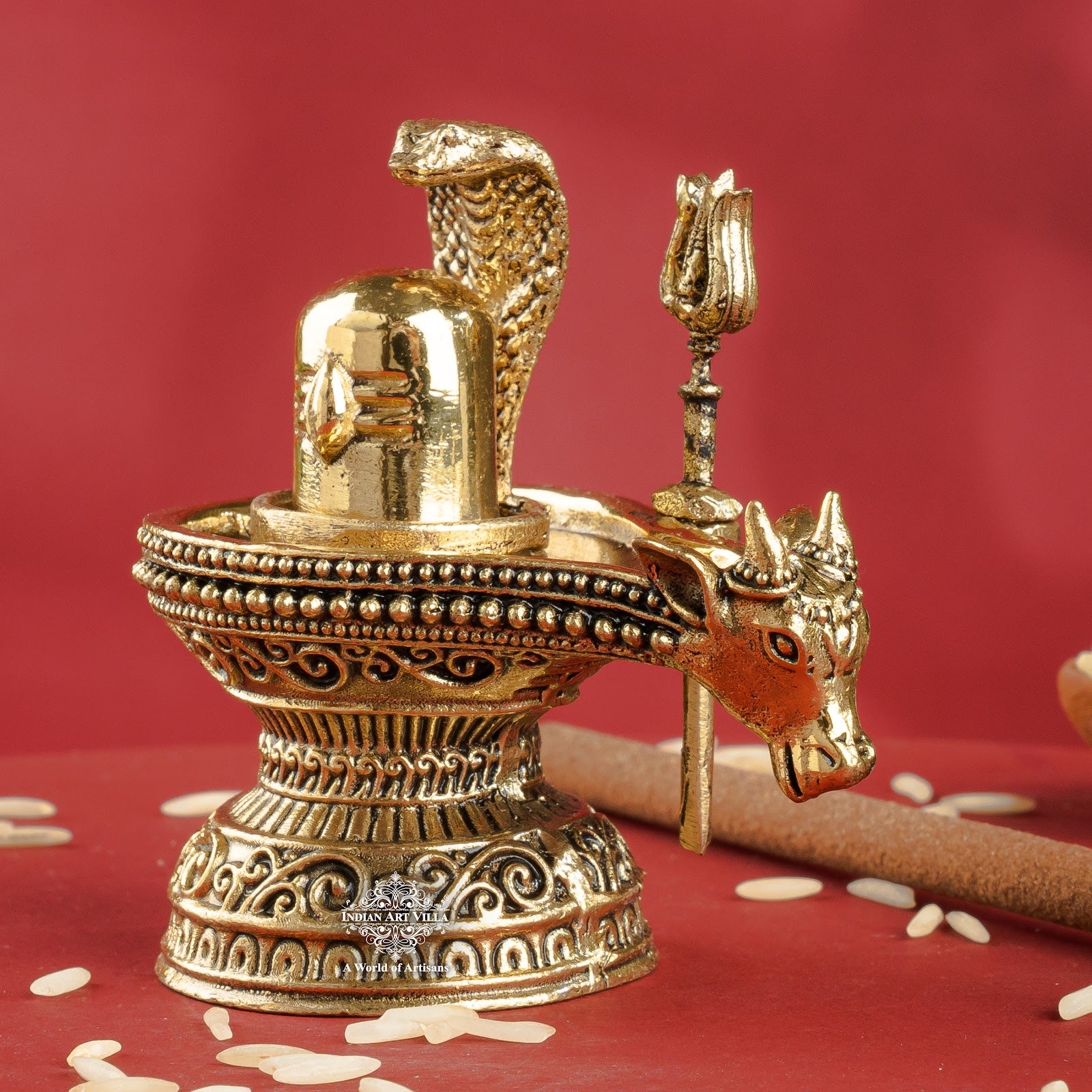 - Sacred Brass Shivling Design : Beautifully crafted Shivling symbolizing Lord Shiva’s divine presence, ideal for daily pooja and meditation.