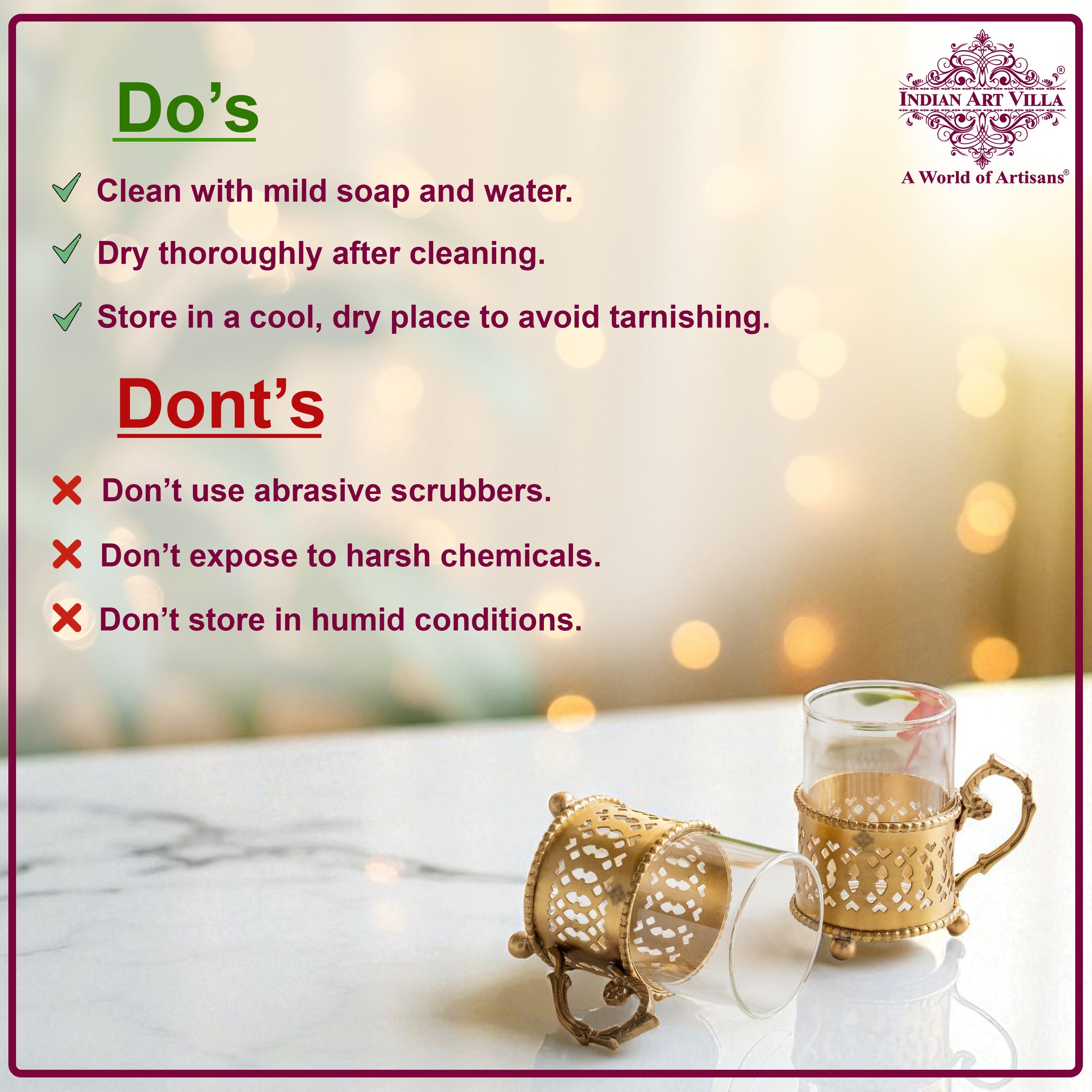 At Indian Art Villa, we take pride in blending heritage with modern lifestyle needs. This set is designed not only for daily use but also to make every tea-time moment feel royal and sophisticated. The sturdy brass base ensures stability, while the fine craftsmanship guarantees lasting durability and shine.