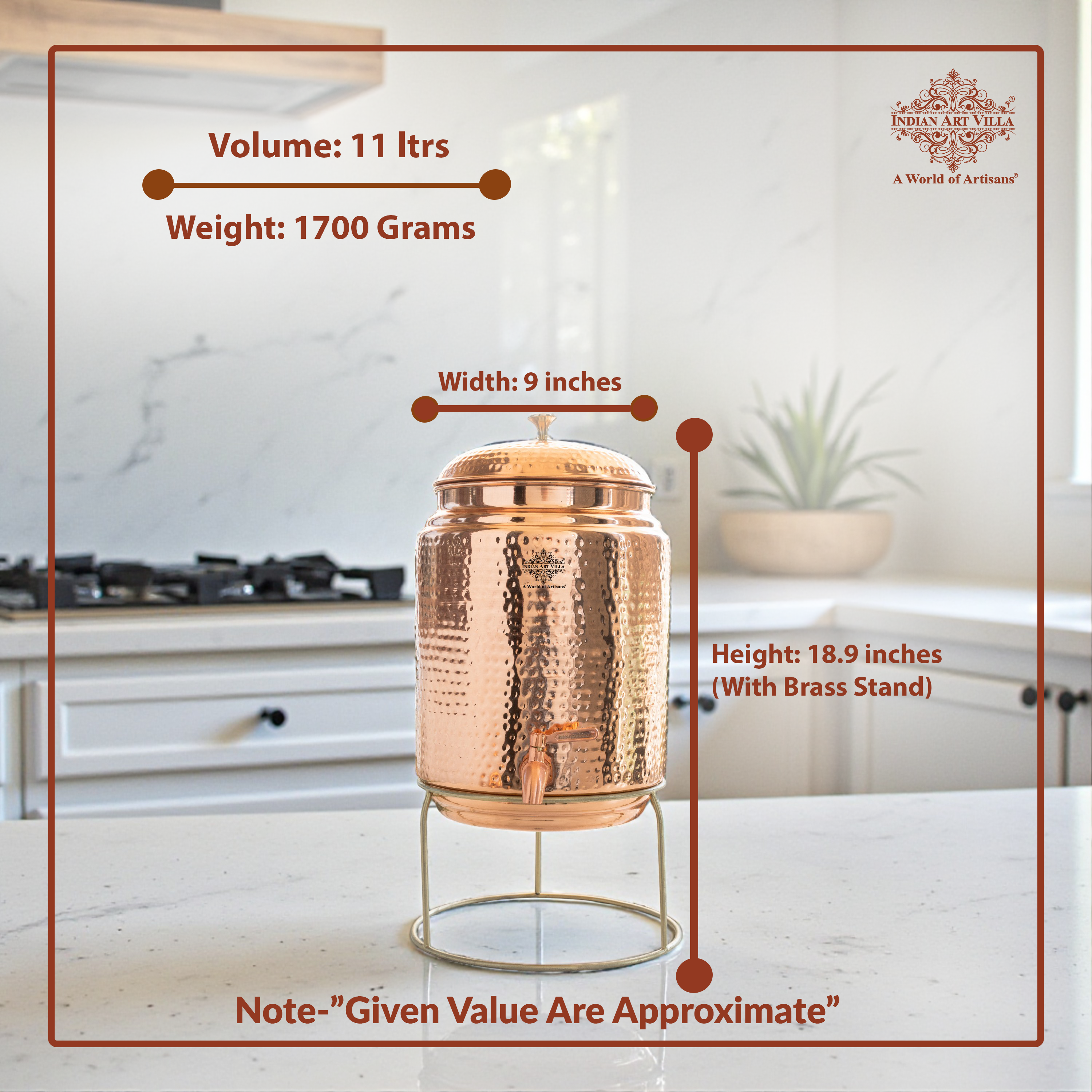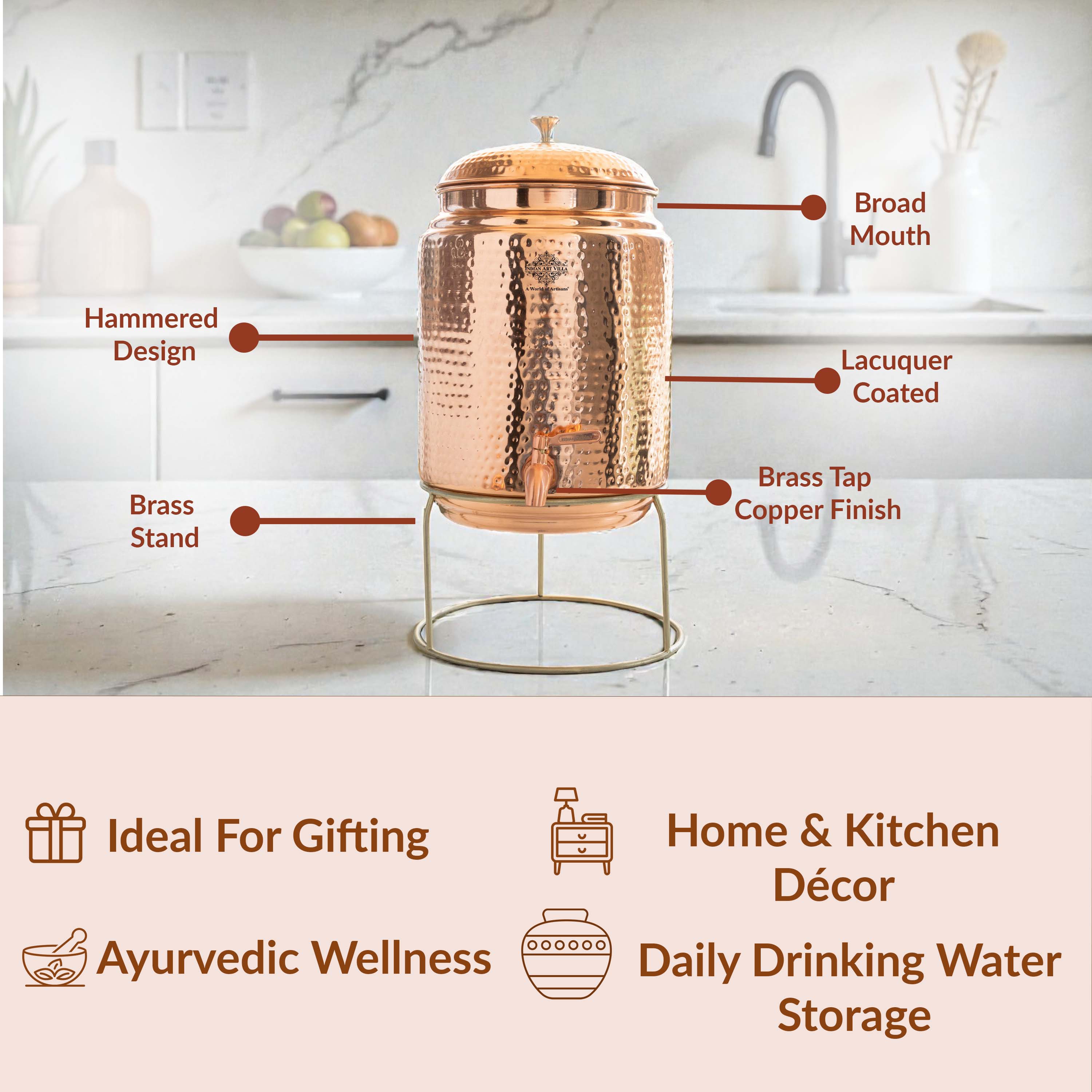 - INDIAN ART VILLA Pure Copper Hammered Design Water Pot With Stand, it was almost impossible to find one that came in a design other than the plain one. Indian Art Villa Provide You with different designs to choose from, allowing you to pick your favorite design or collect them all for those who want a variety of options.